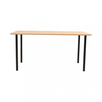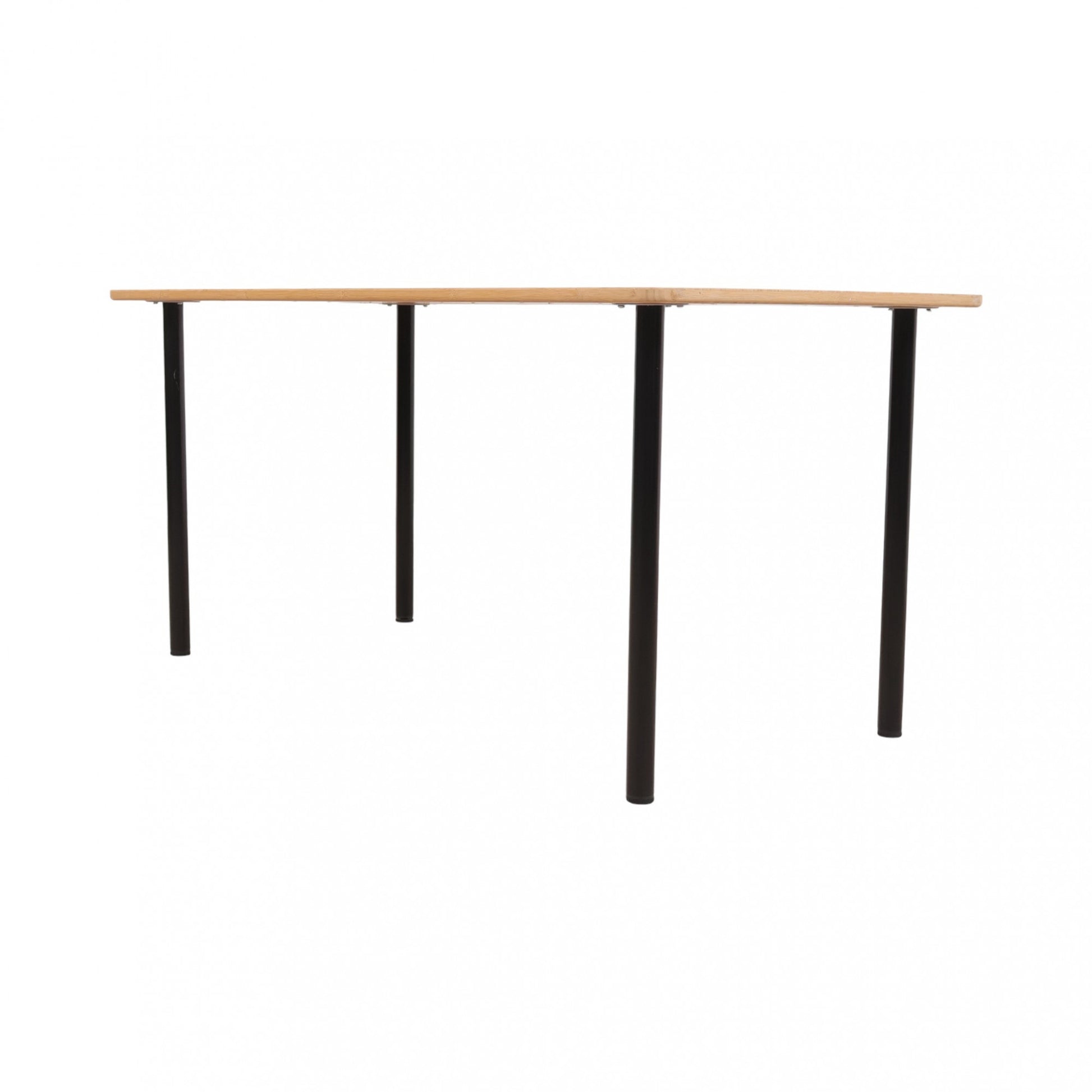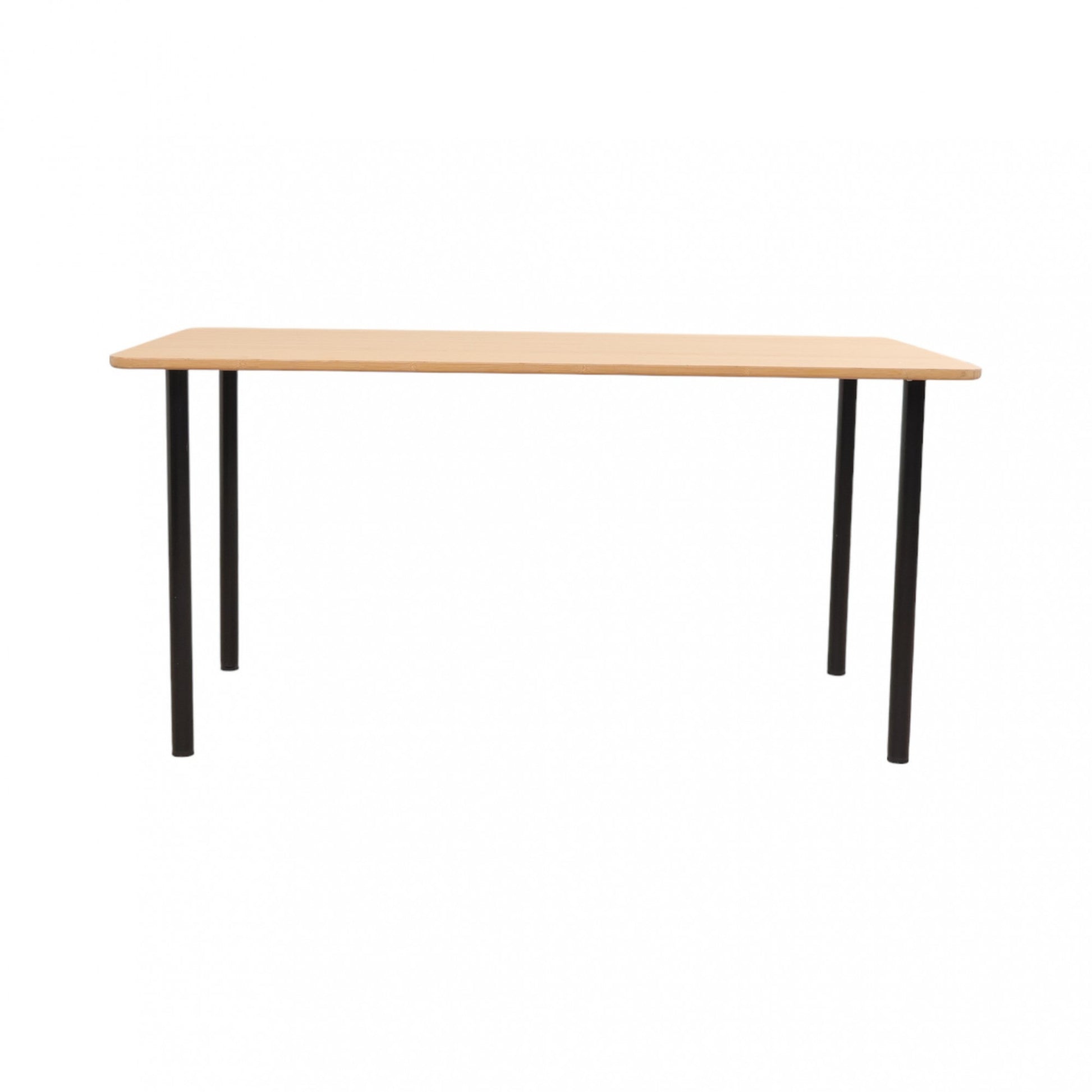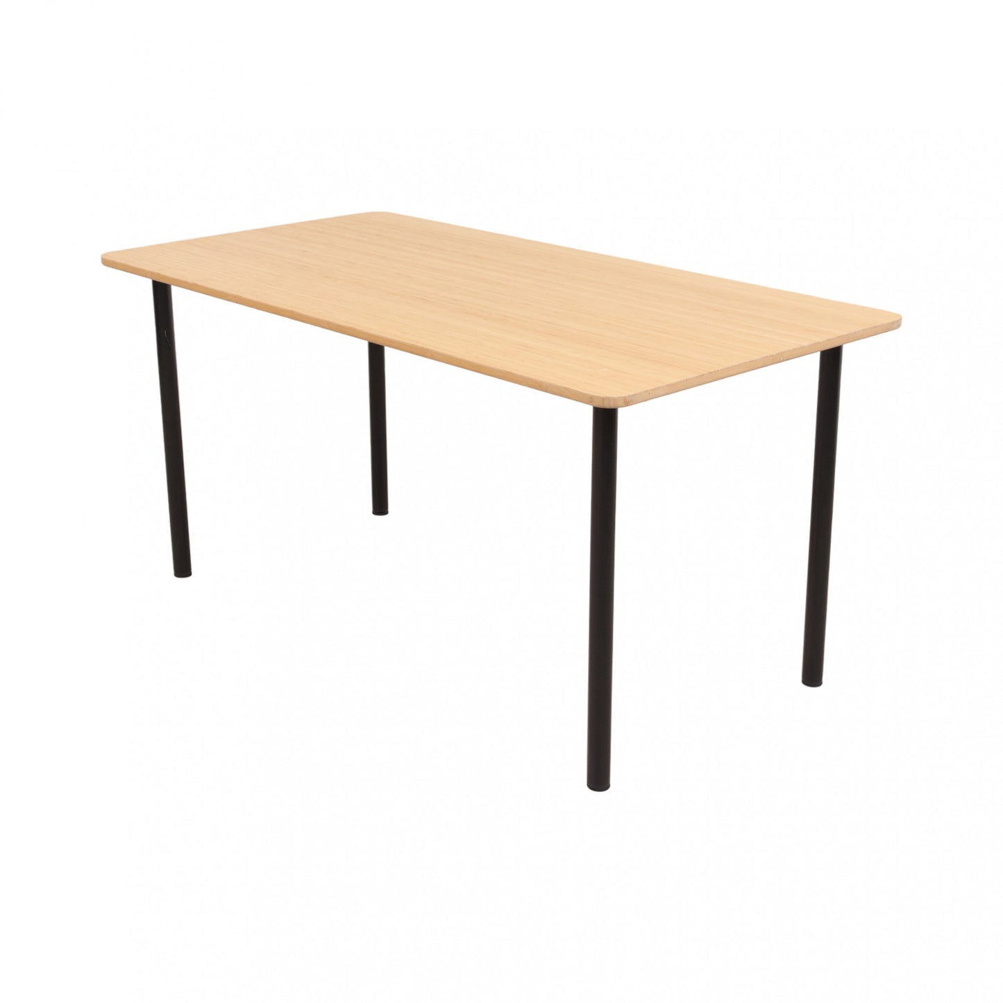 Skrivebord med ANFALLARE bambus bordplate på 4 stk sorte bordben. Bordplaten har en liten ripe på toppen, samt et mindre hakk langs kanten. Den er ellers i god stand.