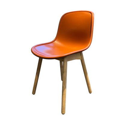 Stolen fra HAY i en oransje grønnfarge gir et friskt preg til ethvert spisebord eller møterom. Den er komfortabel og bidrar til et inspirerende miljø, perfekt for møter, måltider og samarbeid.