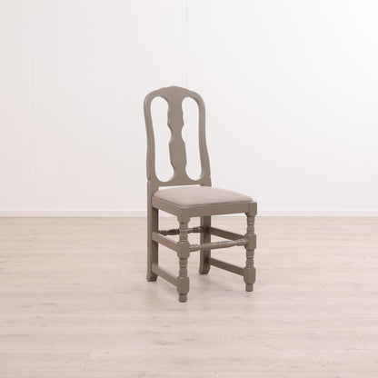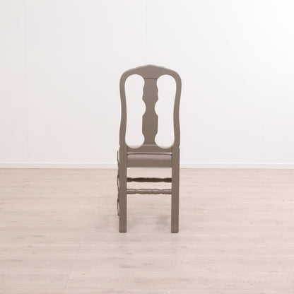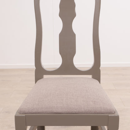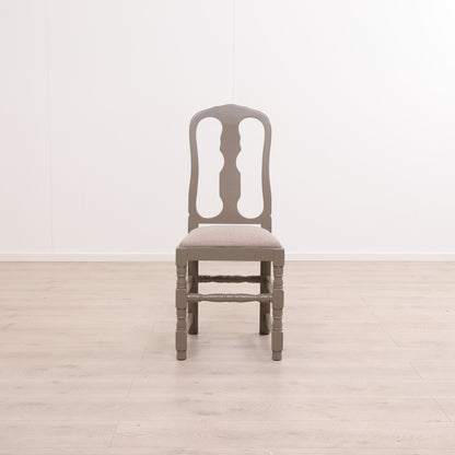Spisestol i lyst tre med grå sittepute