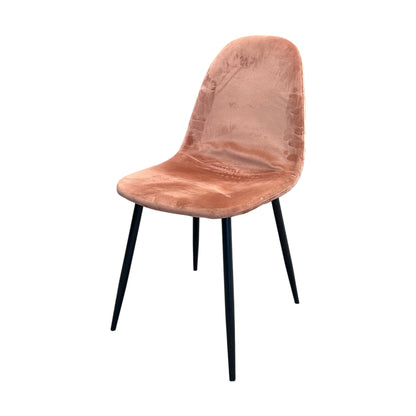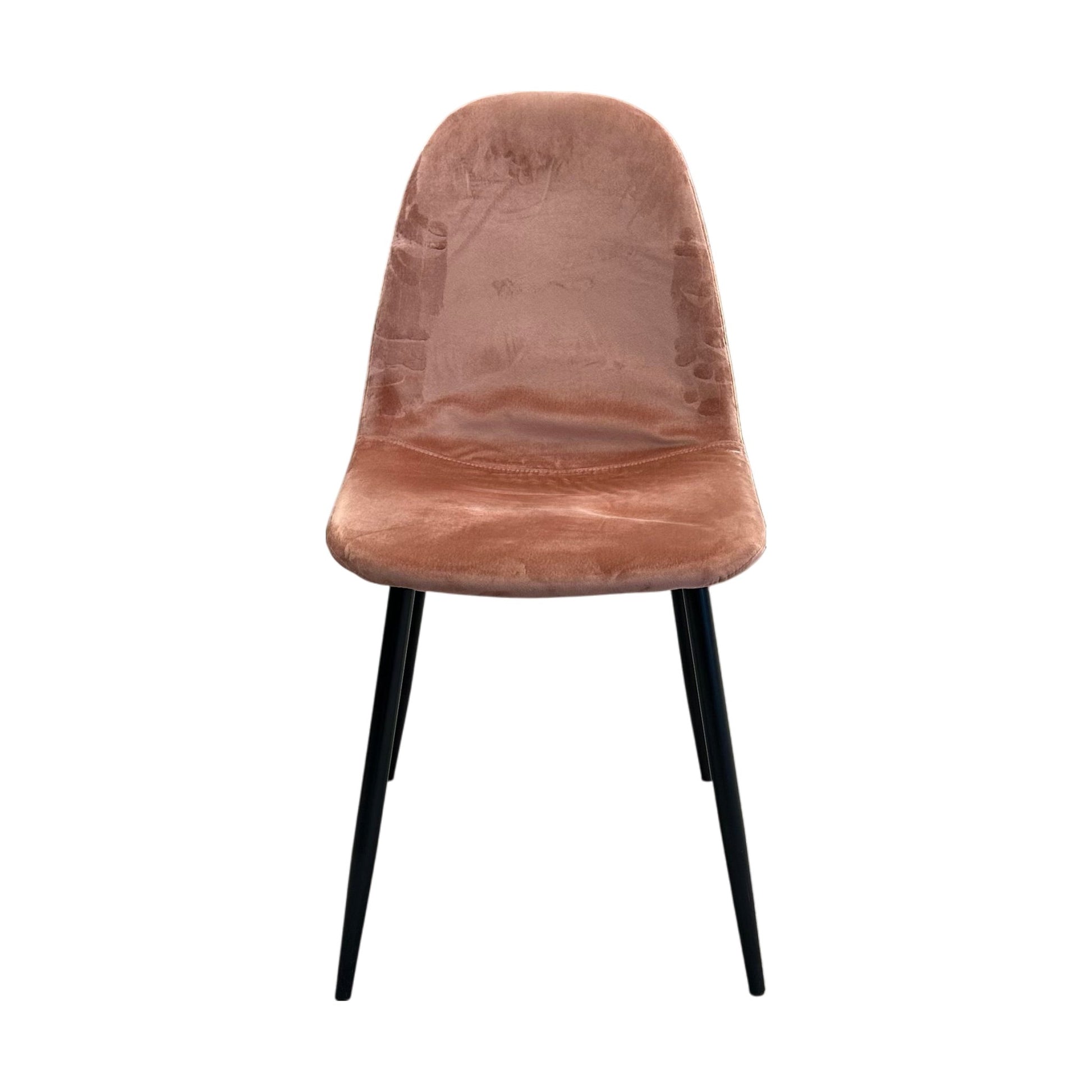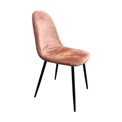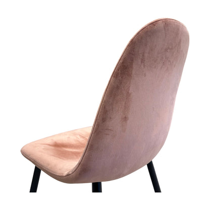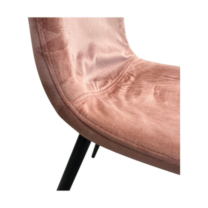 Moderne spisestol i en stilren skandinavisk stil og rosa velour med sorte ben. Denne stolen tilfører et lekent preg til ethvert rom, samtidig som den gir en komfortabel sitteopplevelse. Perfekt som en del av spisestuen eller til å skape et koselig hjørne i stuen eller på kontoret.