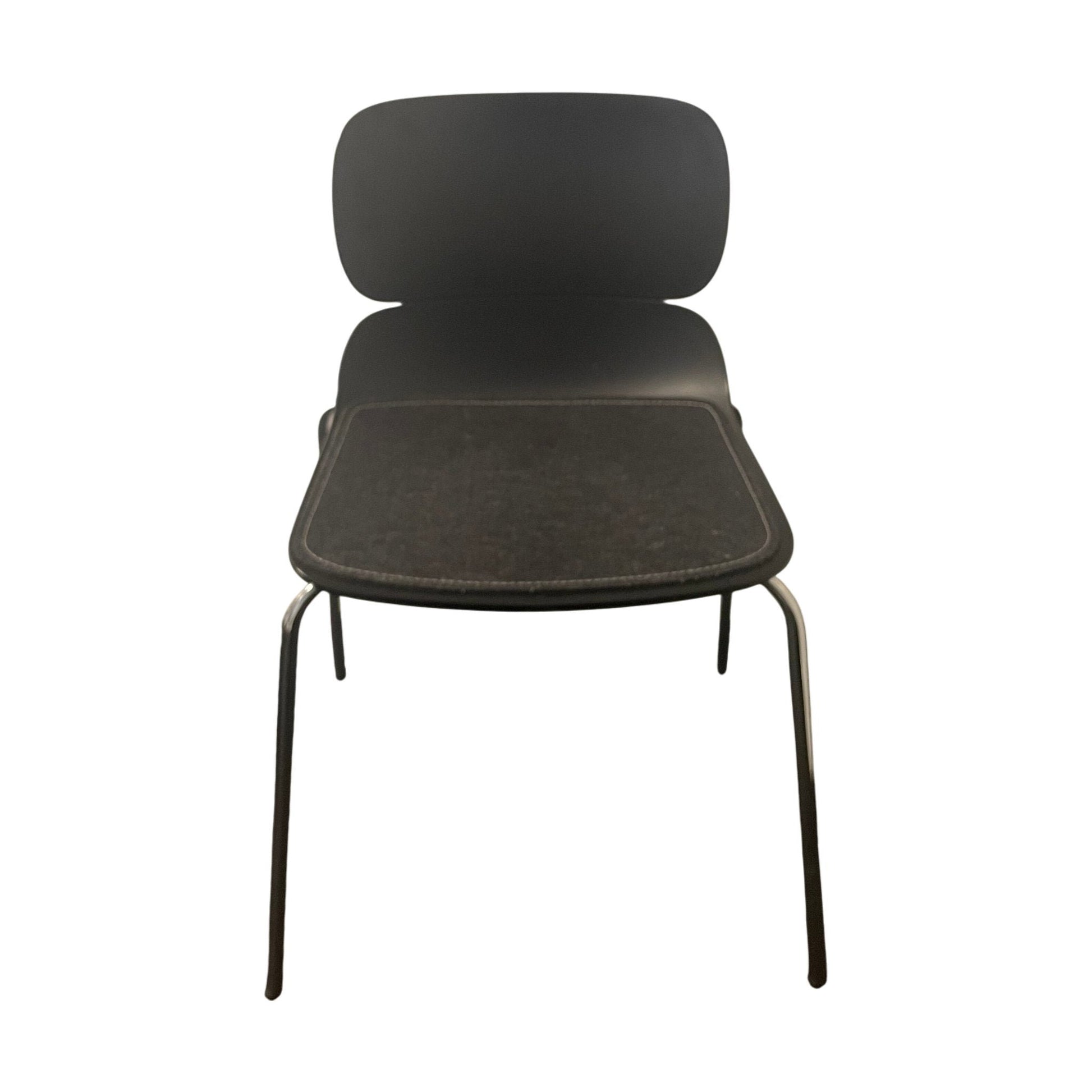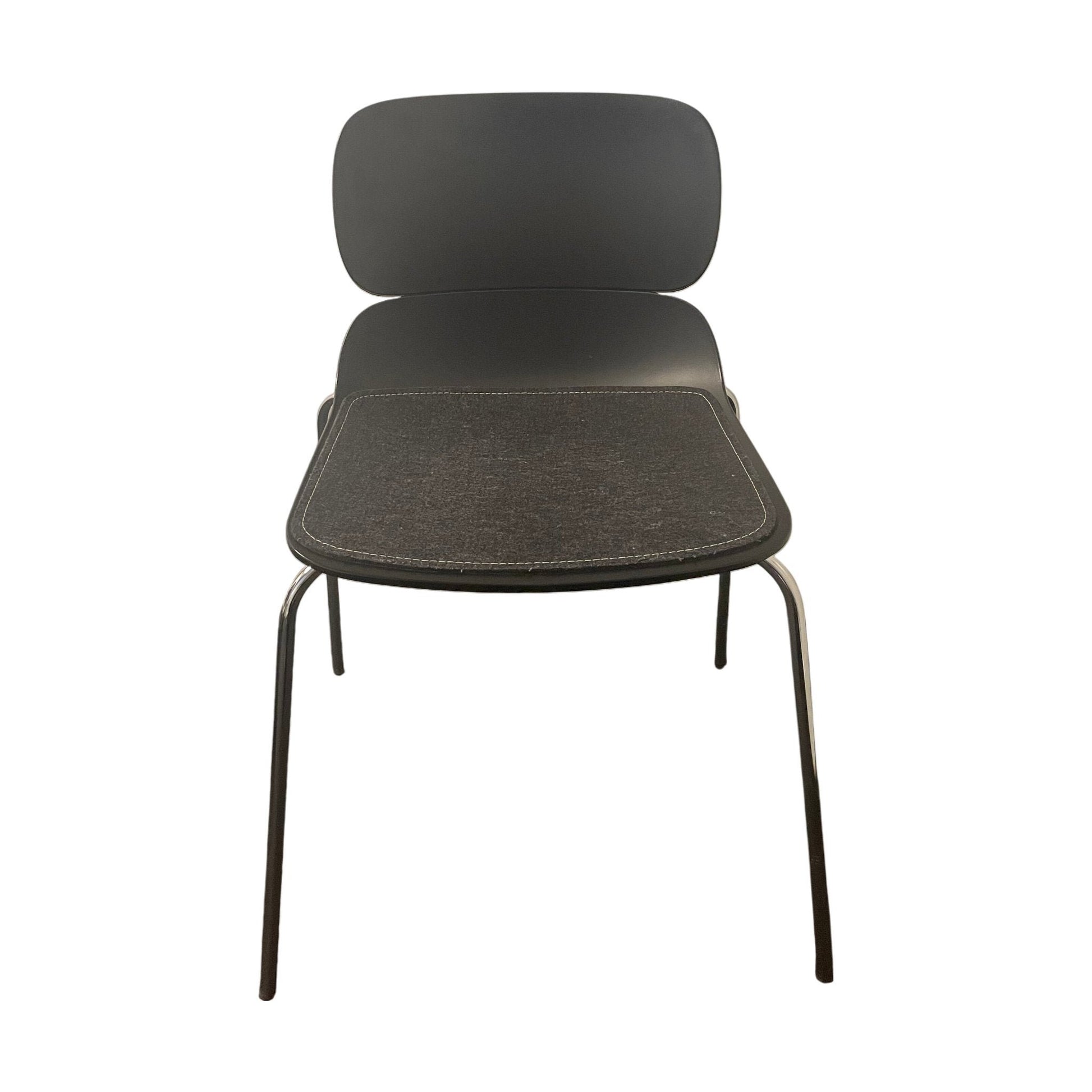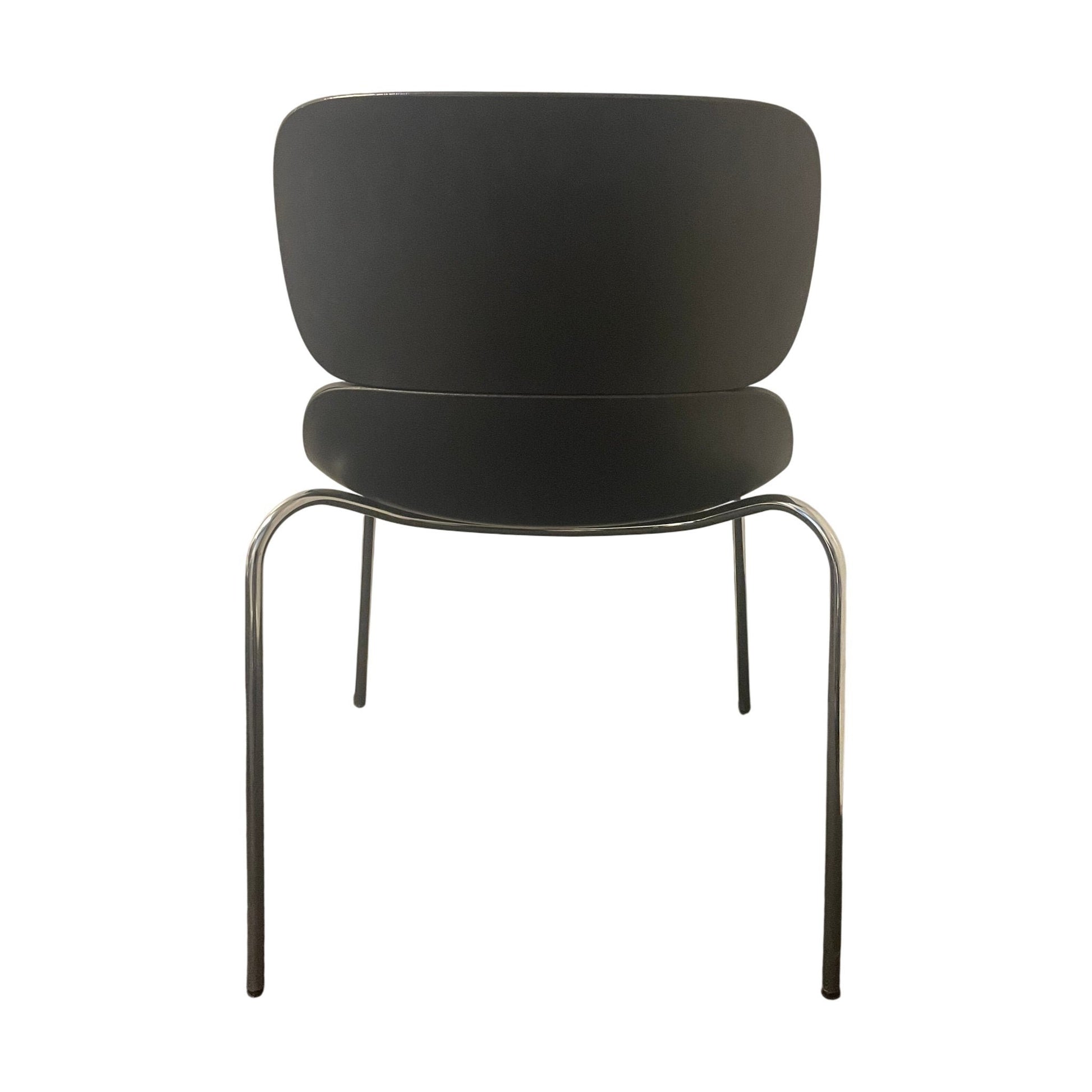 Spisestol med svart plastsete og metallunderstell. Stolen har en moderne og funksjonell design, med en avrundet rygg og en komfortabel sitteflate. Den enkle, svarte fargen gjør den populær for både private hjem og offentlige rom.Stolens lette konstruksjon gjør den enkel å flytte, samtidig som den gir solid støtte ved bordet. Dette er et allsidig møbel som passer inn i ulike interiørstiler.