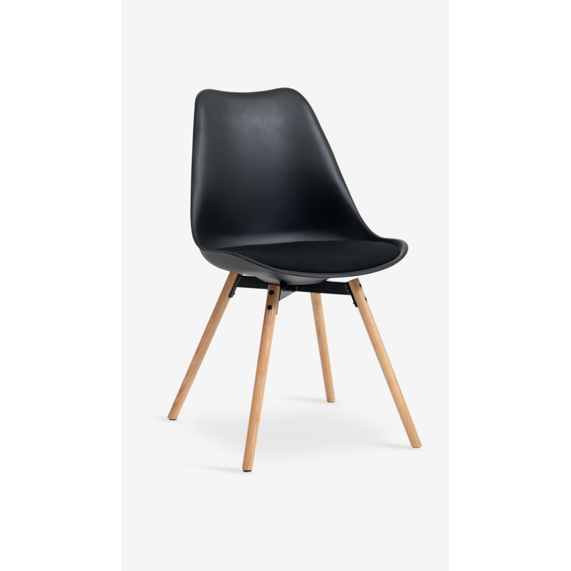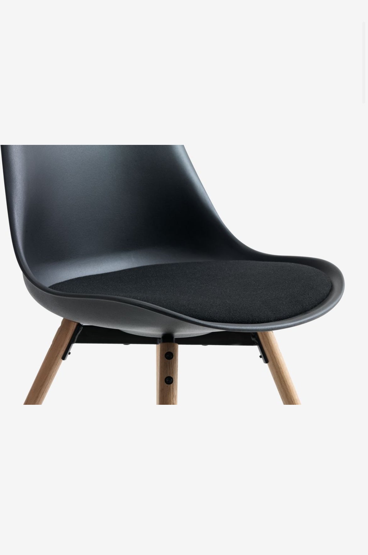 Jysk Kastrup spisestol i svart og eik, som kombinerer moderne design med praktisk bruk. Den stilige stolen har en solid konstruksjon med en vakker eikfinish på bena, som gir et varme til det svarte setet. Den er ideell for både spisebordet og som en aksentstol i stuen. Dette produktet er ikke bare estetisk tiltalende, men også komfortabelt for lange måltider.