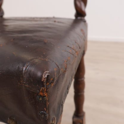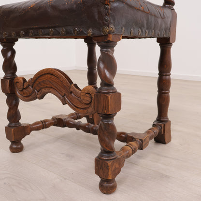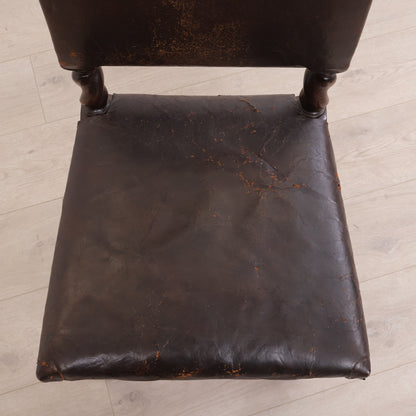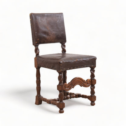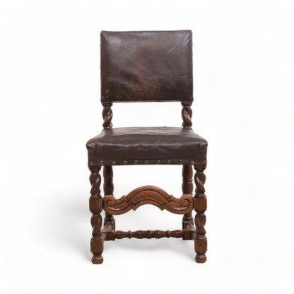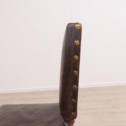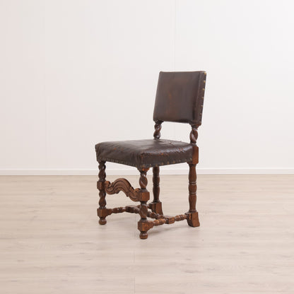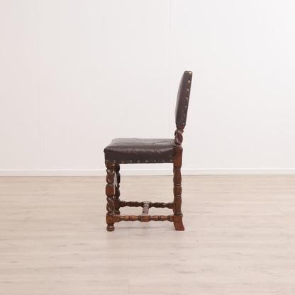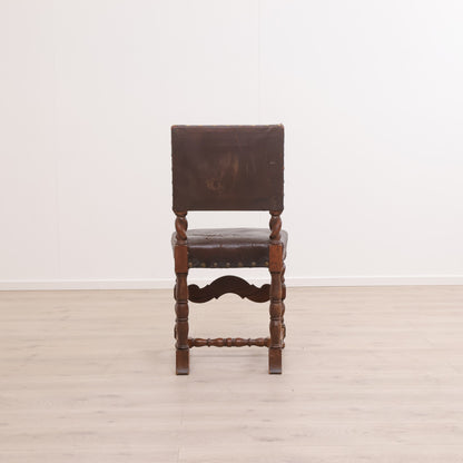 Spisestoler av lær med brun treramme