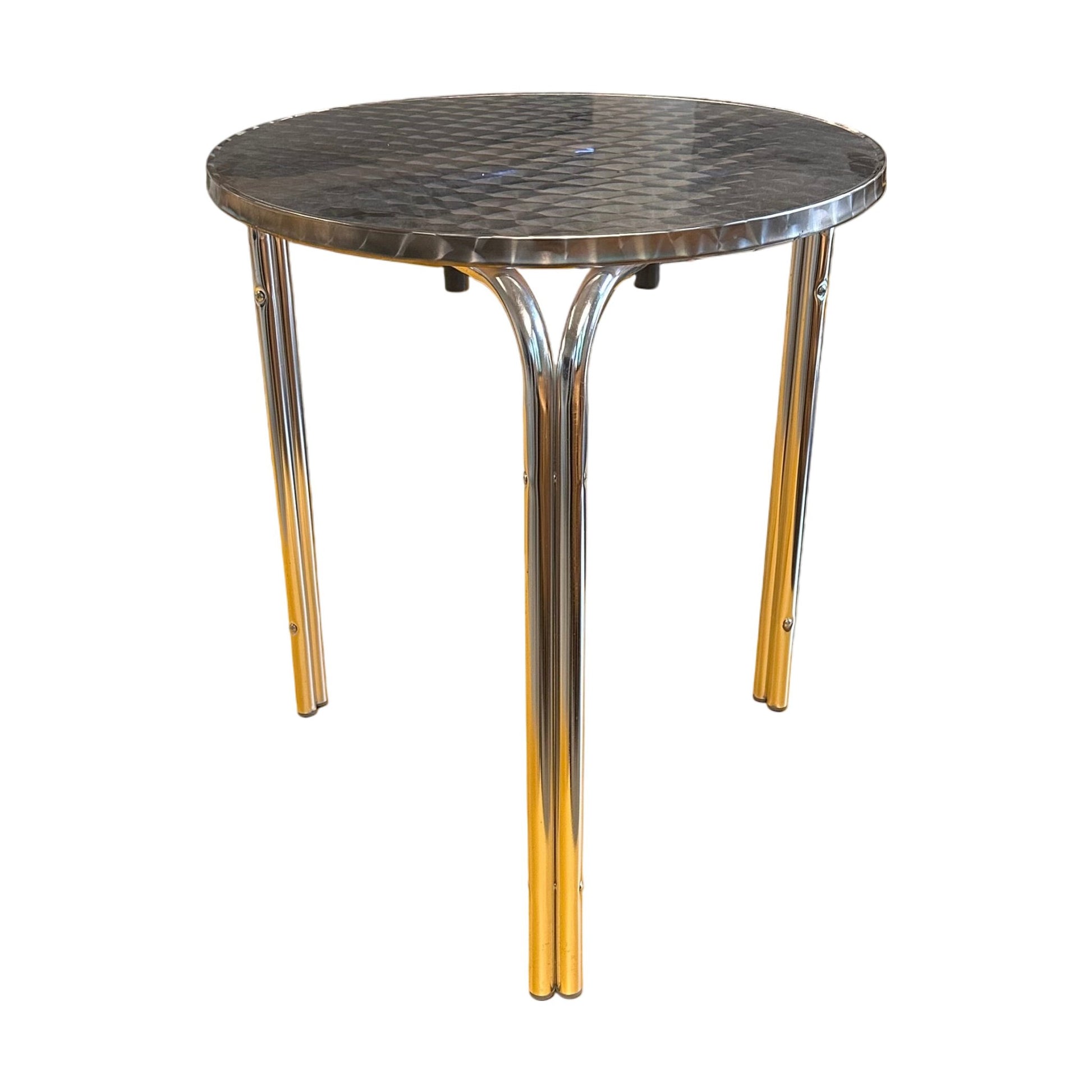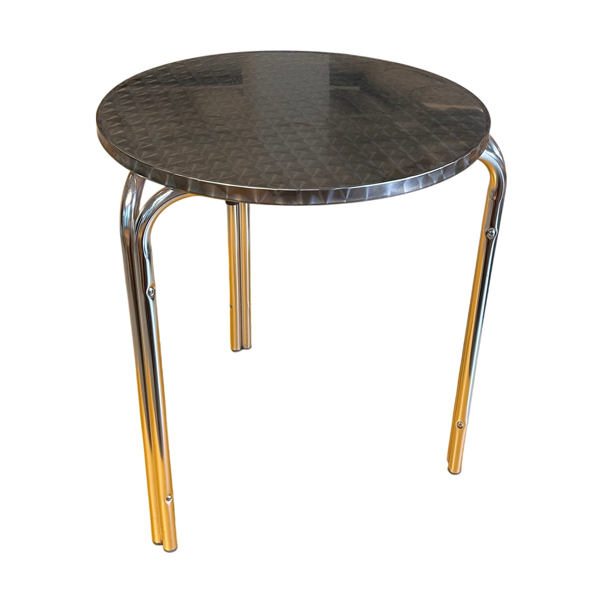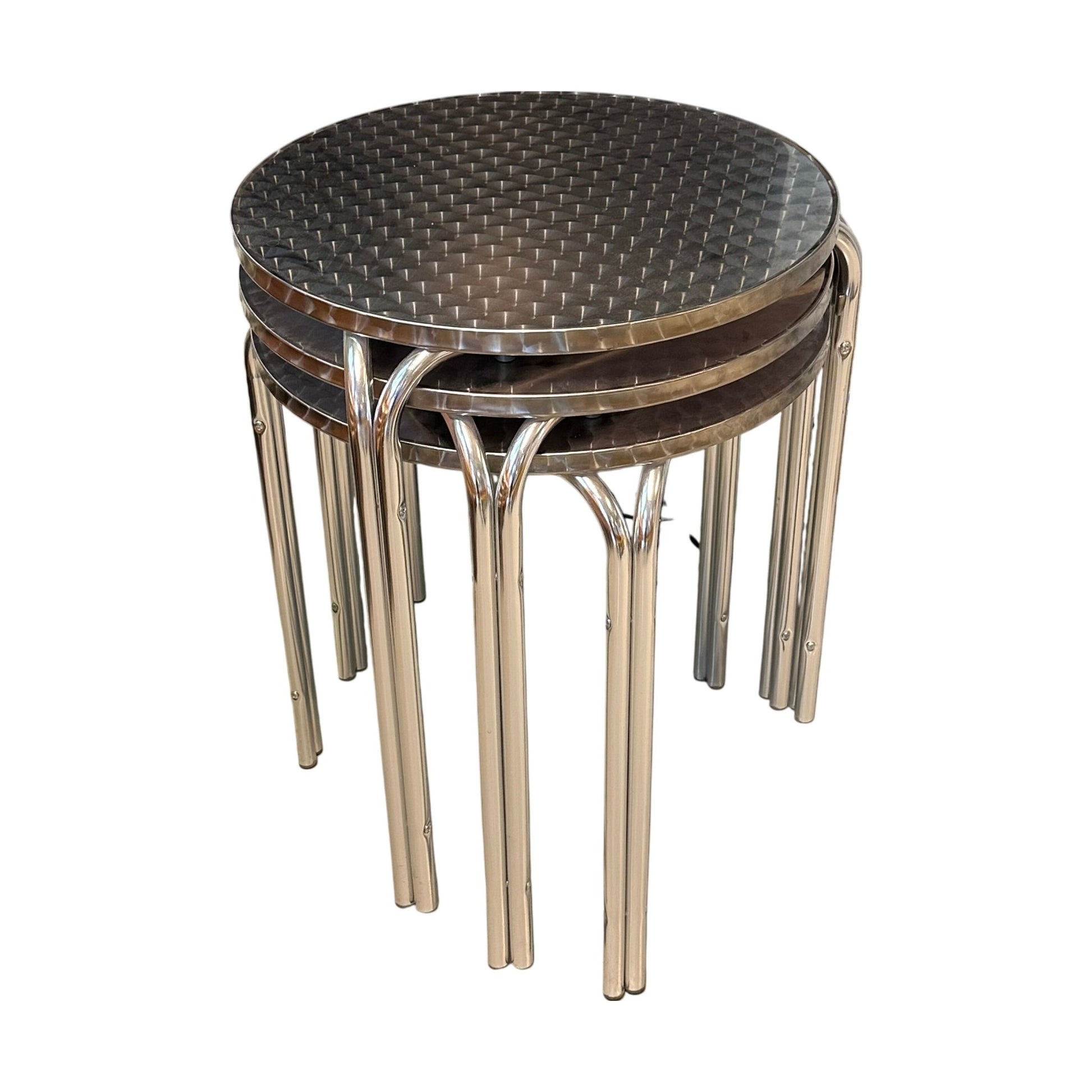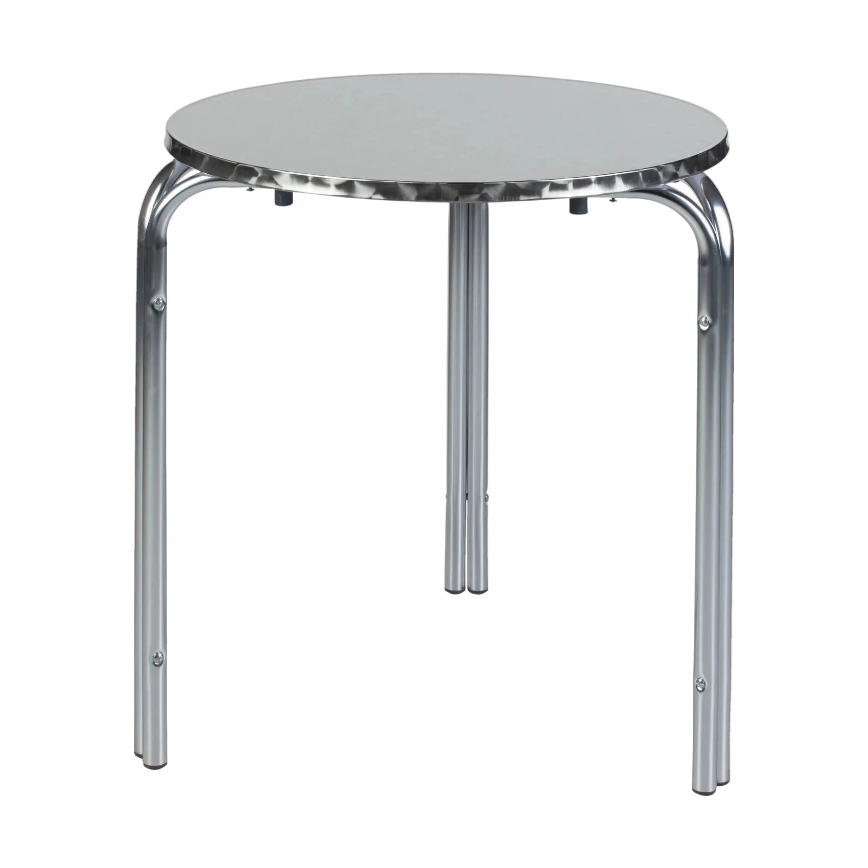 Stablebare aluminiumsbord Holly fra Pulsiva er et praktisk og stilrent bord som passer perfekt for både innendørs og utendørs bruk. Med sin grå, sirkulære bordplate i aluminium og slanke, sølvfargede ben, tilbyr dette bordet en moderne estetikk sammen med stabilitet og holdbarhet.
