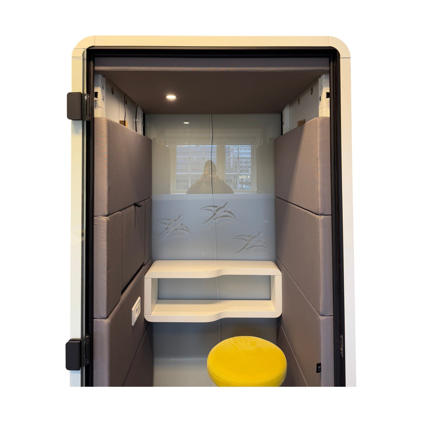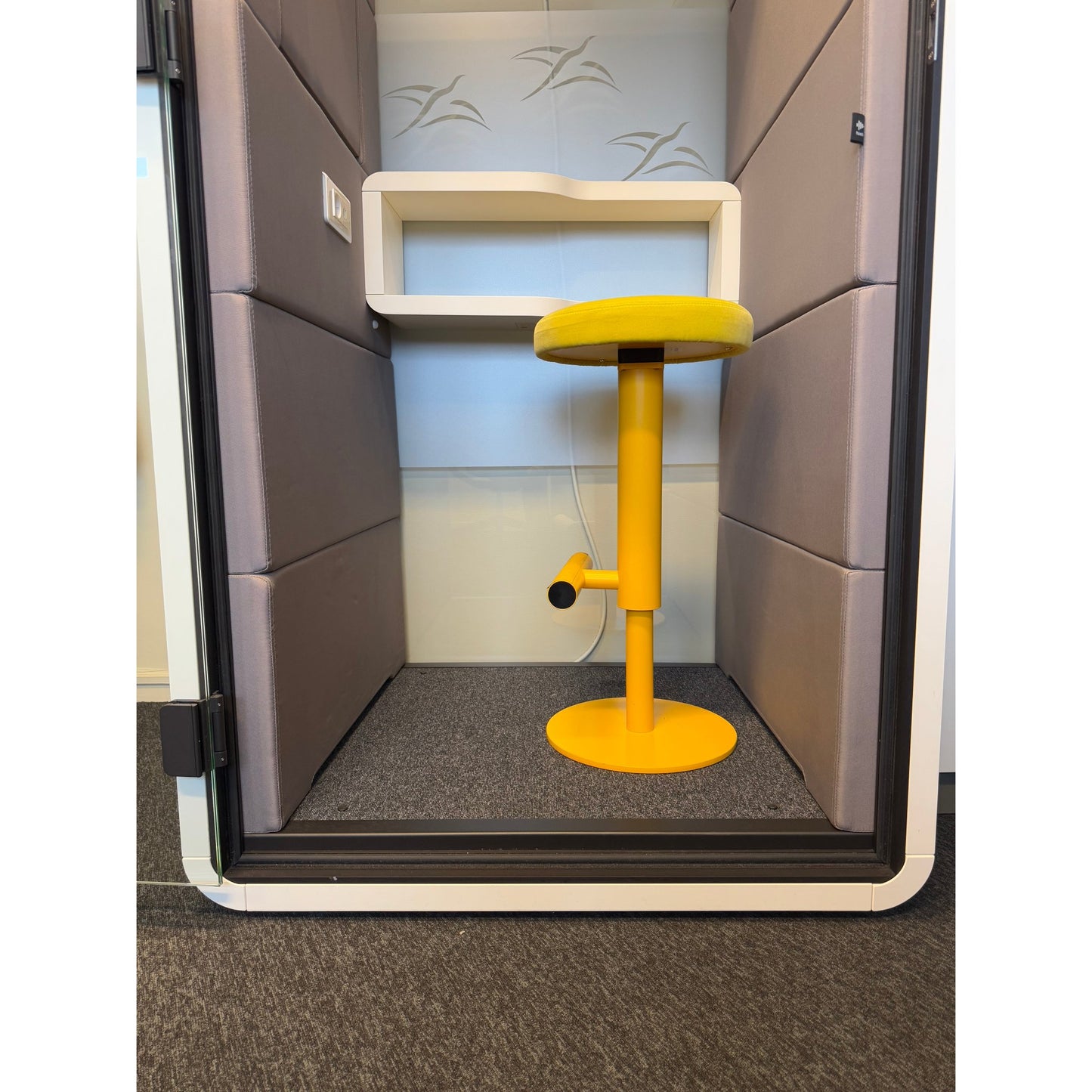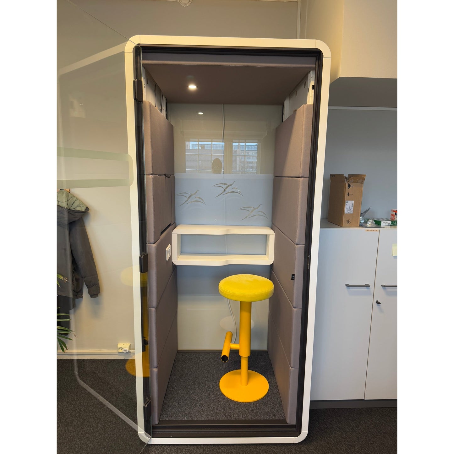 Hush Phone er et moderne og kompakt stillerom/telefonboks som gir privatliv og ro i åpne kontormiljøer. Perfekt for telefonsamtaler eller korte økter med fokusarbeid.