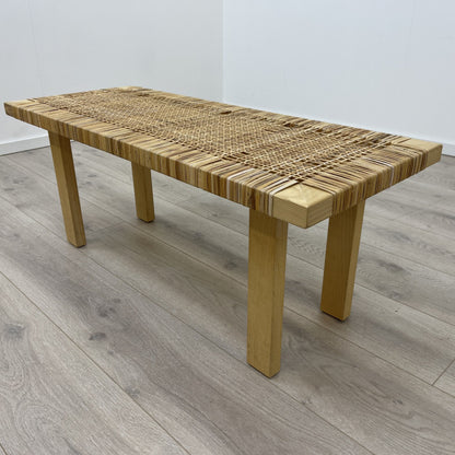 STOCKHOLM 2017 Rattan benk Solid og slitesterk benk med flettet topp Noen linjer av den flettede toppen er borte, men ser helhetlig pen ut.