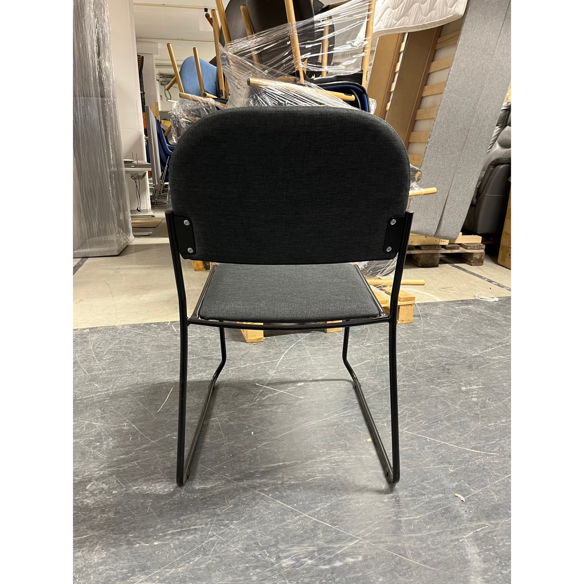 Stol DAWSON fra AJ Produkter er en nett og stilren stol designet for fleksible sitteopplevelser. Den har en moderne, minimalistisk form med en grå stoffkledd sete og ryggstøtte, samt et robust svart stålunderstell. Stolen er lett å stable og kan enkelt kombineres med andre enheter, noe som gjør den ideell for kontormiljøer og flere sittearrangementer.