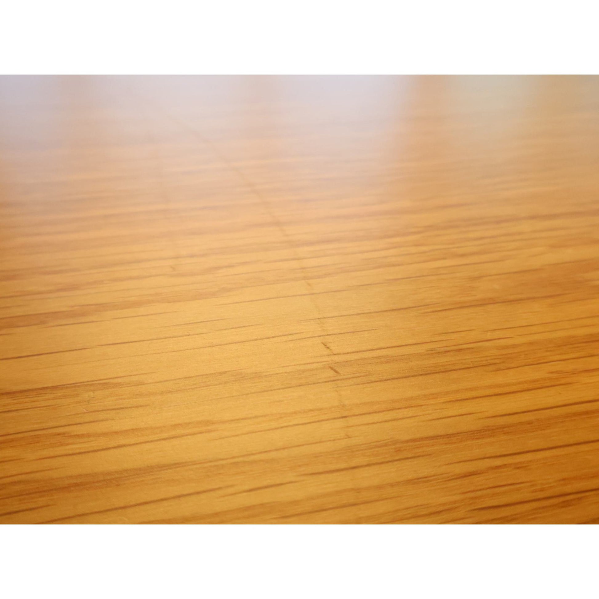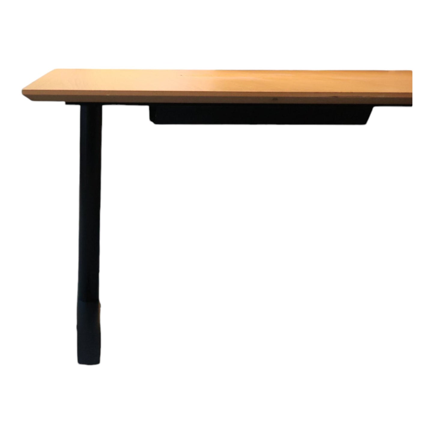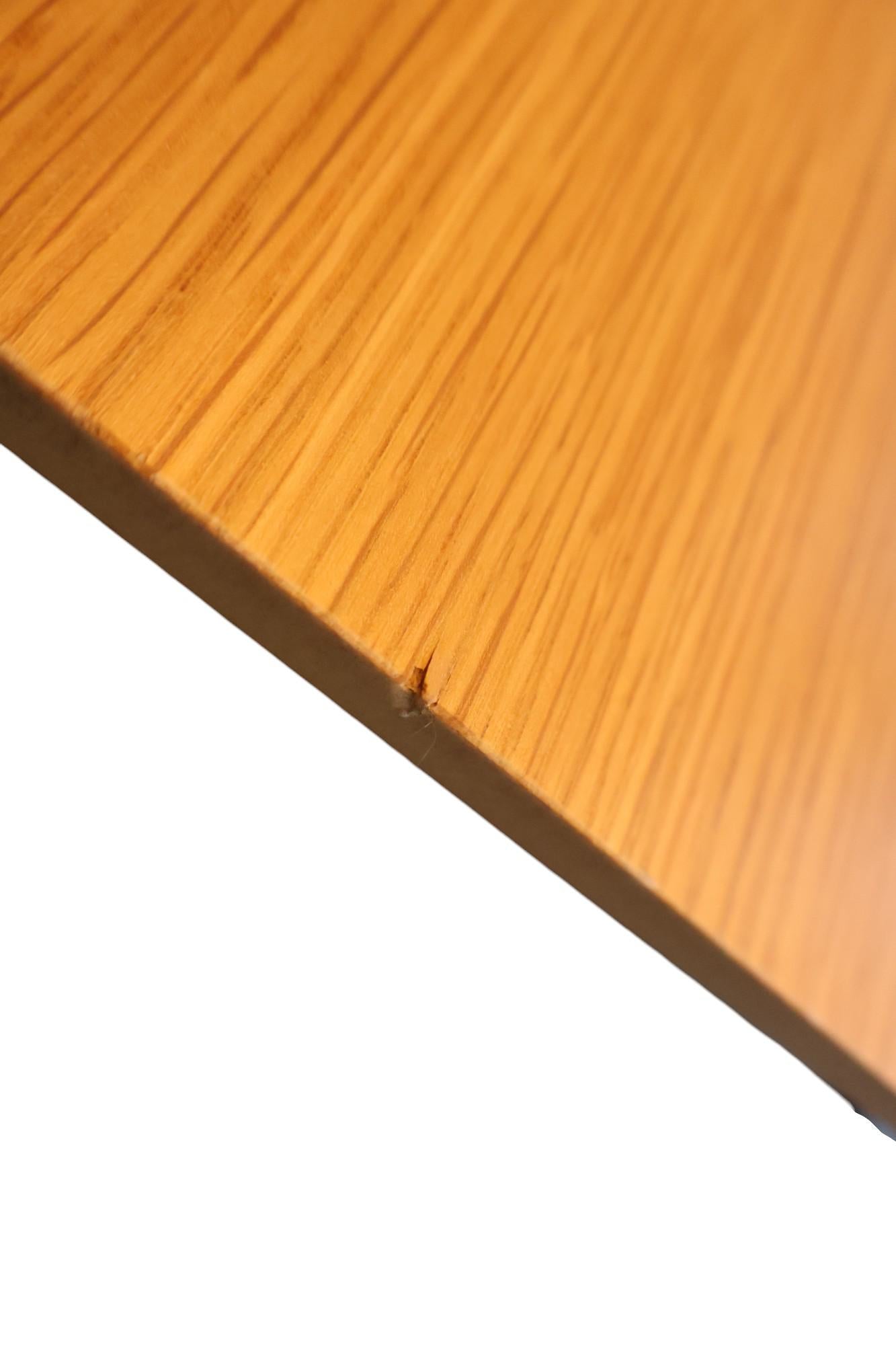 Bordet har noen små hakk langs kantene og riper på platen, men dette påvirker ikke funksjonaliteten. Det er fortsatt en robust og praktisk løsning for ethvert kontormiljø.