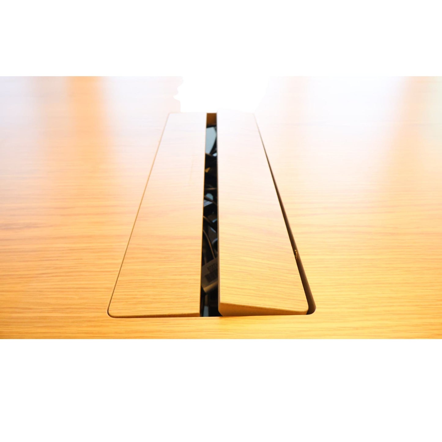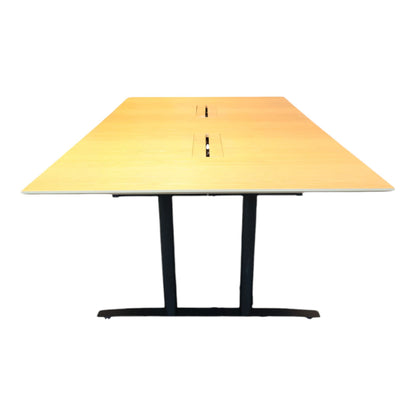 Elegant og funksjonelt møtebord med stor arbeidsflate, ideelt for møter eller arbeid i grupper. Bordet har praktiske kabeluttak og et stilrent design i eikefiner som passer perfekt inn i både kontor- og konferanserom.