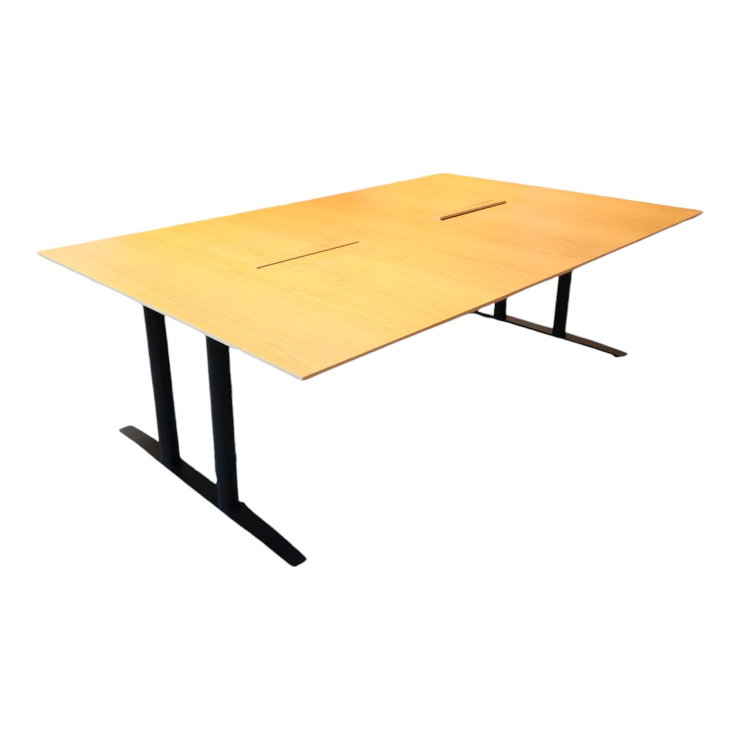 Stort møtebord, eikefiner m/kabeluttak, 240x150cm