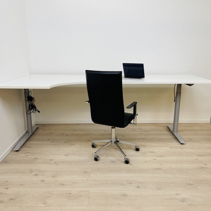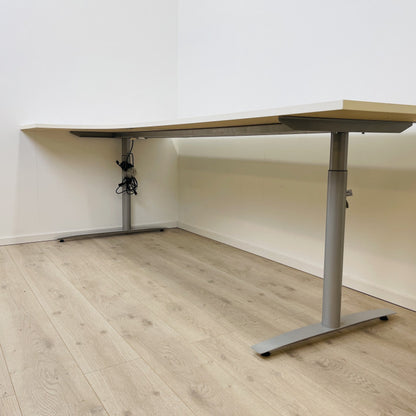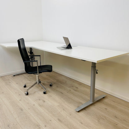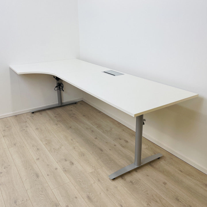 Større elektrisk hev/senk skrivebord med venstresving. 260 cm bredt