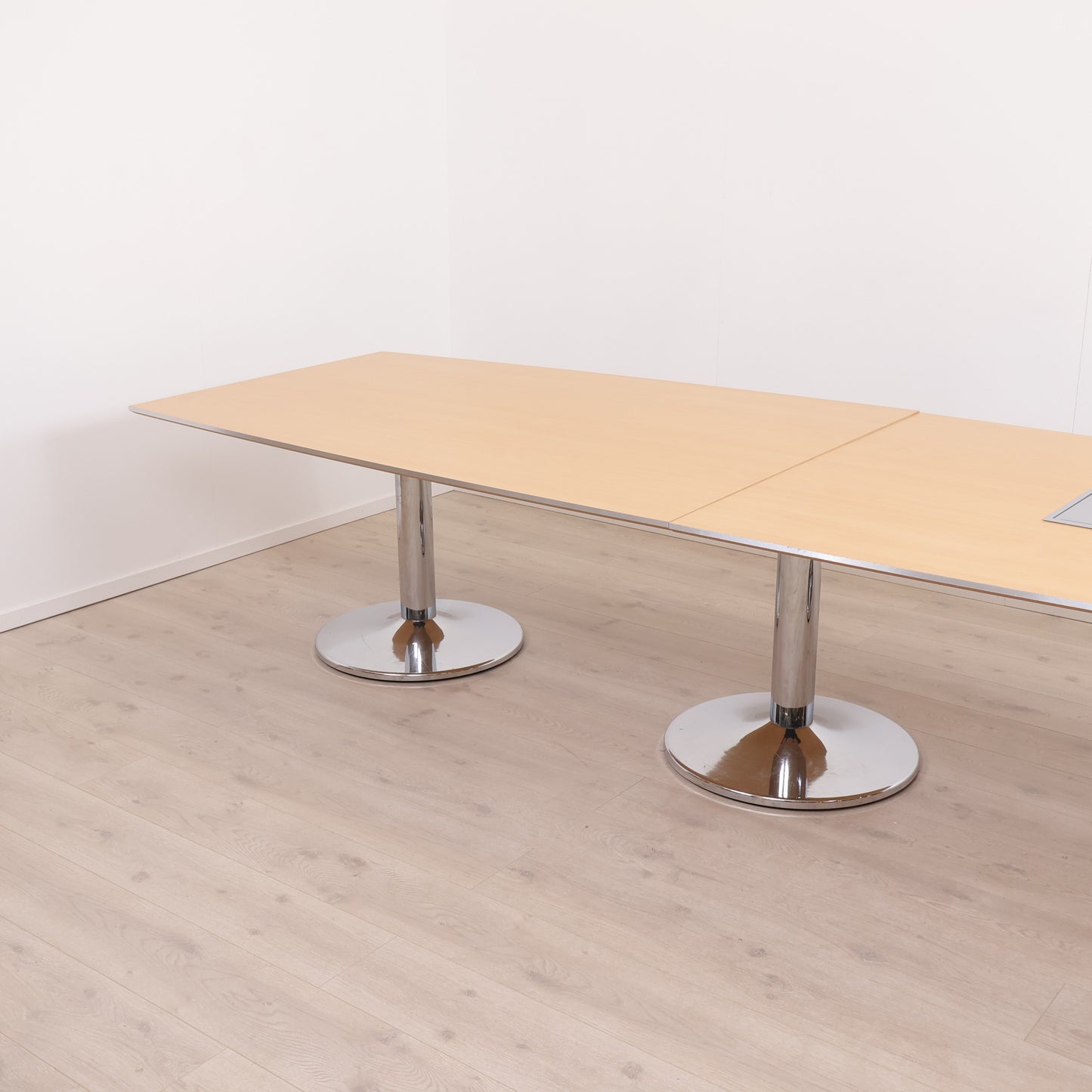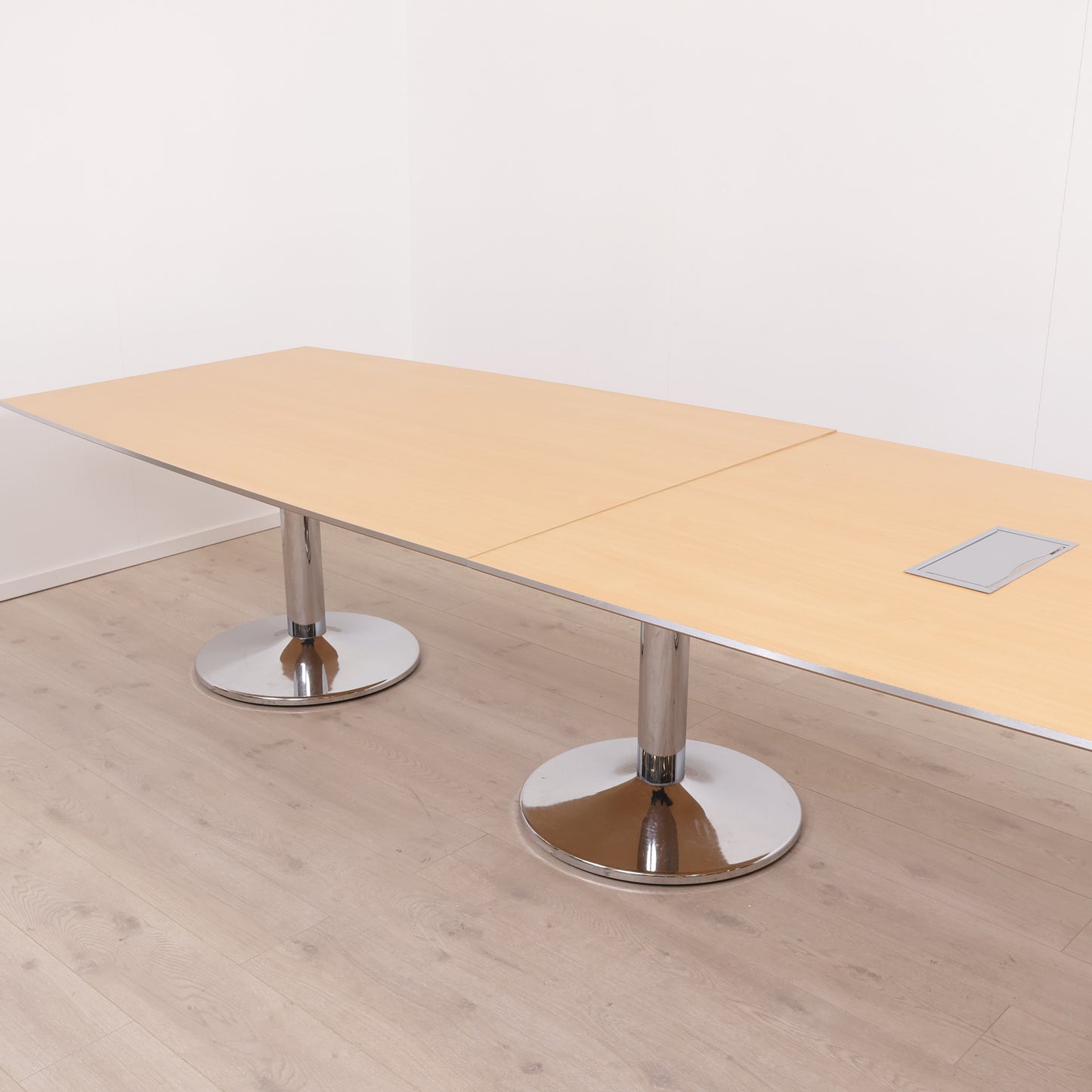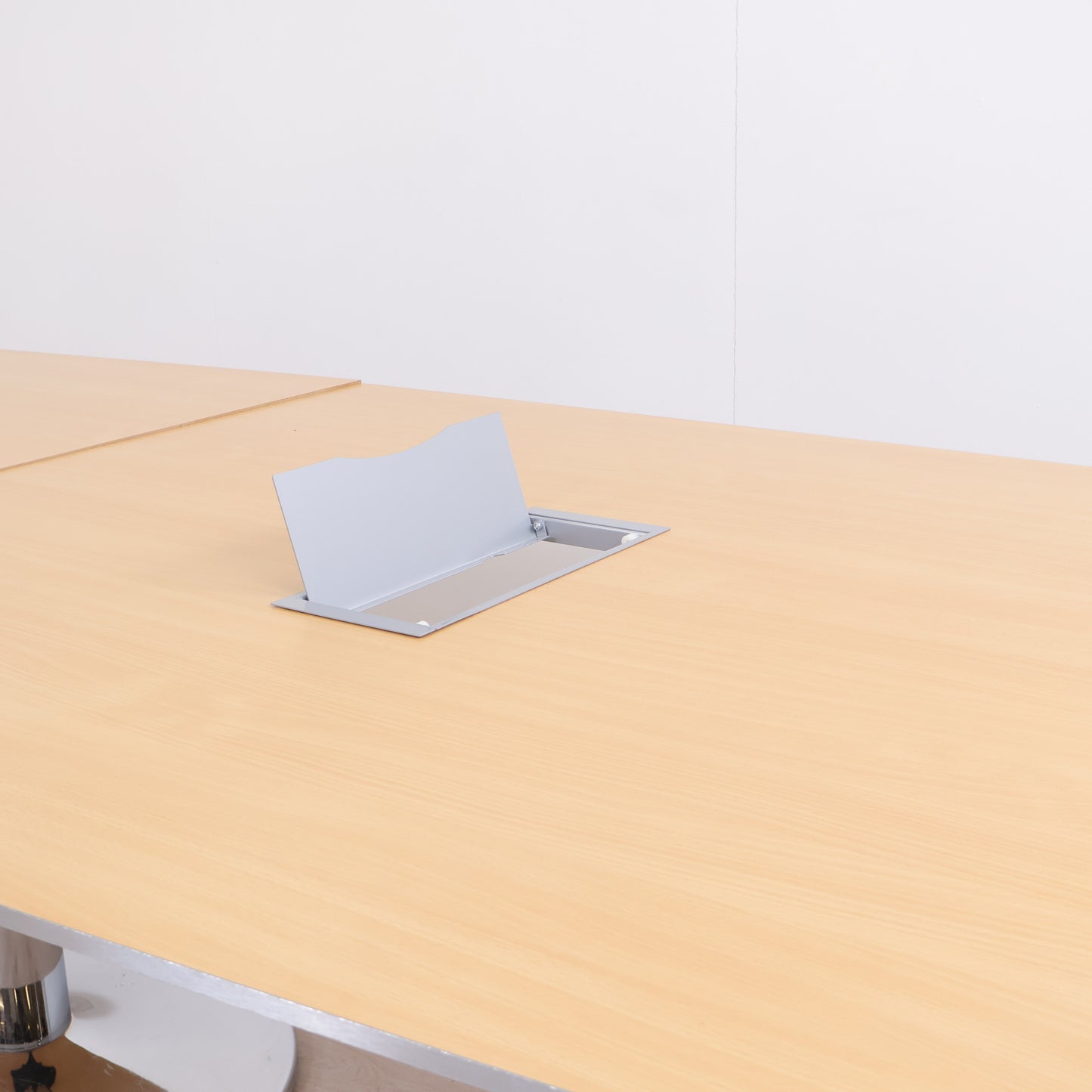 Stort møtebord med kabelluke i midten. 360 x 120 cm