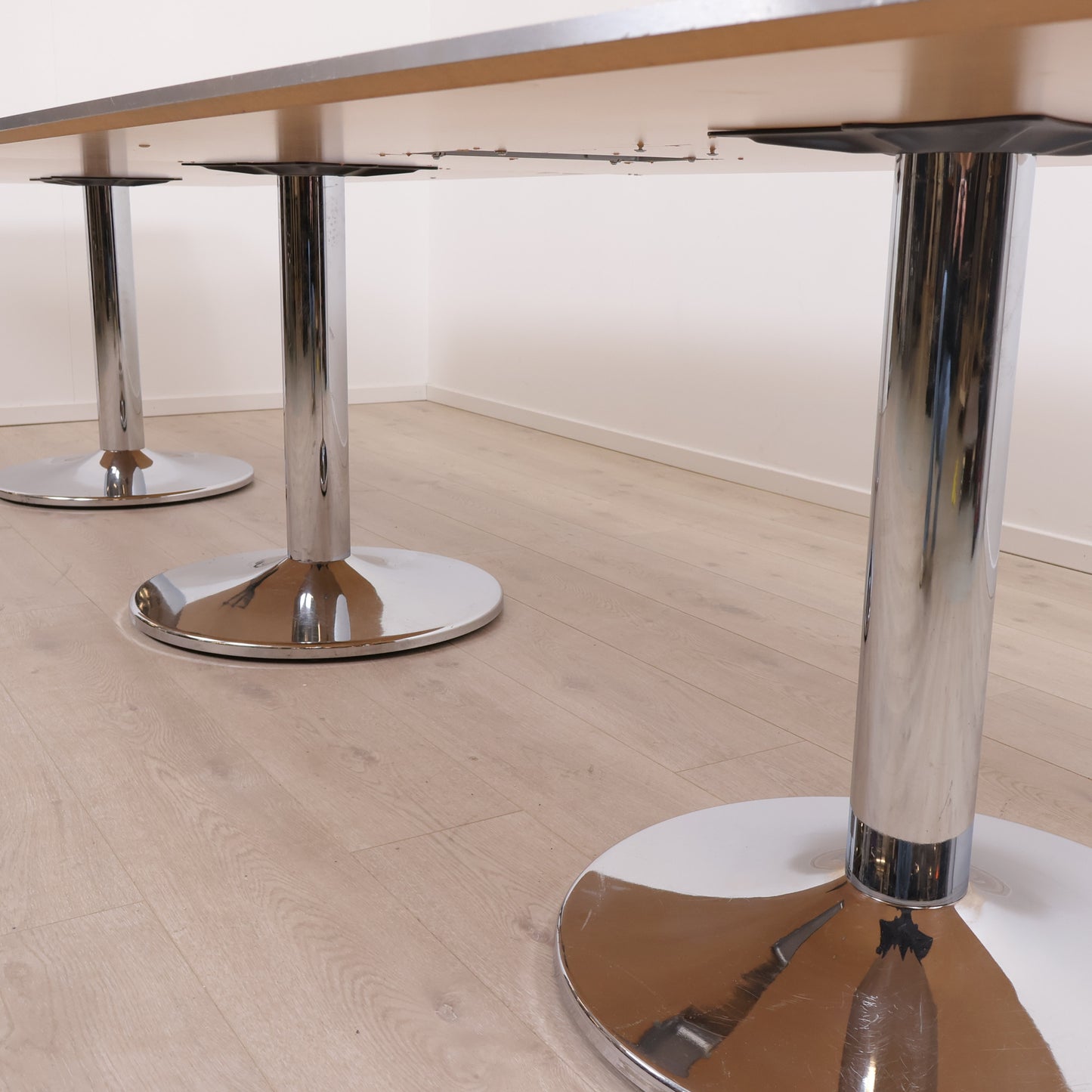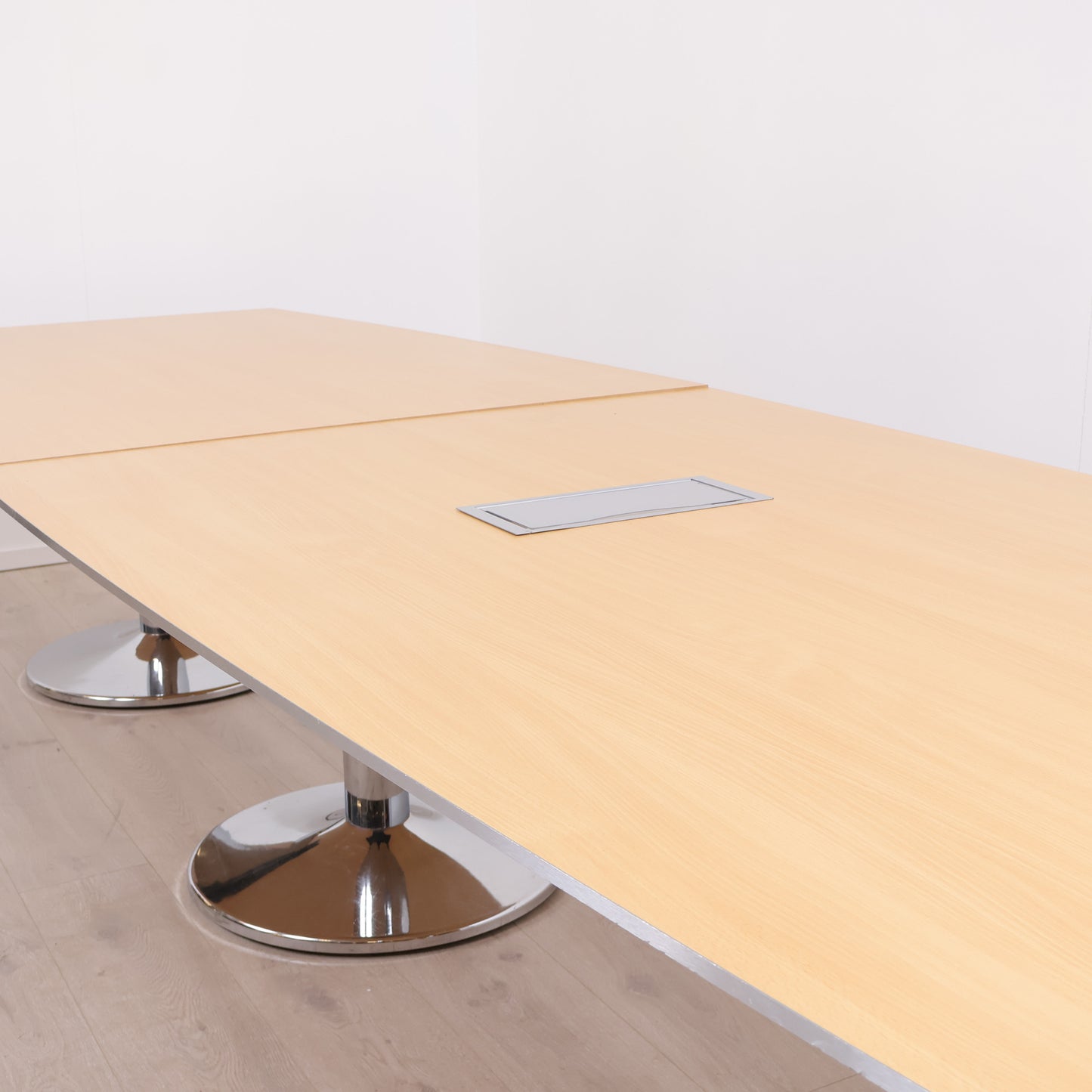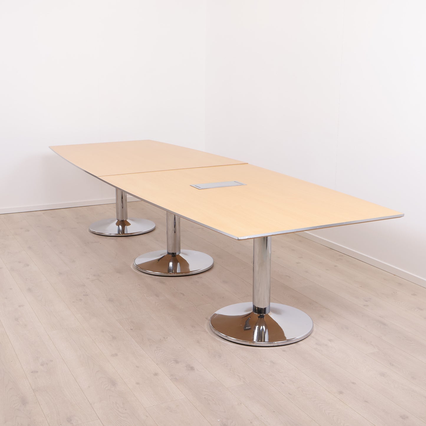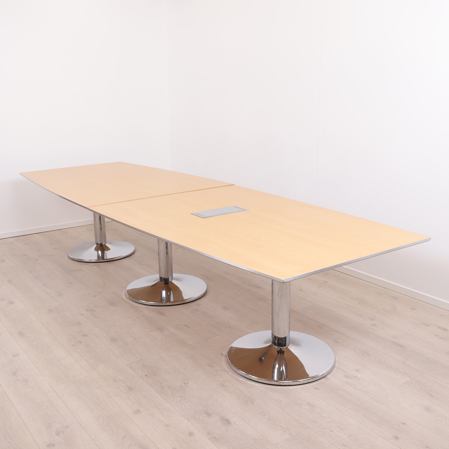 Stort møtebord med kabelluke i midten. 360 x 120 cm