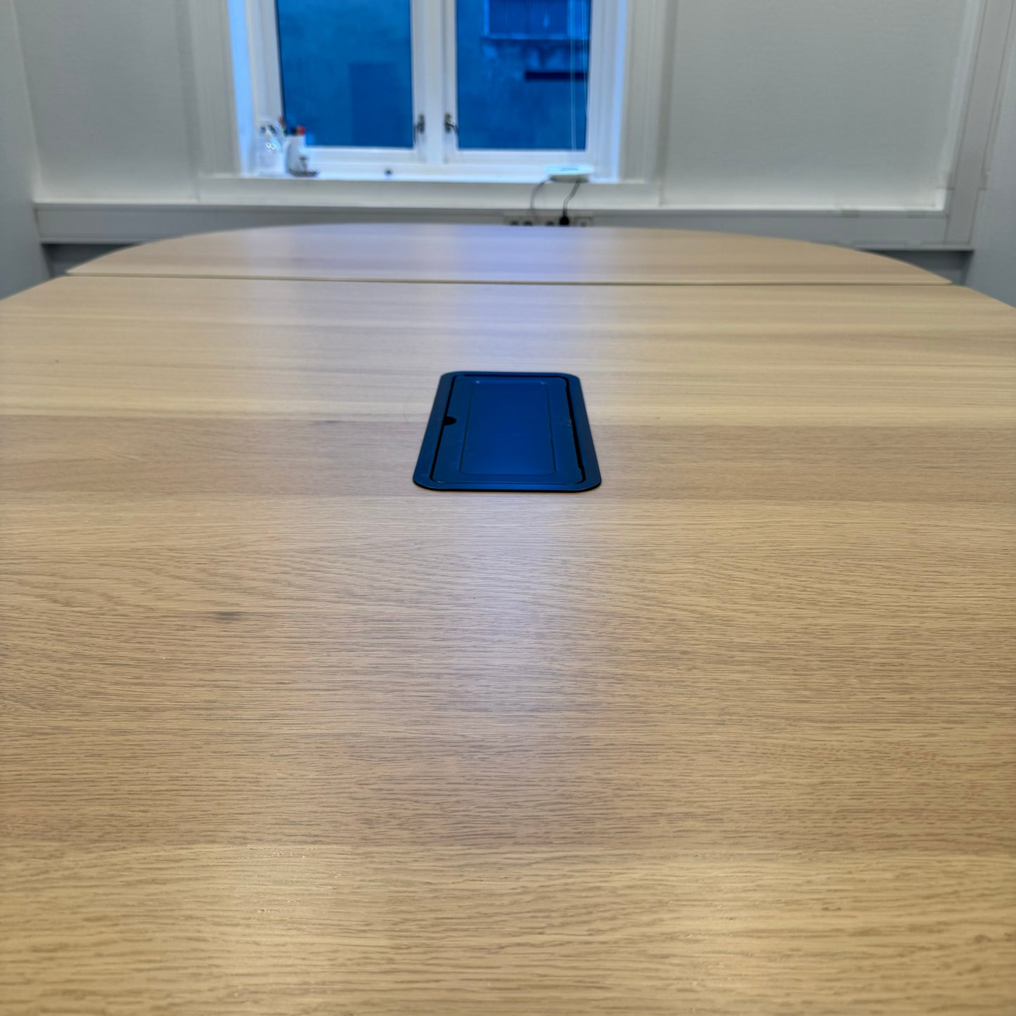 Bordet har noen mindre riper på overflaten, men dette påvirker ikke bruken. Det er ellers i god stand og klart for nye møter.