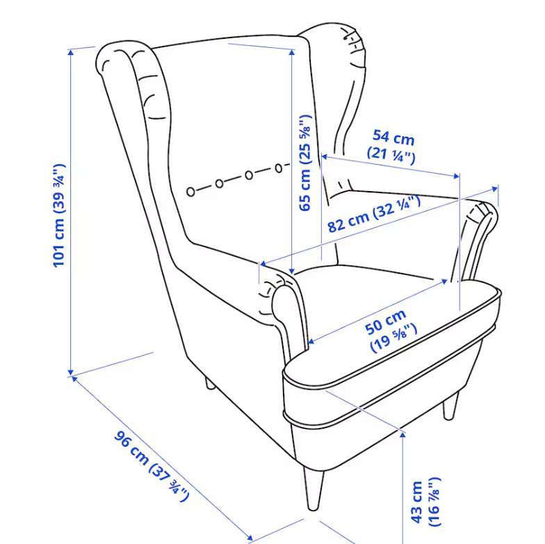 - Spesielle funksjoner: Høy rygg, runde armlener og mulighet for fotskammel