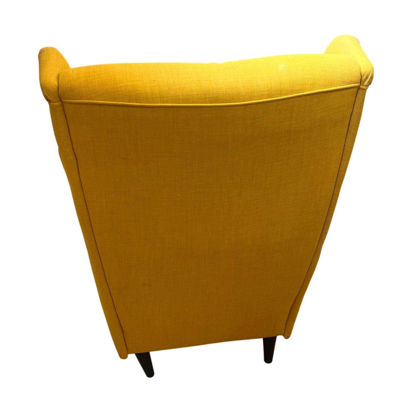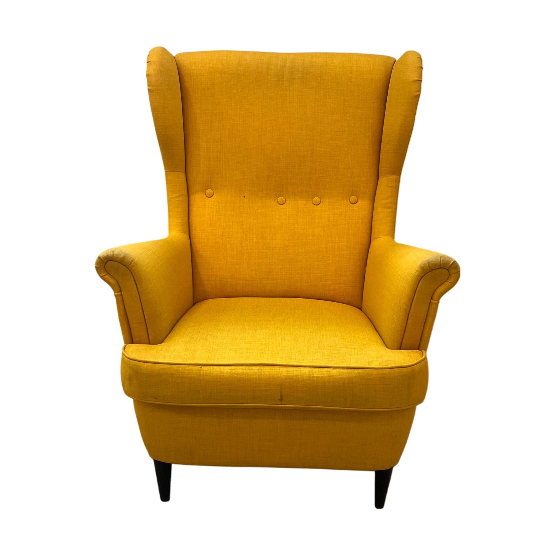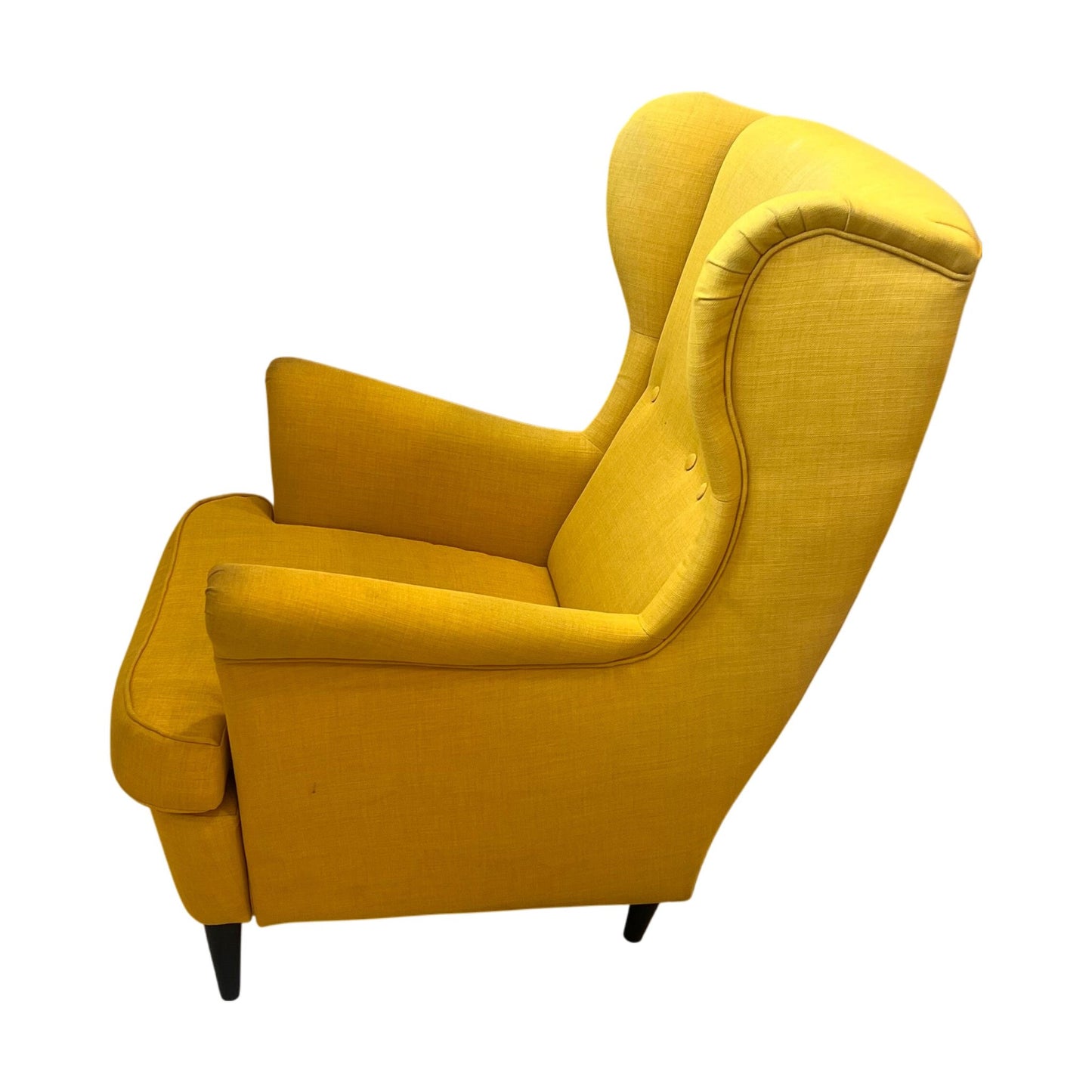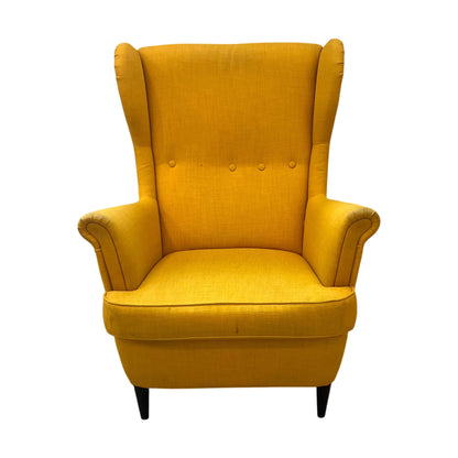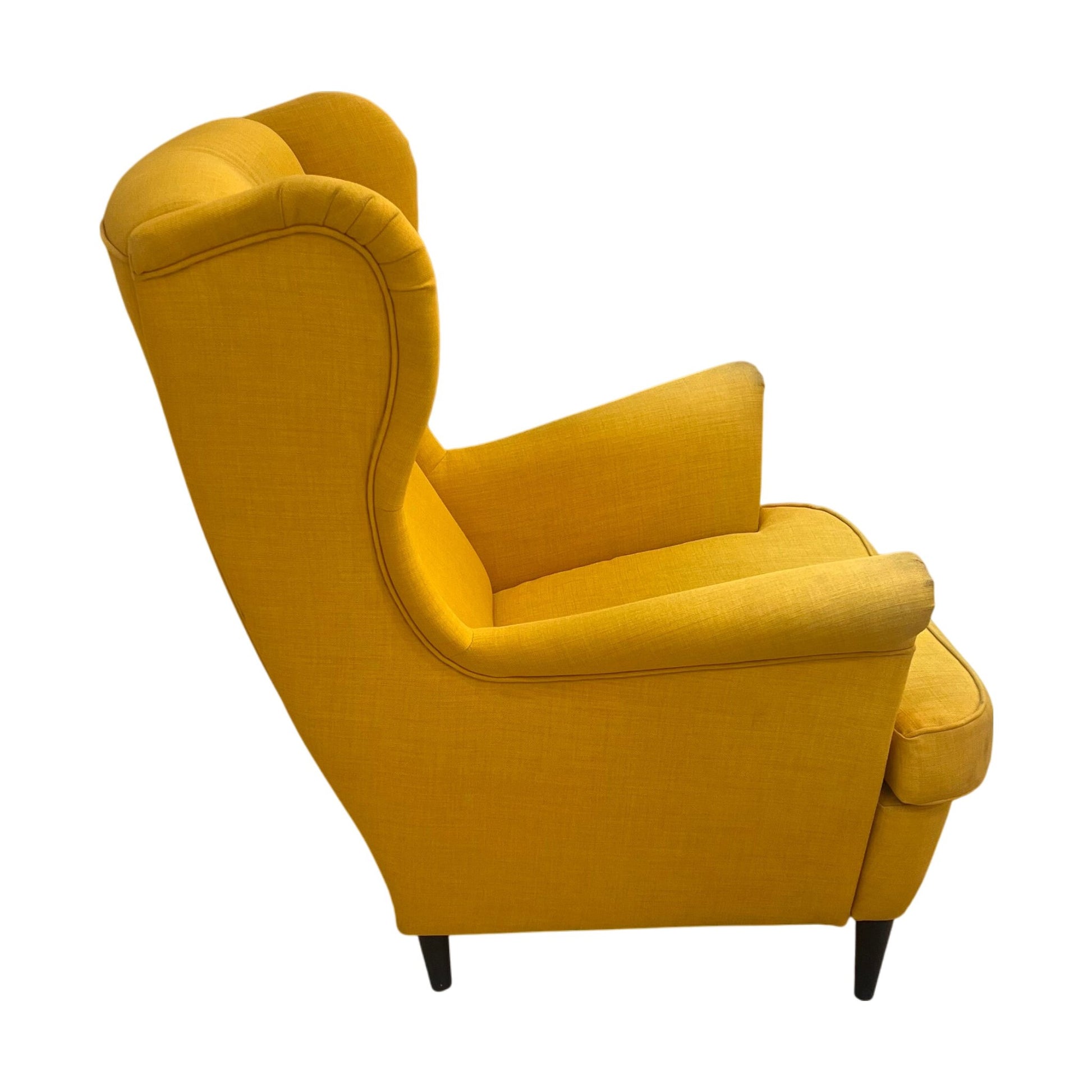 Strandmon gul lenestol fra IKEA er perfekt for avslapning, enten i loungen eller i lesehjørnet hjemme. Den friske gule fargen gir en livlig atmosfære, samtidig som stolen har et stilrent design med høy rygg og komfortable armlener.