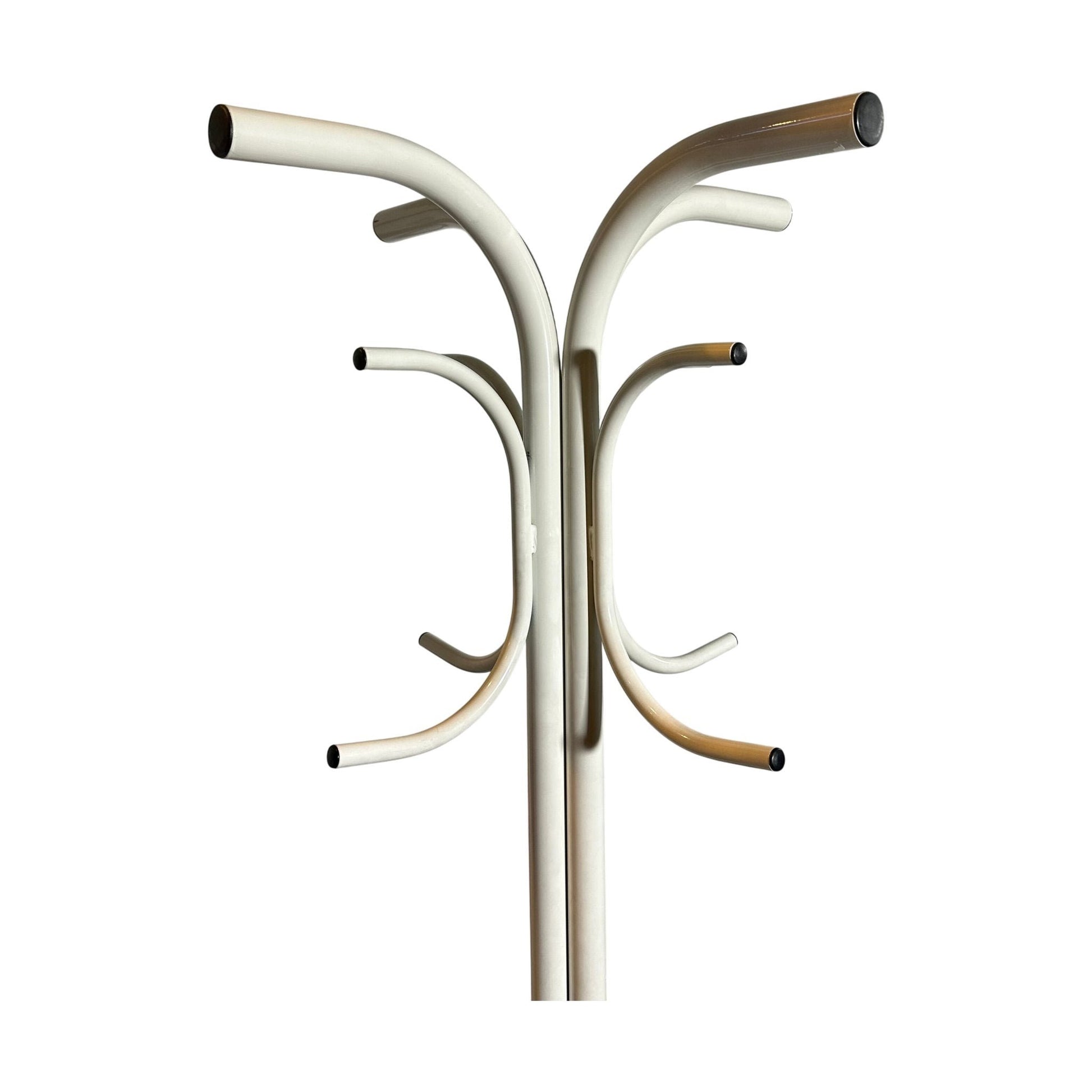 Stumtjener 4ben er en enkel og stilren oppbevaringsløsning for klær og tilbehør. Den hvite fargen gir et moderne preg, og det minimalistiske designet gjør den lett å integrere i ulike interiørstiler.