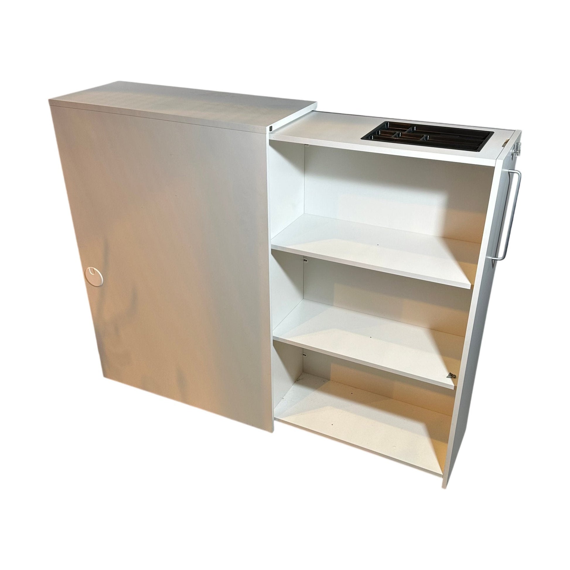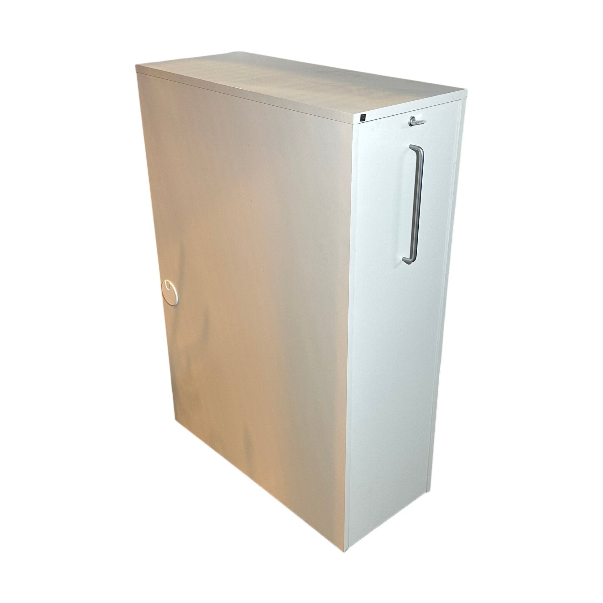 Dette moderne tårnskapet fra Svenheim har et stilrent design med en praktisk høyre åpning. Det er laget i en varm hvit nyanse som gjør det enkelt å integrere i ulike kontorlandskap. Tårnskapet er ideelt for lagring av dokumenter og kontorutstyr, og gir et elegant og minimalistisk uttrykk.