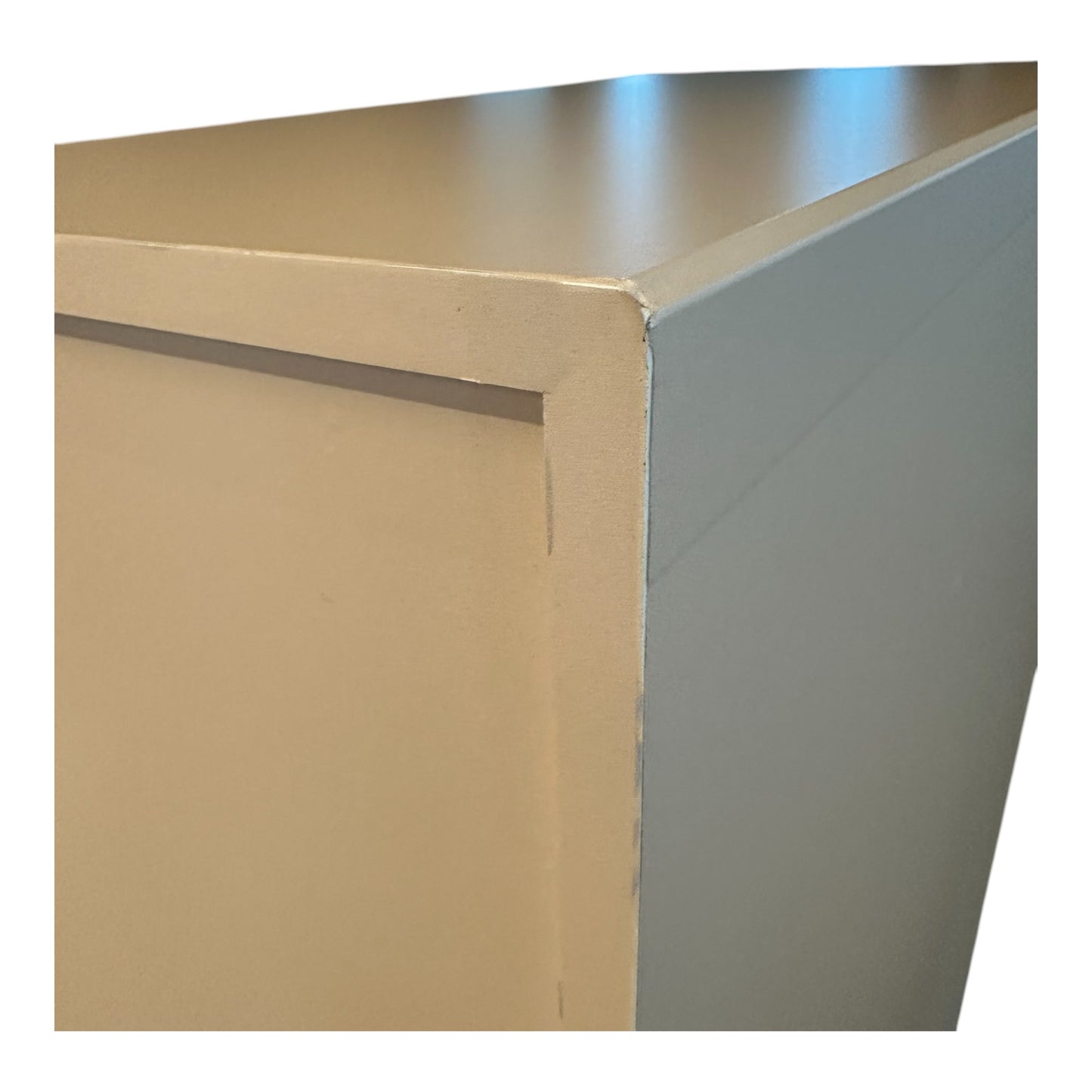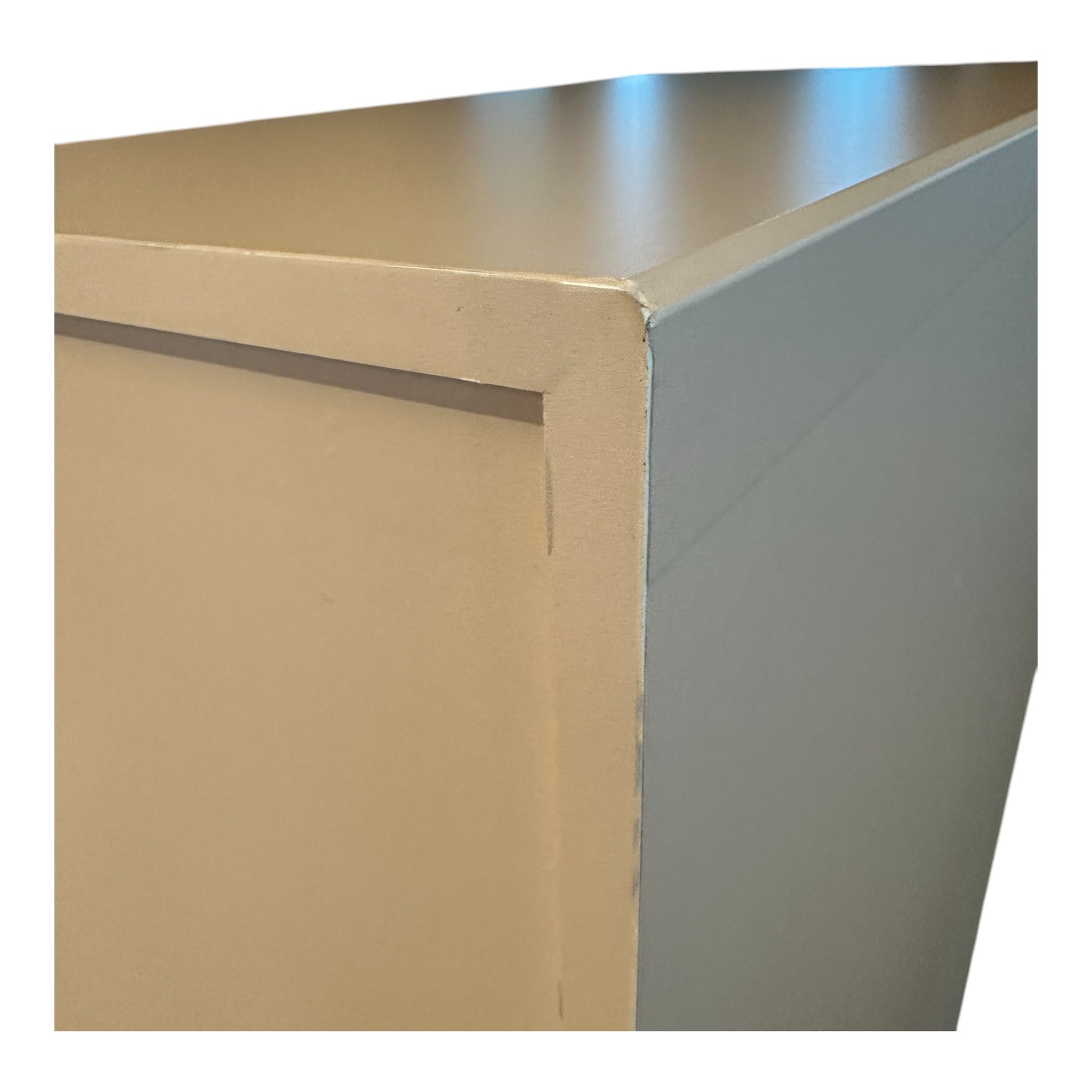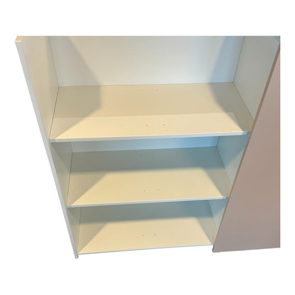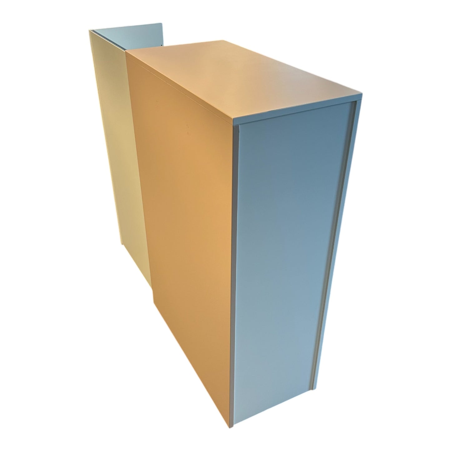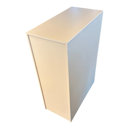 Skapet har noen merker og skader på hjørnene, noe som er vanlig ved bruk, men dette påvirker ikke funksjonaliteten. Laminatoverflaten er enkel å rengjøre og vedlikeholde, noe som sikrer langvarig glede.