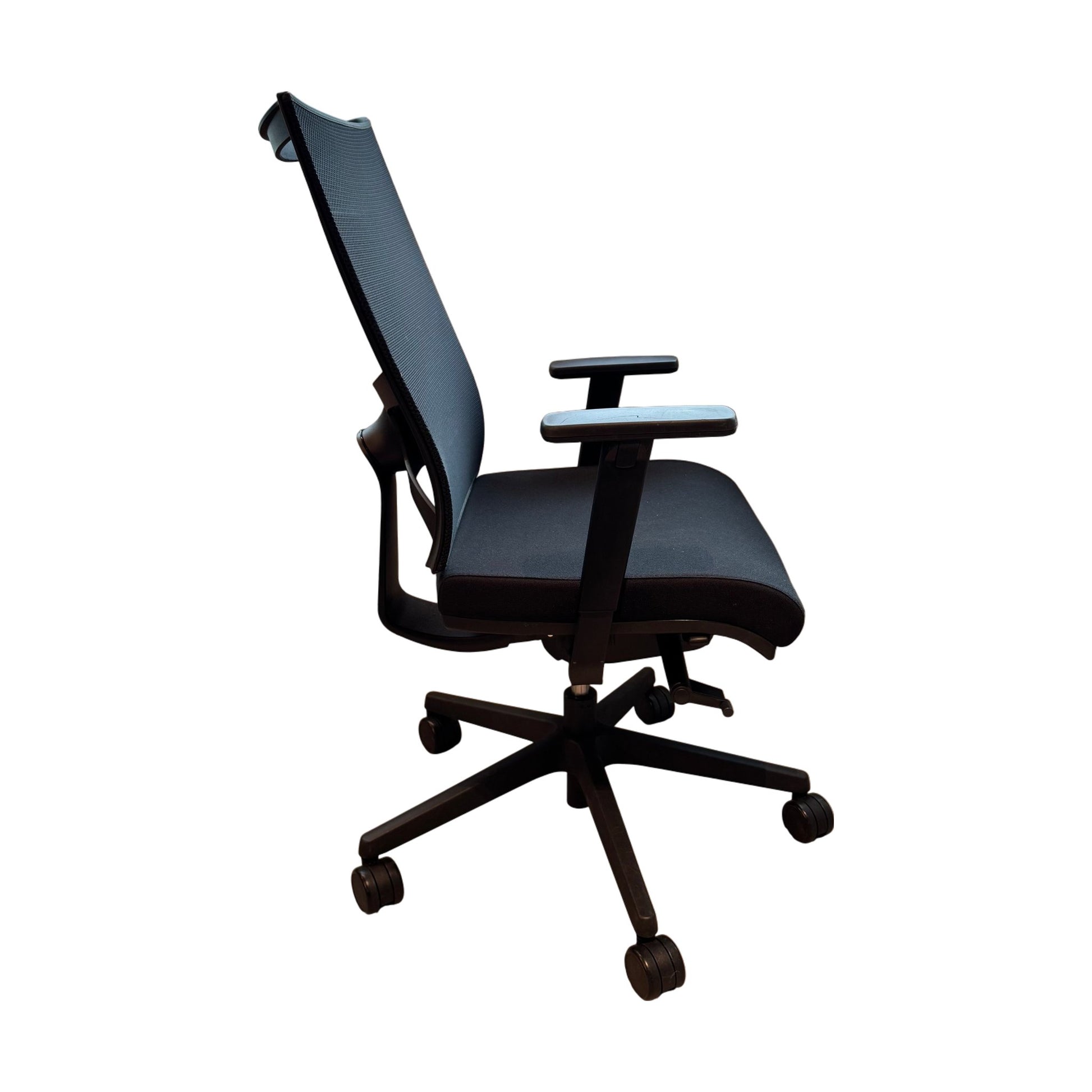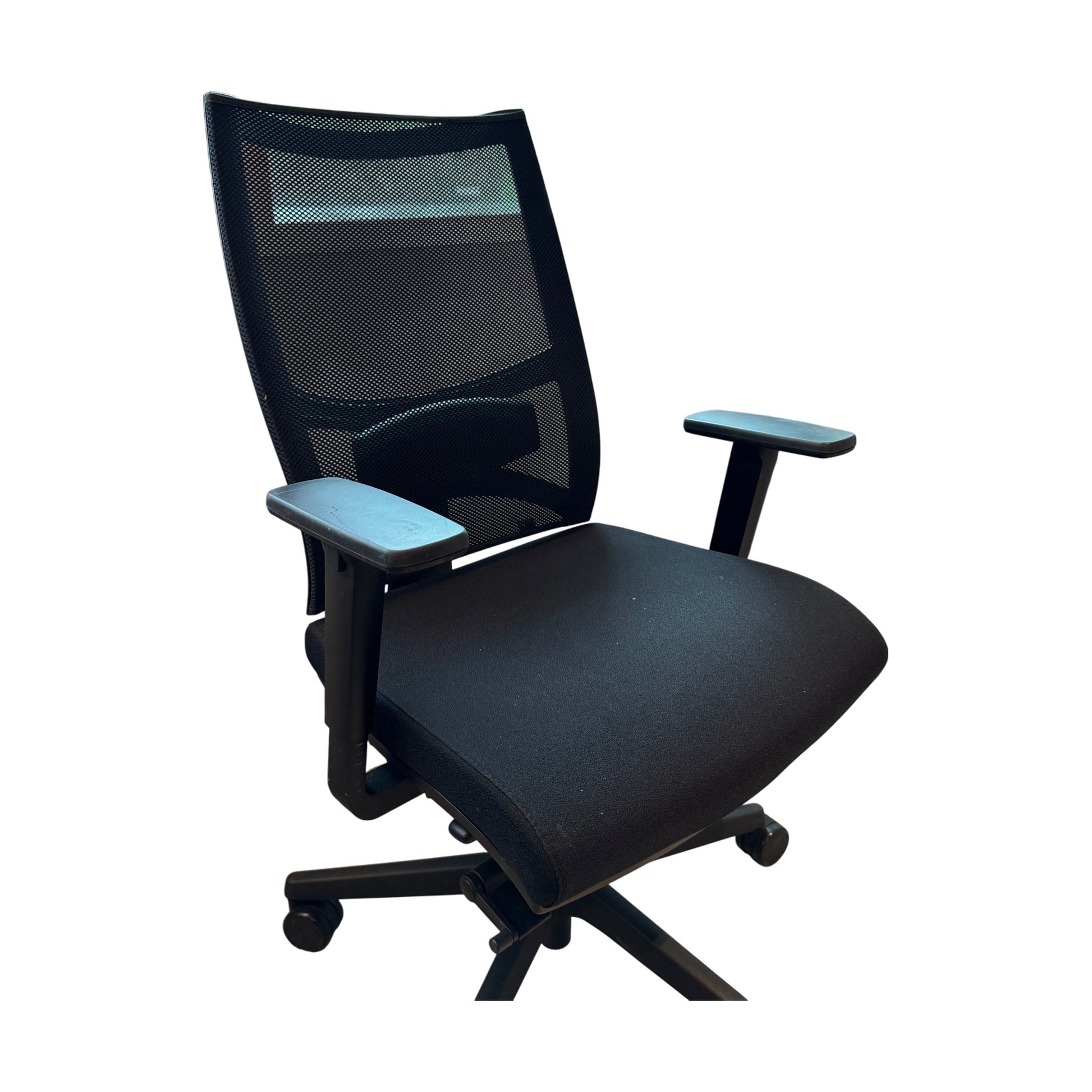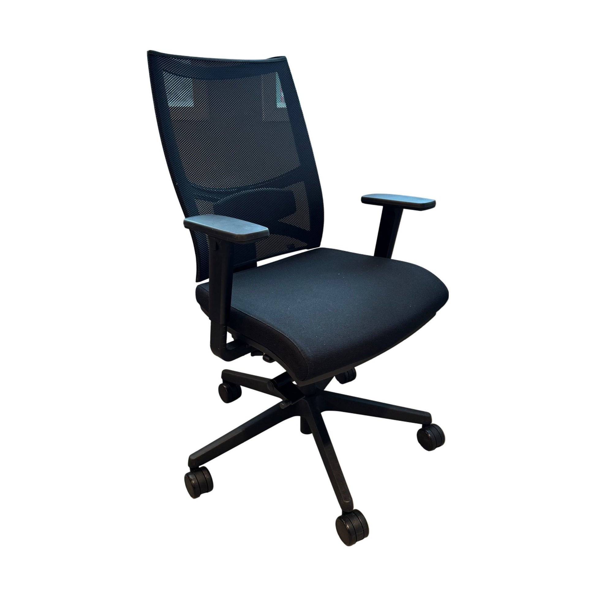 Ergonomisk kontorstol fra Sitland, modell Team Strike, med en stilren svart mesh-rygg og polstret sete. Denne stolen gir både støtte og komfort for lange arbeidsdager, og er designet for moderne kontoromgivelser.