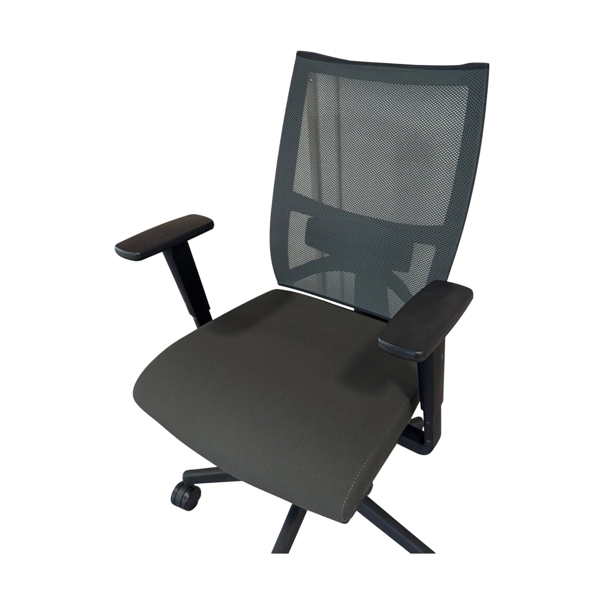 Kontorstolen Team Strike fra Sitland tilbyr en moderne og stilren look med et grått stoffsete og en lett, ventilerende rygge av netting. Den er designet for komfort og støtte, ideell for lange arbeidsdager.