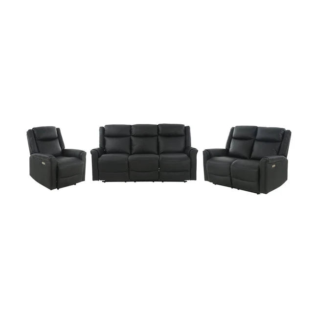 Texas sofagruppe bestående av en 1-seter, 2-seter og 3-seter reclinere. Denne sofagruppen i svart hud/PVC gir et moderne og elegant uttrykk, perfekt for både avslapning og sosialt samvær. De funksjonelle recliner-funksjonene gir mulighet for optimal komfort, og passer godt inn i de fleste hjem.