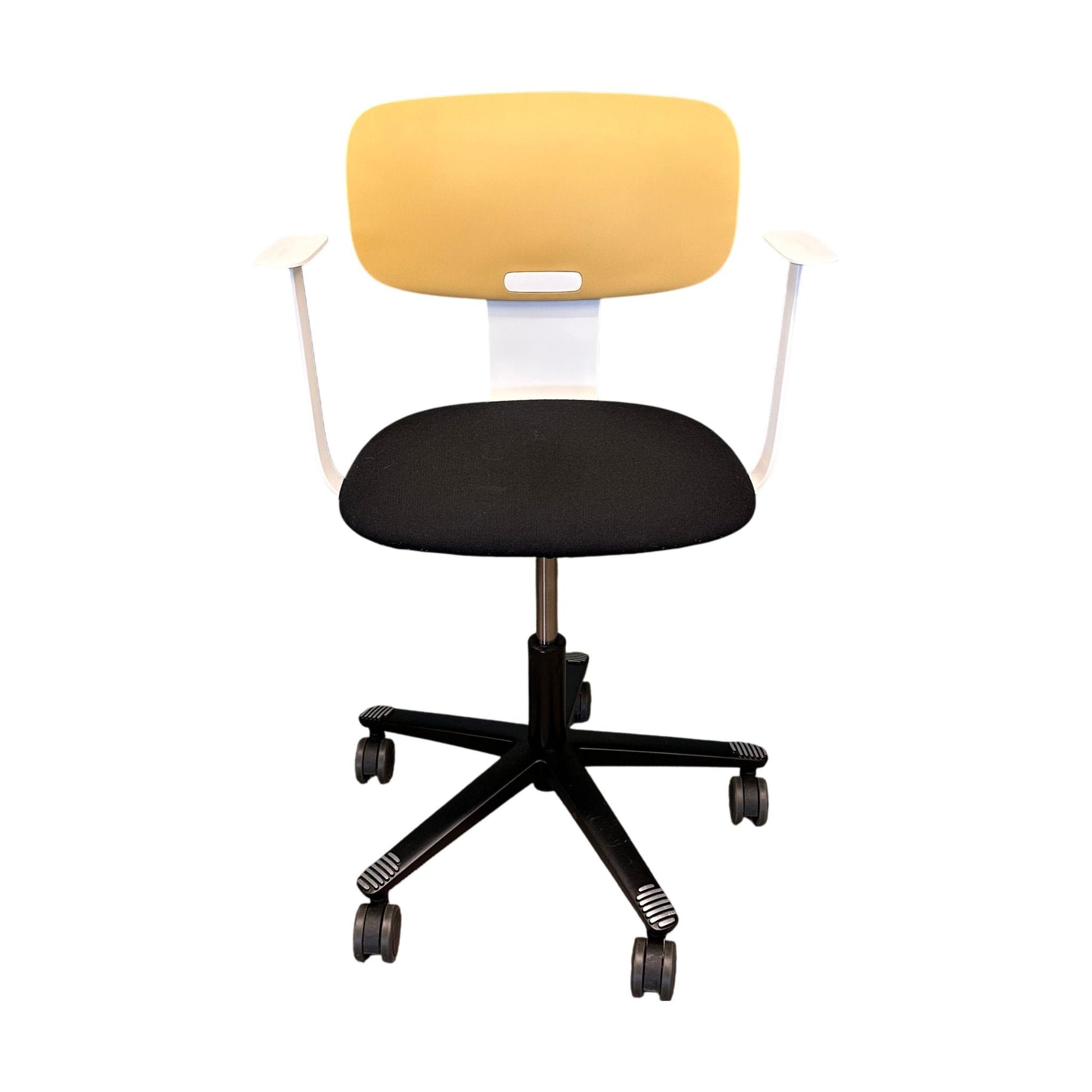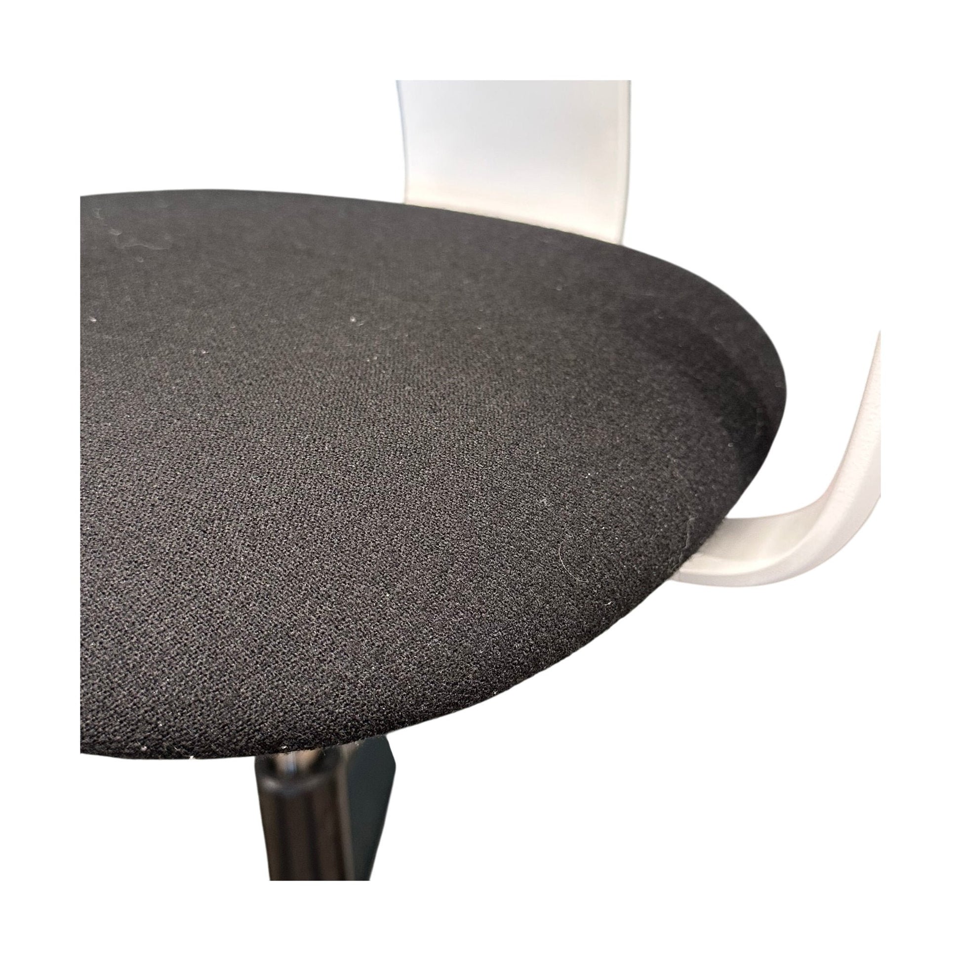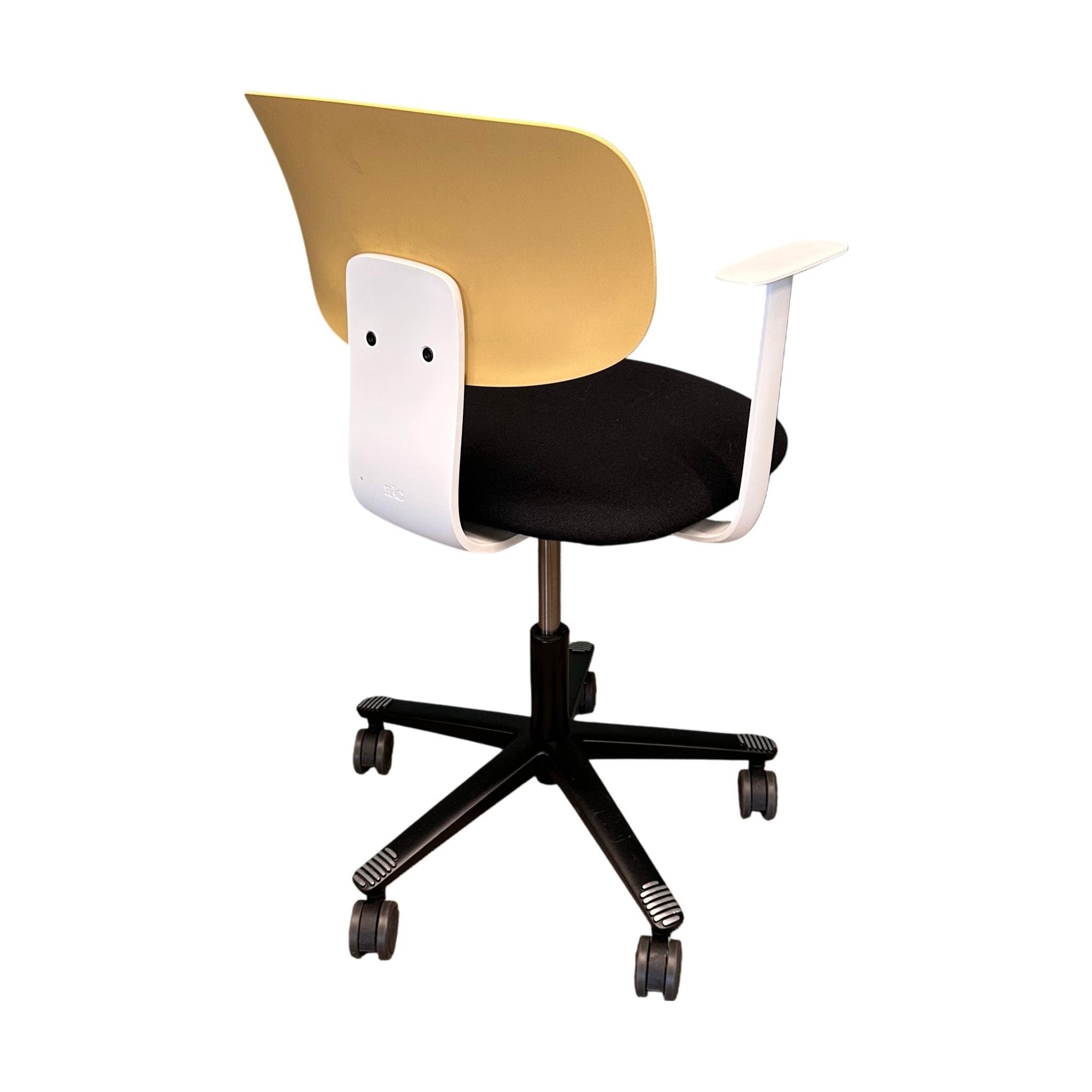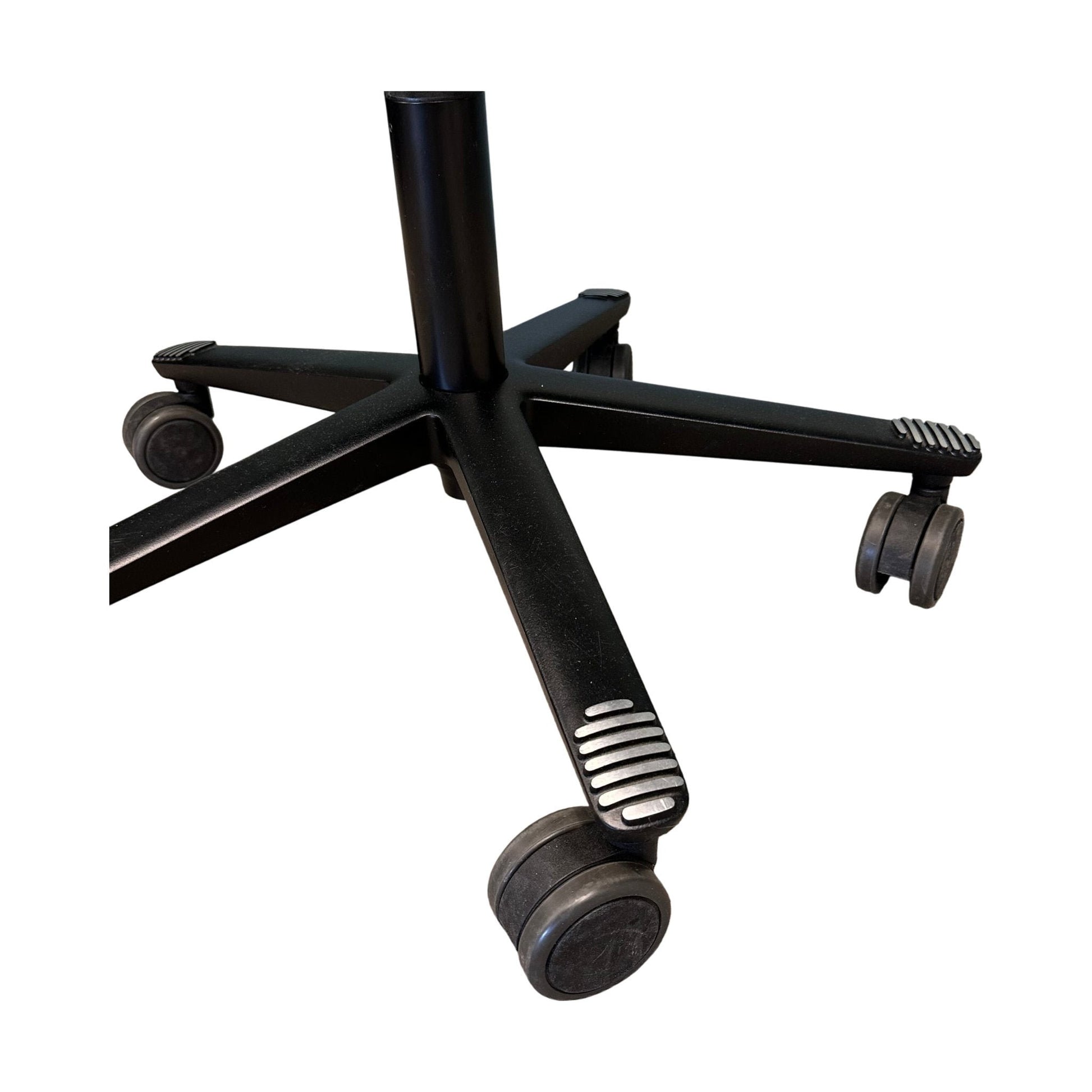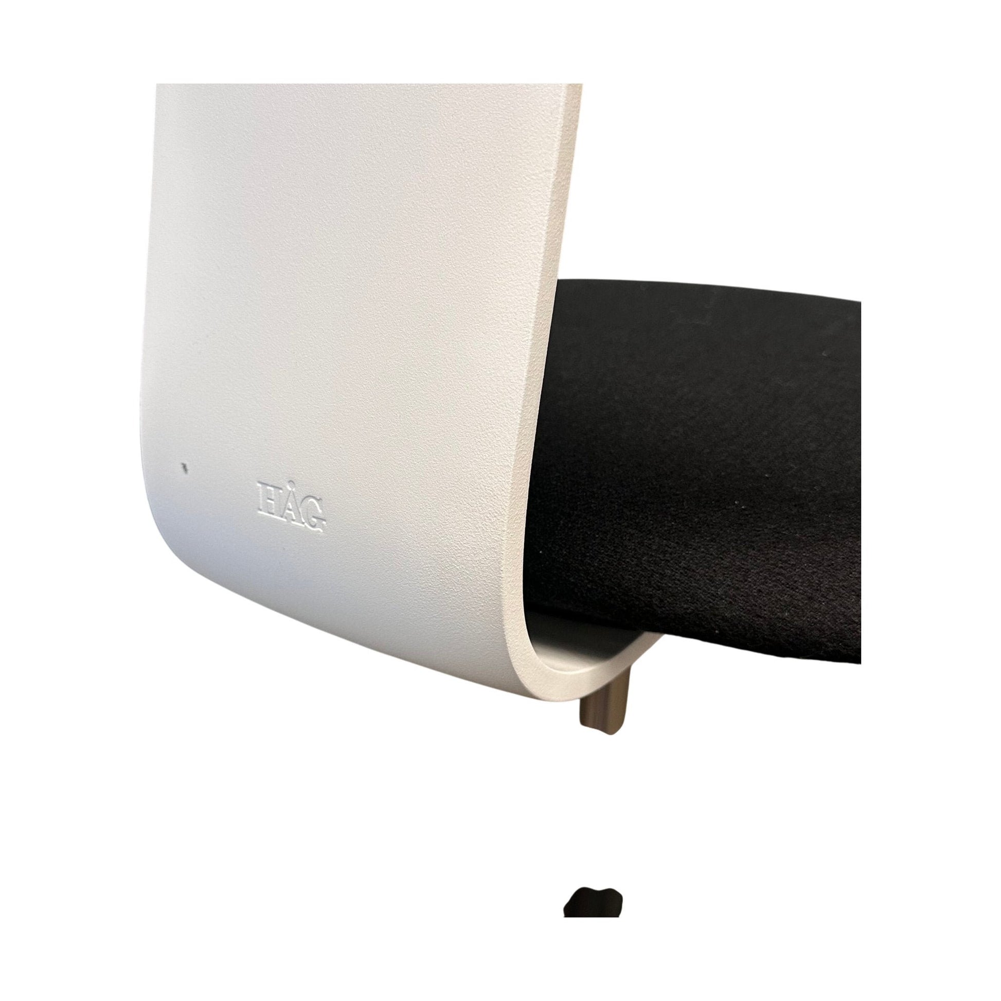 Tion møteromsstol fra HÅG med et moderne og stilrent design. Stolen er trukket i slitesterkt svart ullstoff som gir god komfort for både møter og kontorbruk. Armlenene tilfører ekstra støtte, selv om de har noen merker og skrammer. Denne stolen passer perfekt til møterom og kontorfellesskap.