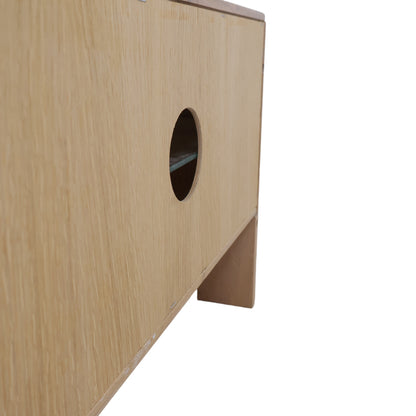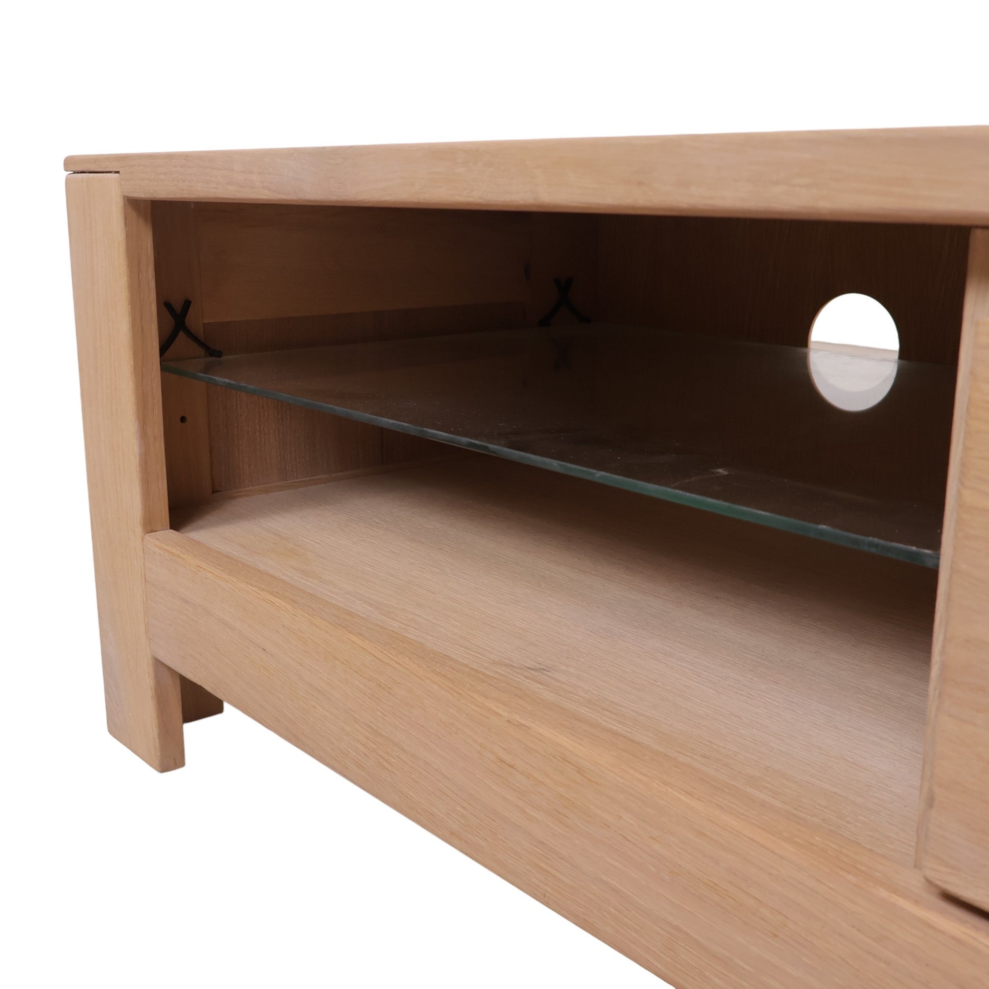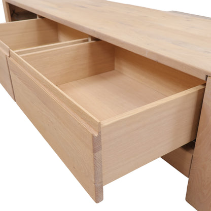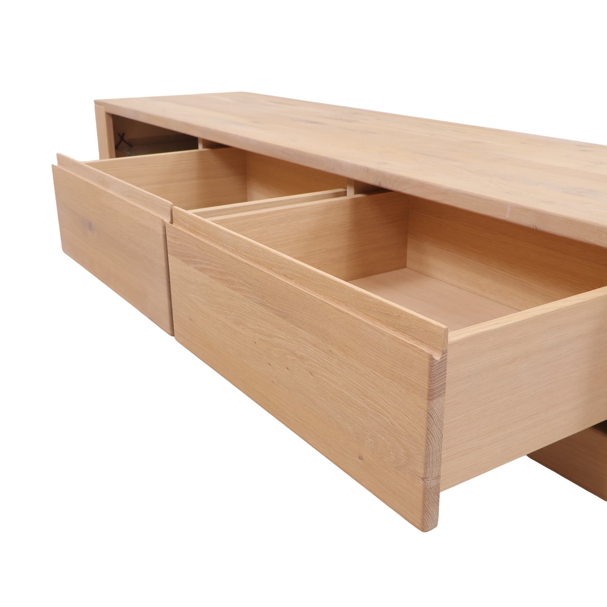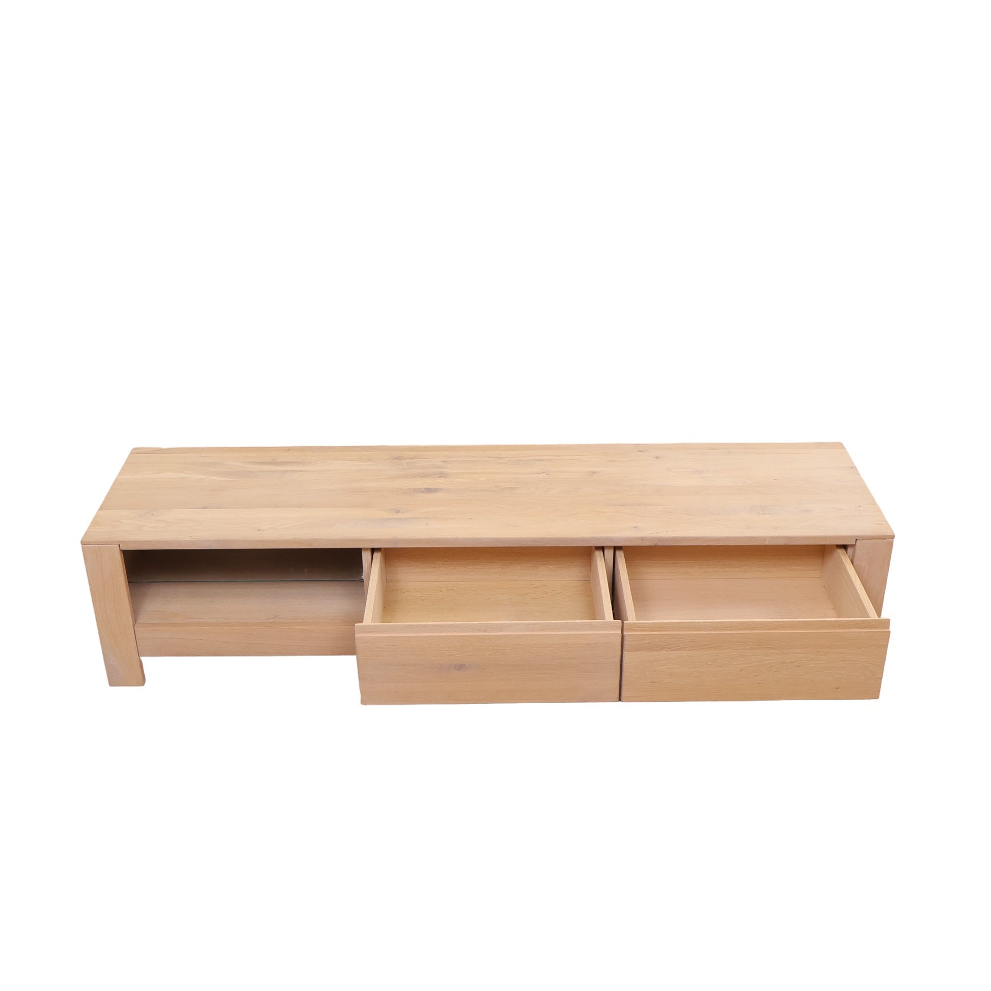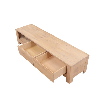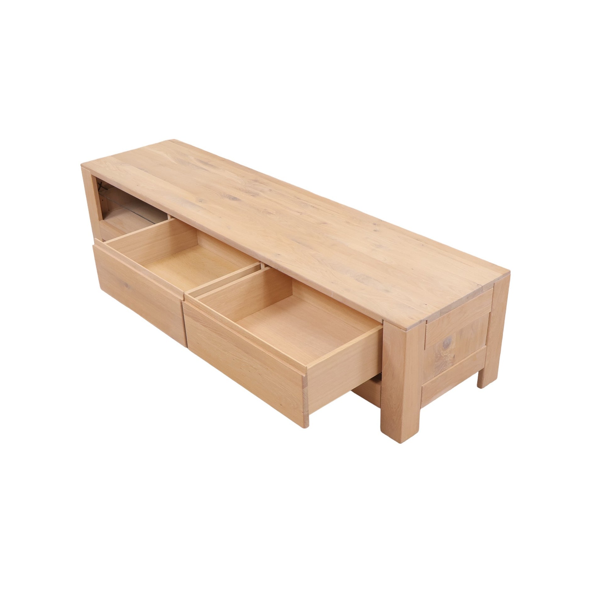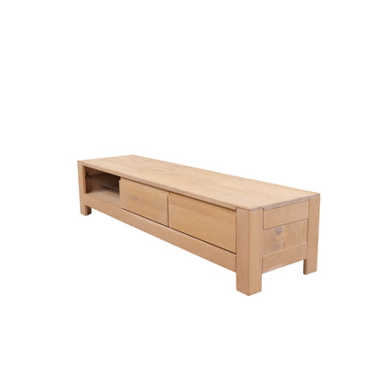 TV-benk i lyst treverk med to stk skuffer og åpen hylle