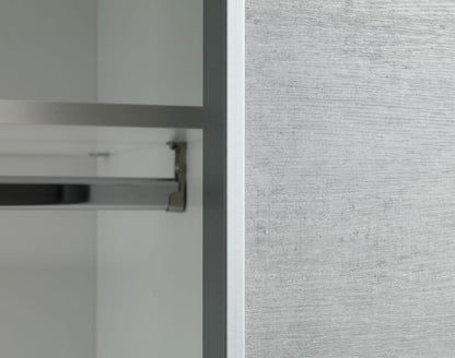 Uåpnet og flatpakket | Tarp garderobeskap i betong/hvit. 151x201