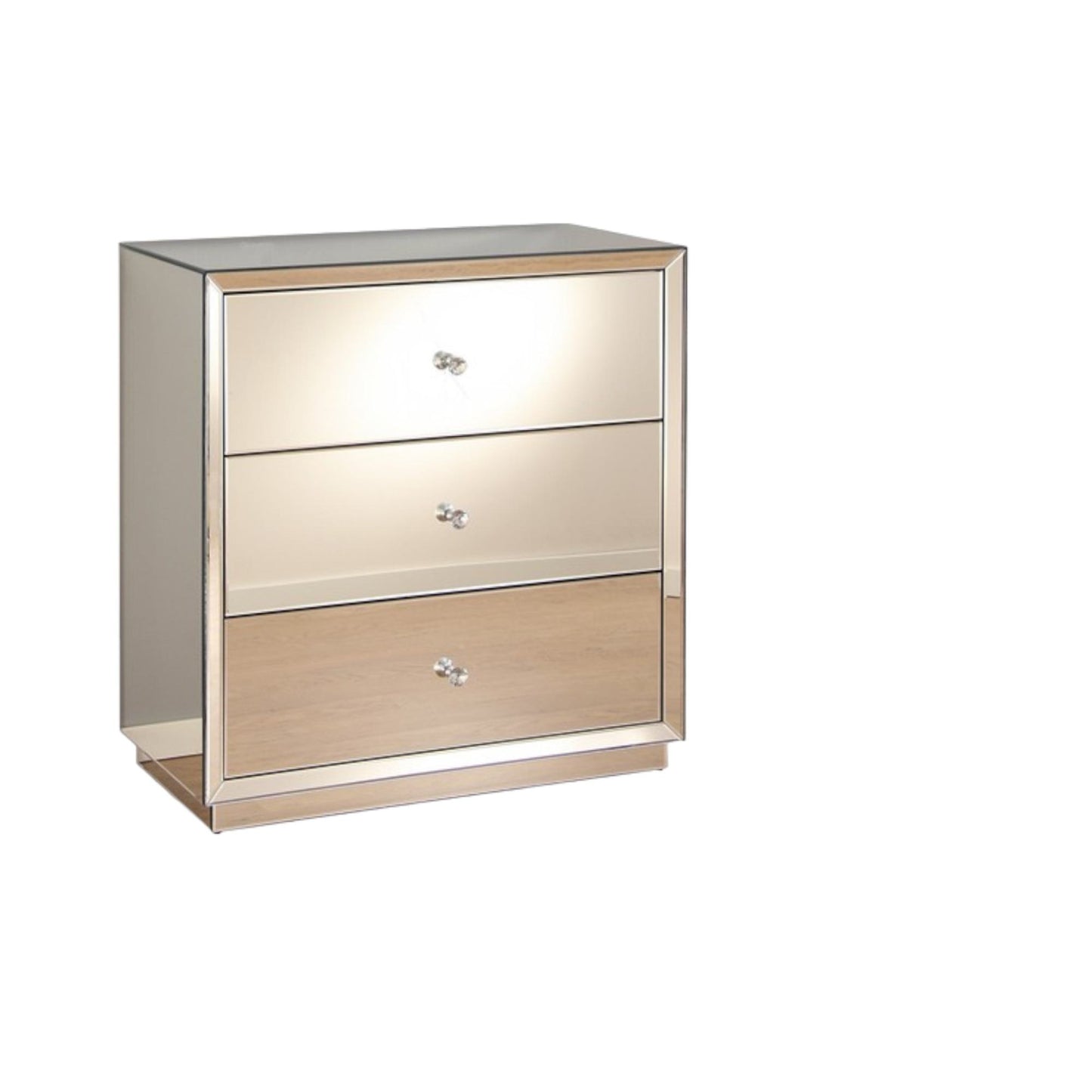 Kommoden har tre romslige skuffer med elegante krystallknotter, som gir rikelig med oppbevaringsplass. Den leveres flatpakket, klar for montering. Rask levering tilgjengelig.