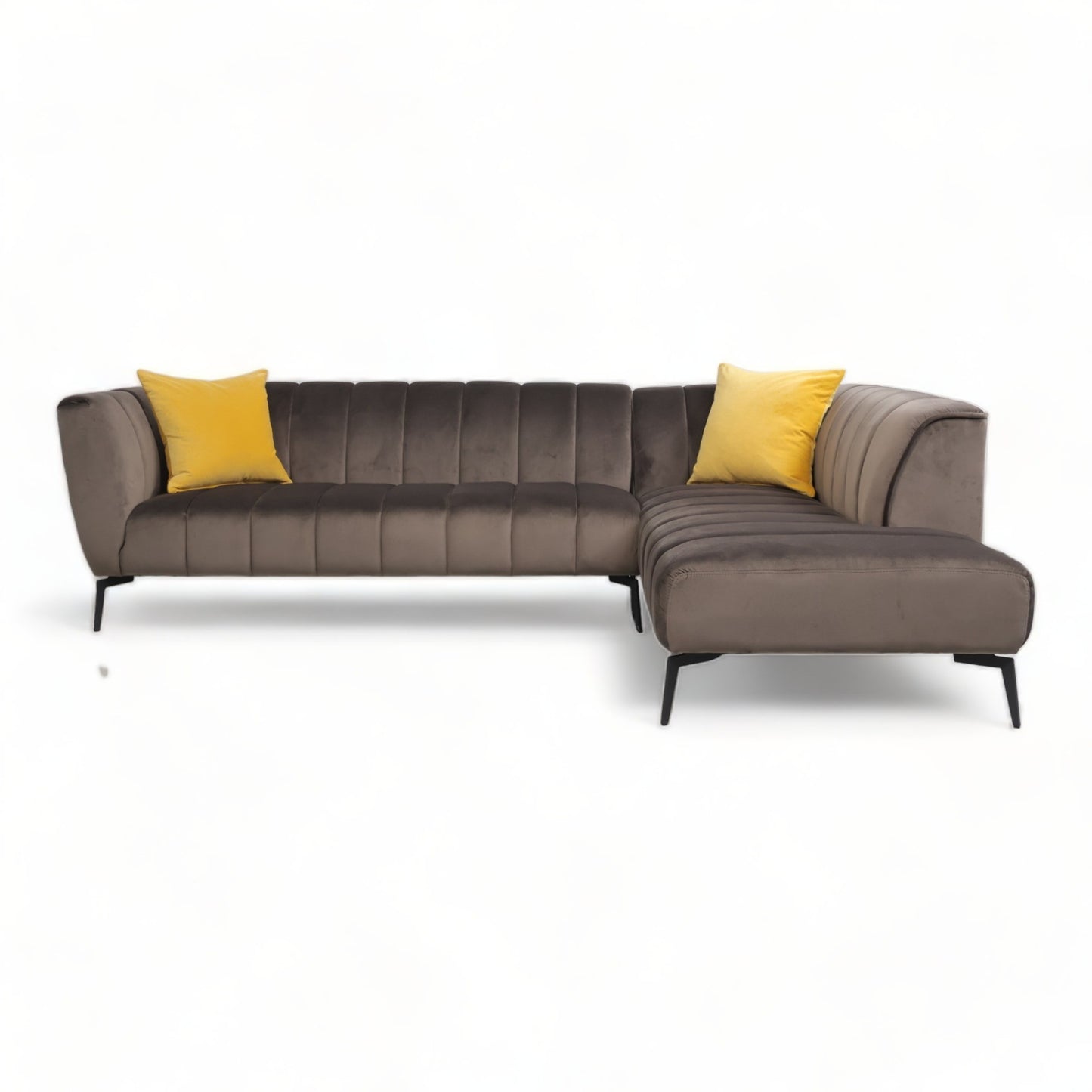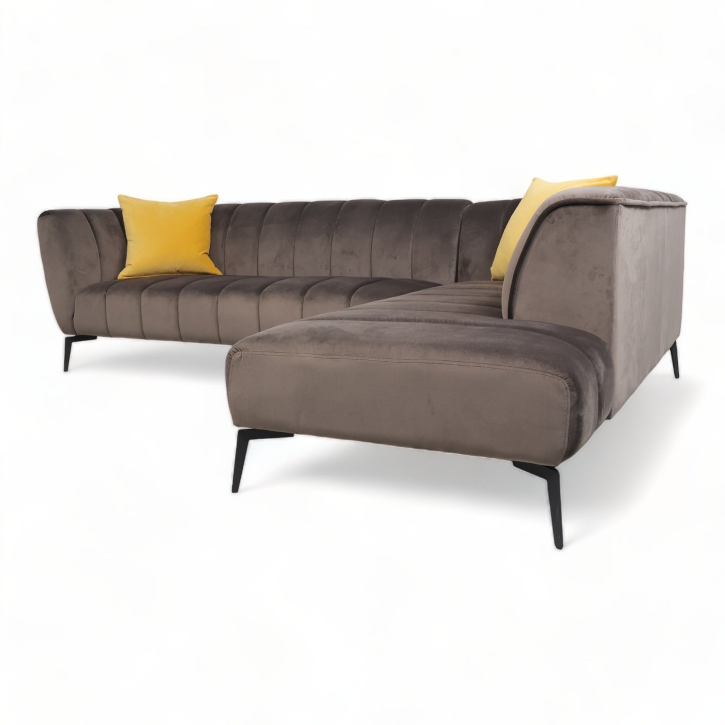 Ubrukt | Grå/brun hjørnesofa med åpen ende