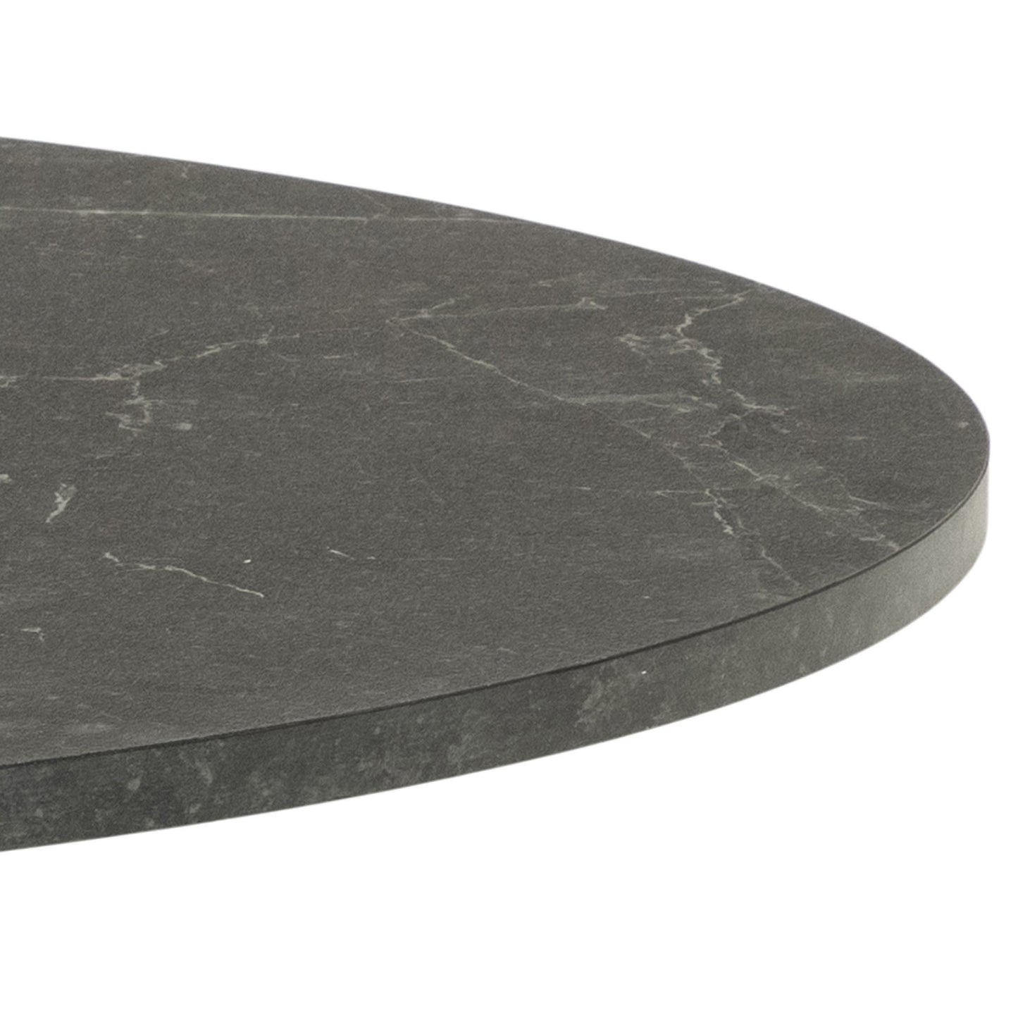 Ibiza har ingen skarpe hjørner eller kanter, da bordet har runde former, både på bordplate og understell.