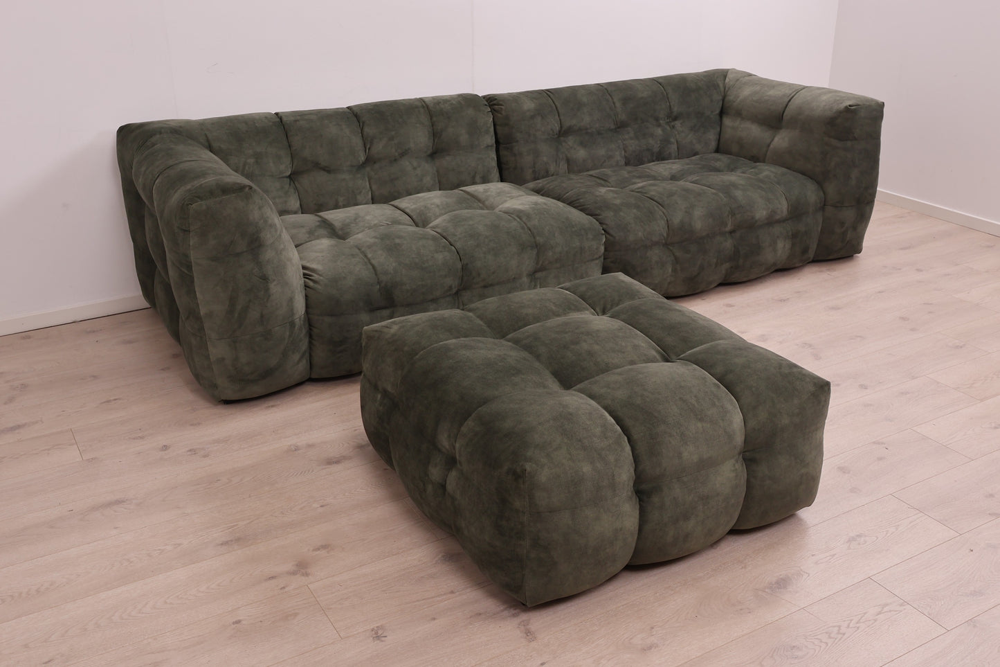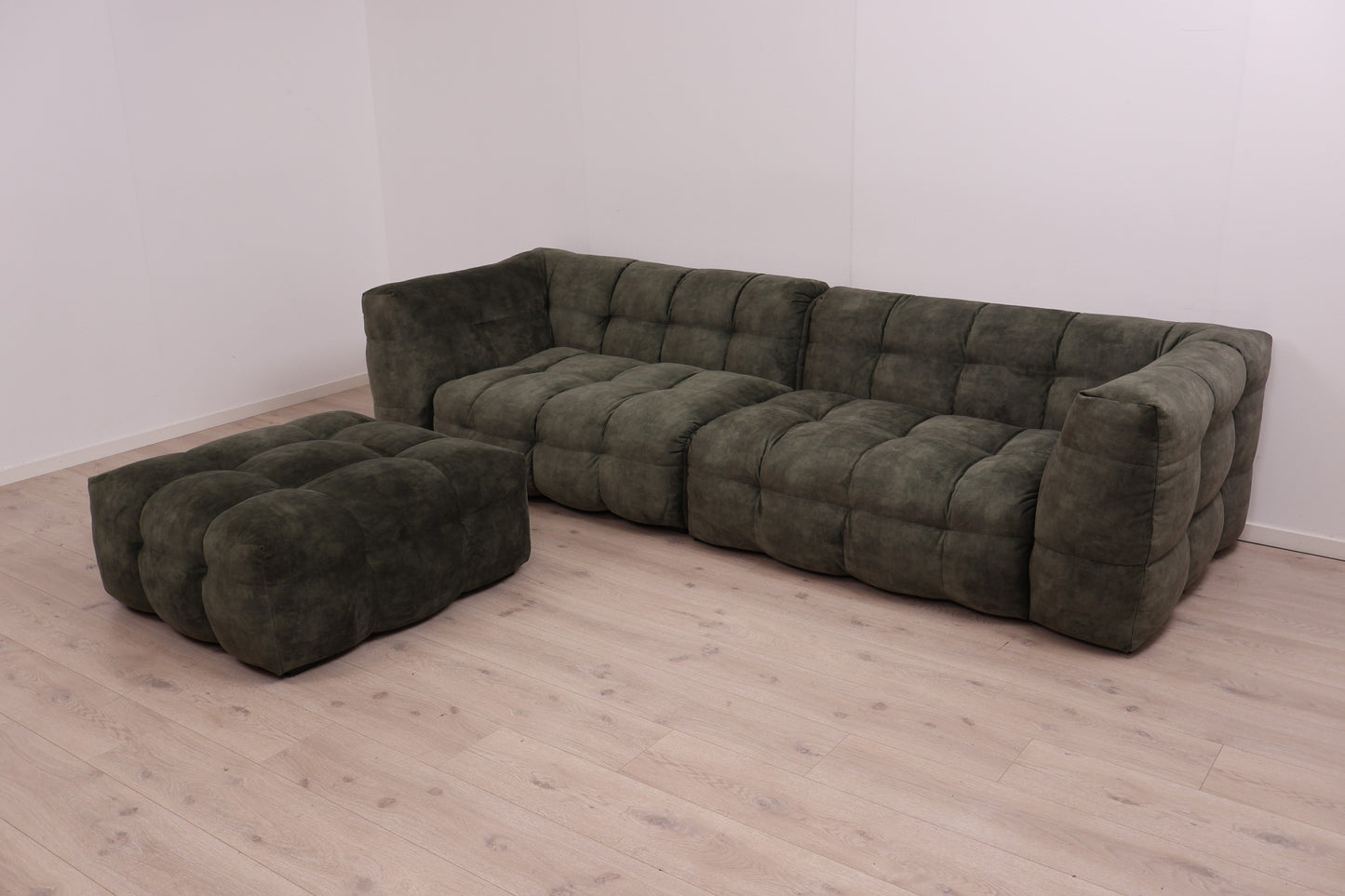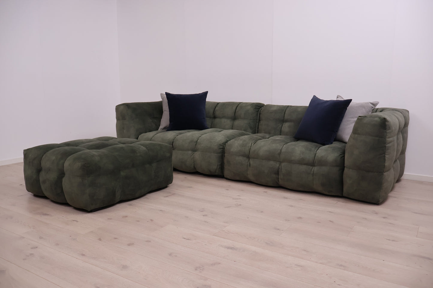 Ubrukt | Mørk grønn Michelin 4-seter sofa med puff i velur