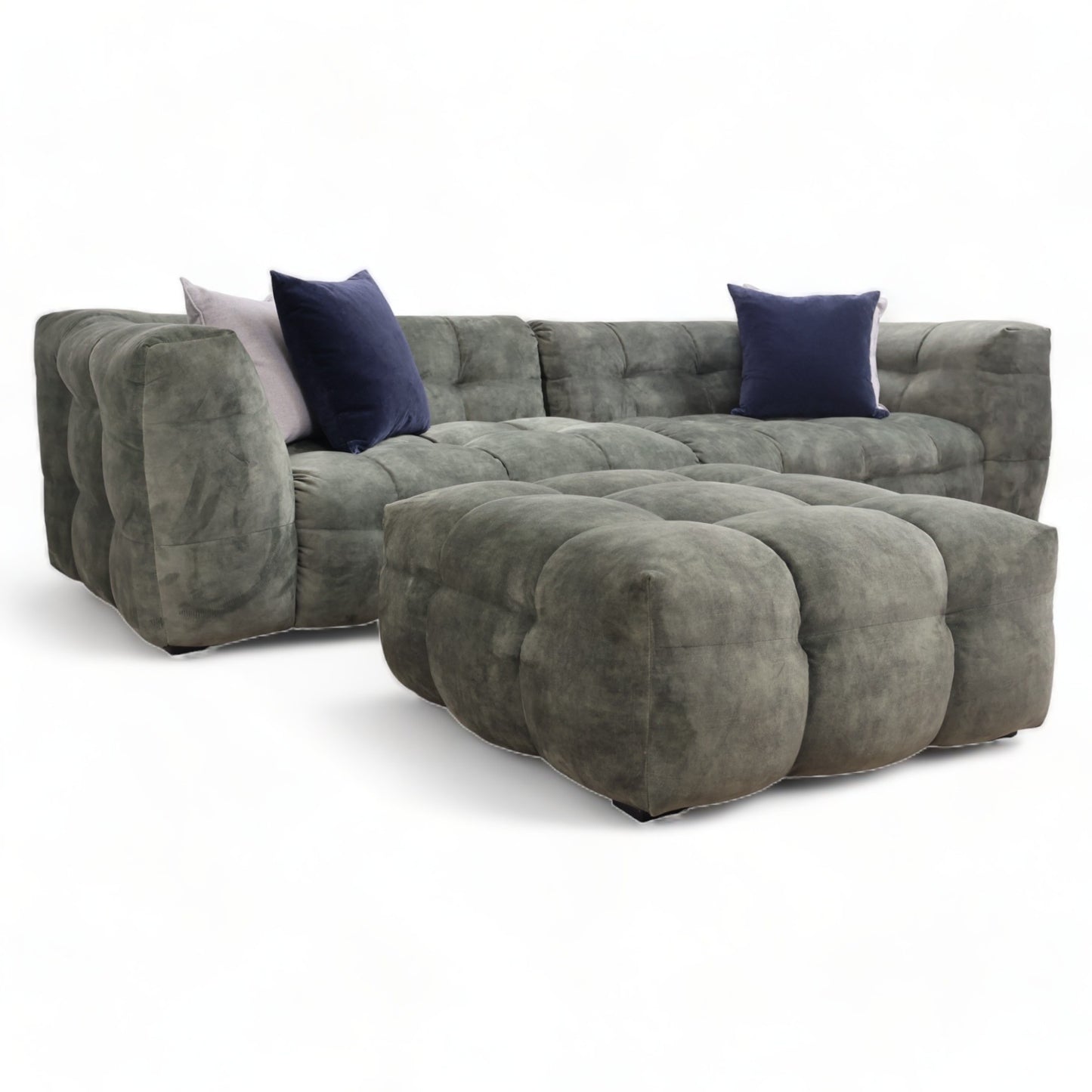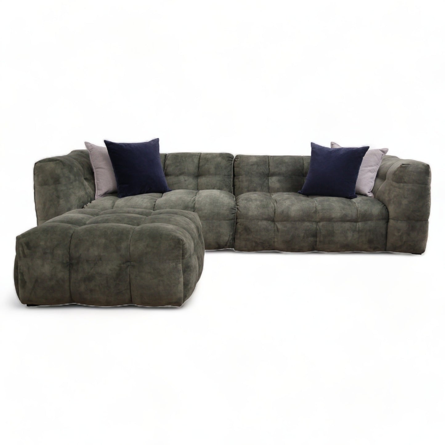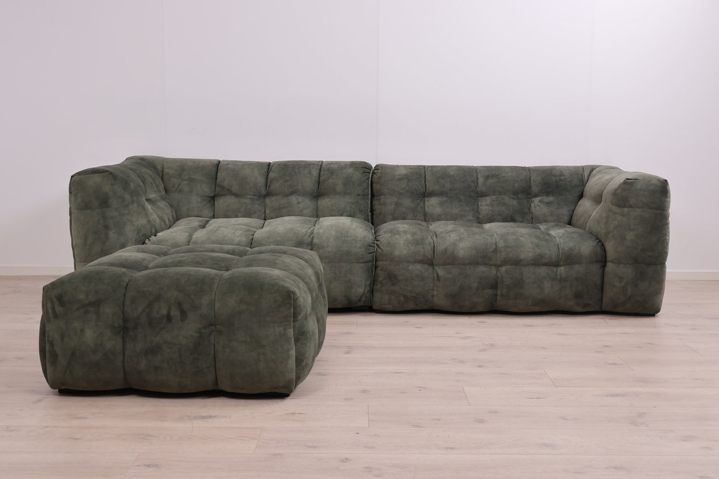 Ubrukt | Mørk grønn Michelin 4-seter sofa med puff i velur