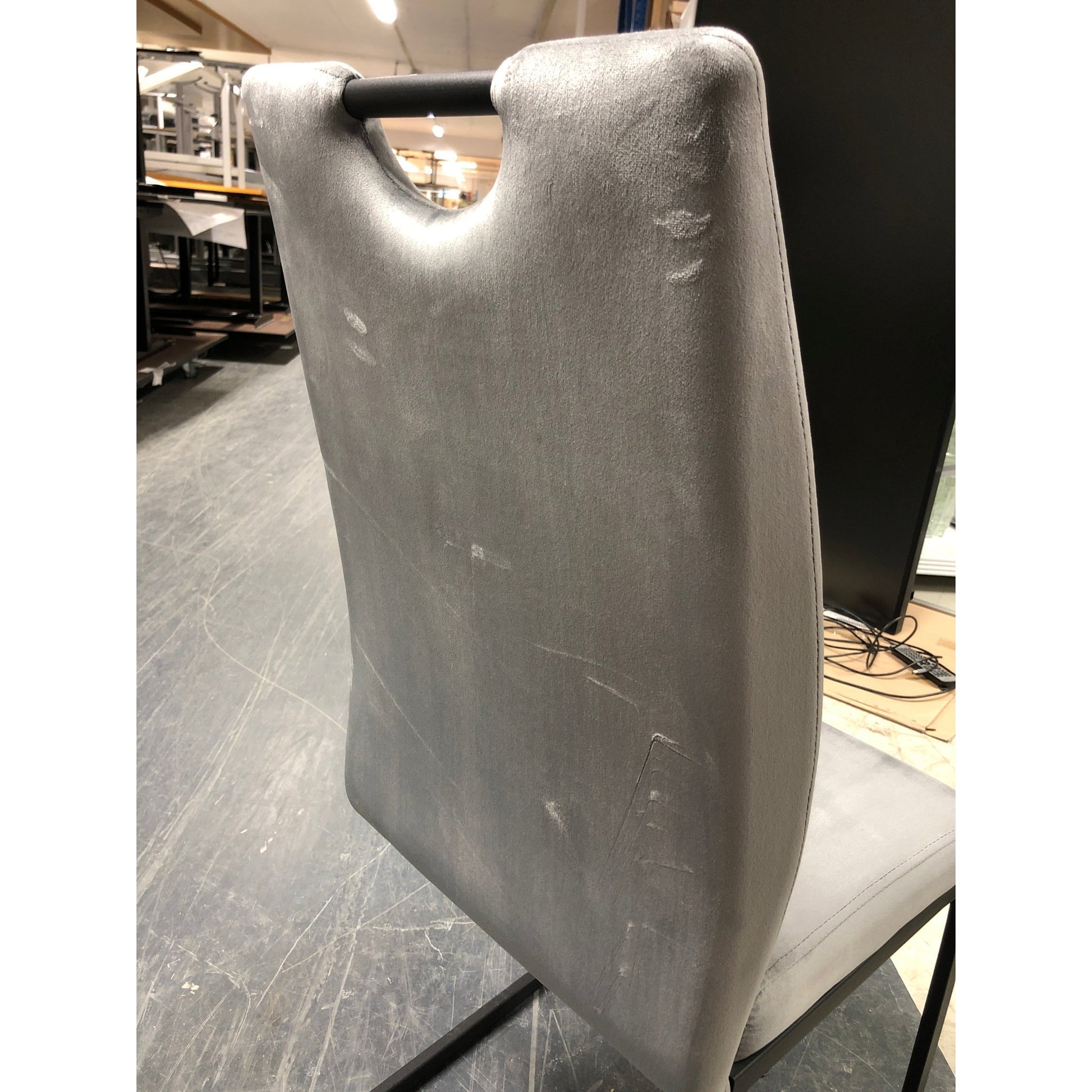 Spisestol med grått velurtrekk og svart metallunderstell. Stolens unike design med en lysere grå tone gir et moderne uttrykk, mens den avrundede ryggen med håndtak øker både stil og funksjonalitet. Sitteflaten er godt polstret for komfort.Ulla spisestolen passer utmerket til både spisebord hjemme og i sosiale soner på arbeidsplassen, med sin elegante og slanke silhuett.