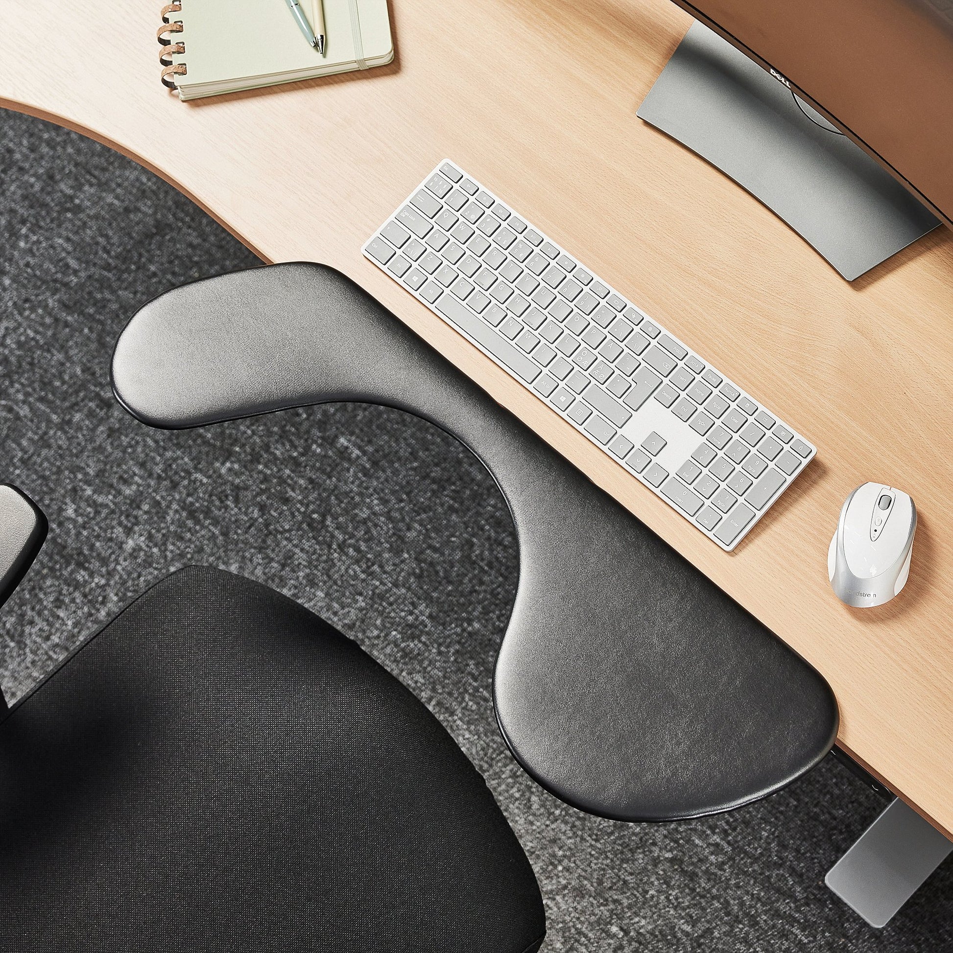 Underarmsstøtte til skrivebord fra AJ Produkter gir myk og jevn avlastning for arm og håndledd. Det ultratynne designet gjør den ideell for lave tastaturer uten å kompromittere komfort. Det fleksible festet tilpasser seg enkelt ulike bordtyper, noe som gjør støtten meget anvendelig i enhver kontor- innstilling.
