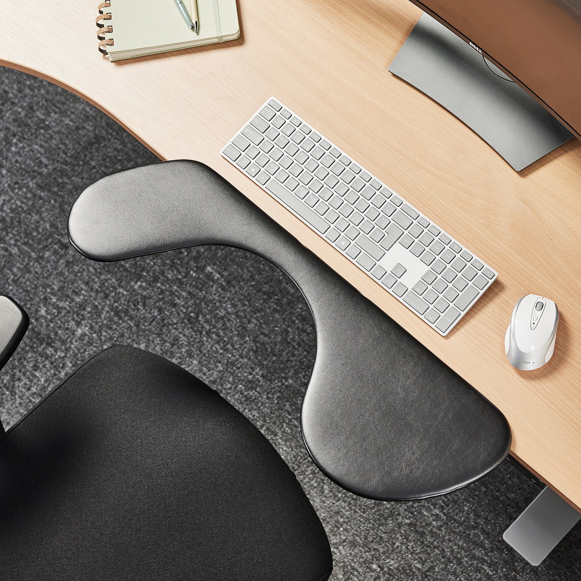 Nyskapende underarmstøtte med myk og jevn avlastning for både arm og håndledd. Det ultratynne designet gjør den egnet selv for lave tastaturer – uten å miste fjæring og komfort. Fleksibelt feste gjør støtten veldig tilpasningsdyktig.