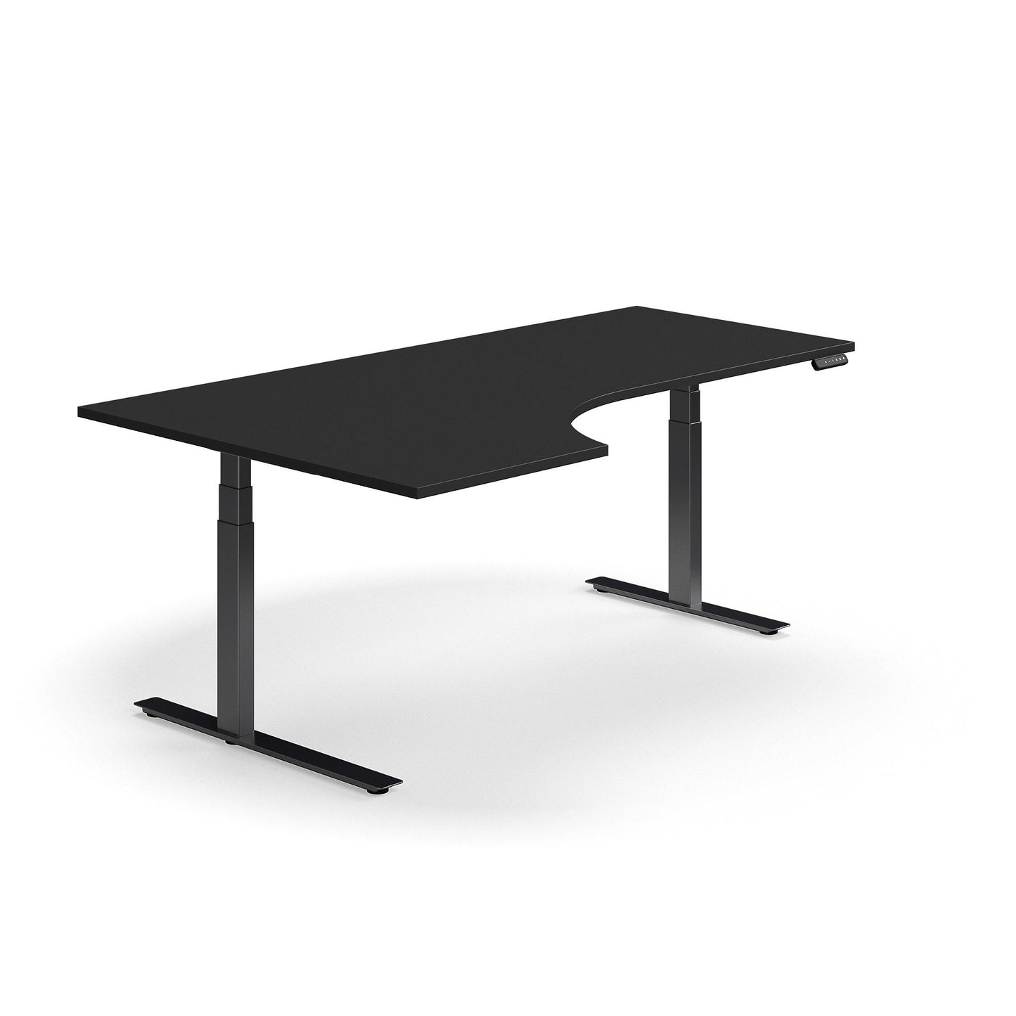 Utmerket tilstand | Hjørneskrivebord QBUS, hev/senk, L2000 B1200 mm, svart, svart