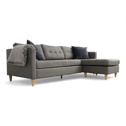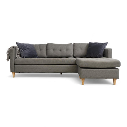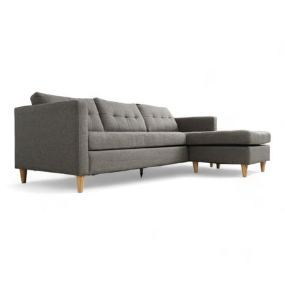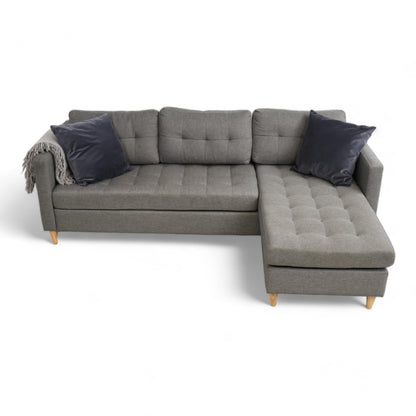Utmerket tilstand | Jysk Falslev sjeselongsofa i mørk grå