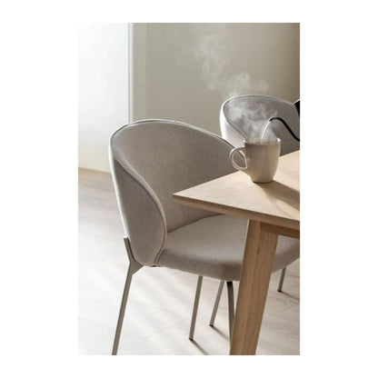 Nora spisebordet fra Kid har en slank og moderne skandinavisk stil, designet med avrundede kanter og en bordplate i eikefiner, støttet av ben i heltre eik. Denne utformingen gir et minimalistisk, men eksklusivt preg på ethvert spisestueinnredning.