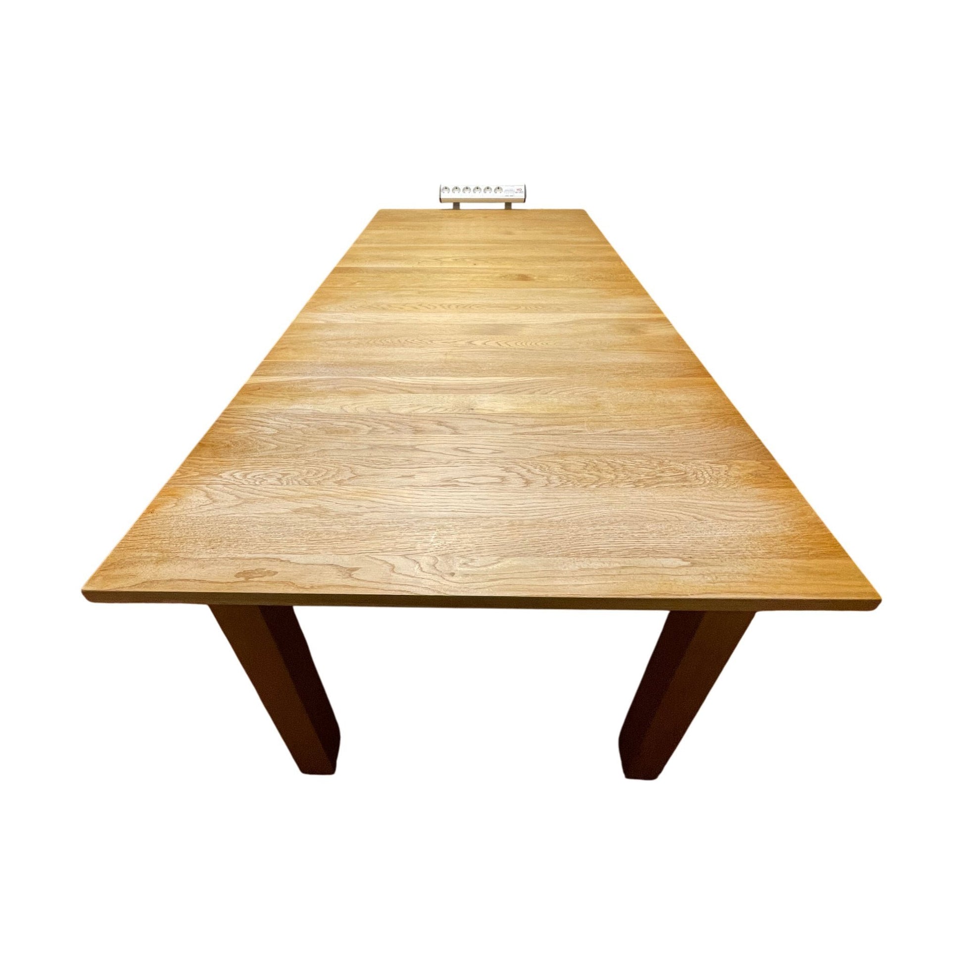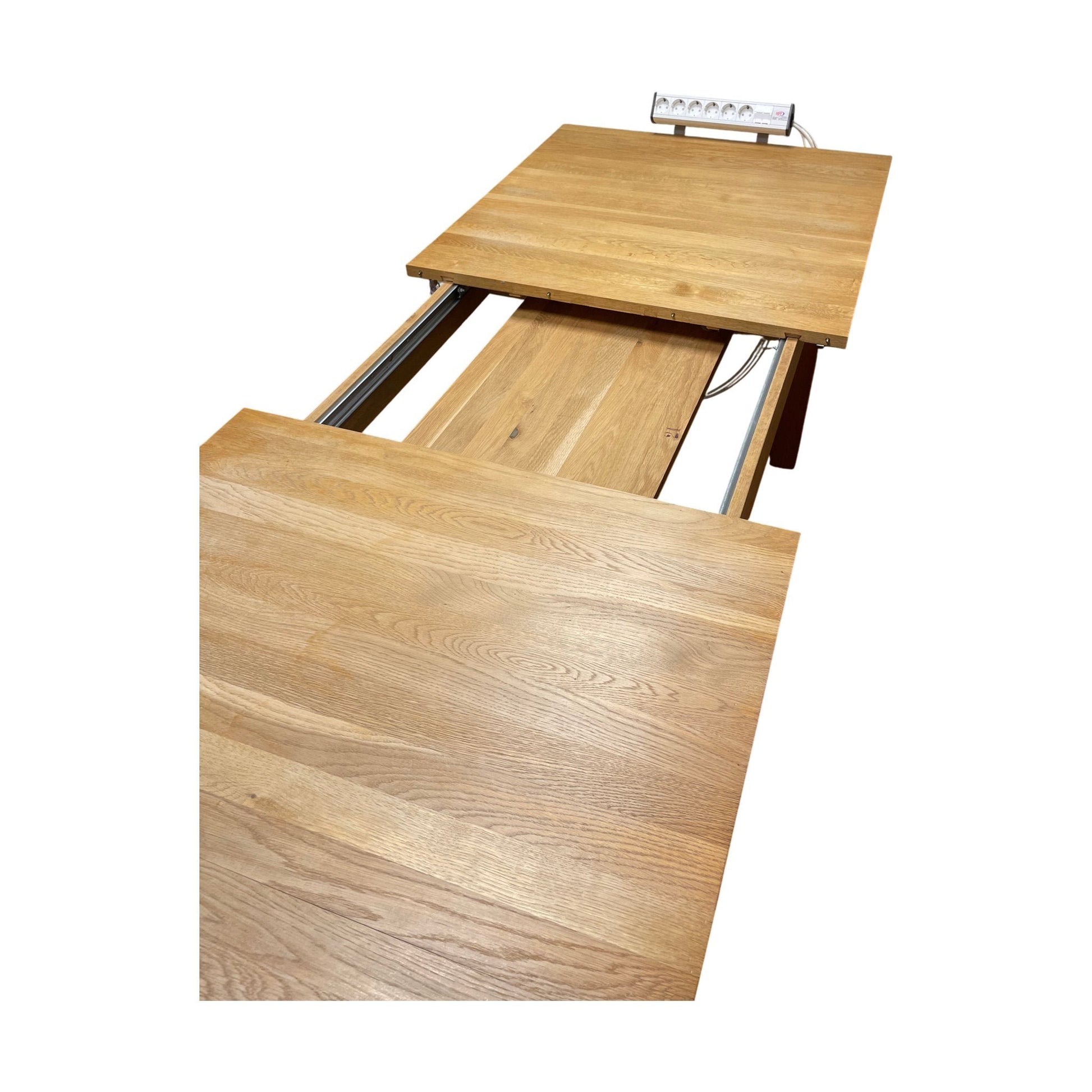 Solid utrekkbart møtebord med en slitesterk tre bordplate og et robust understell. Bordet kommer med en illeggsplate som forlenger bordet med 45 cm, hvilket gjør det ideelt for ulike møtesituasjoner. Den naturlige trefargen og den glatte overflaten gir et stilrent preg som passer godt inn i møterom, kontorer og kreative arbeidsmiljøer.Den romslige bordflaten på 180x90 cm gir god plass til flere deltakere og legger til rette for effektive møter.