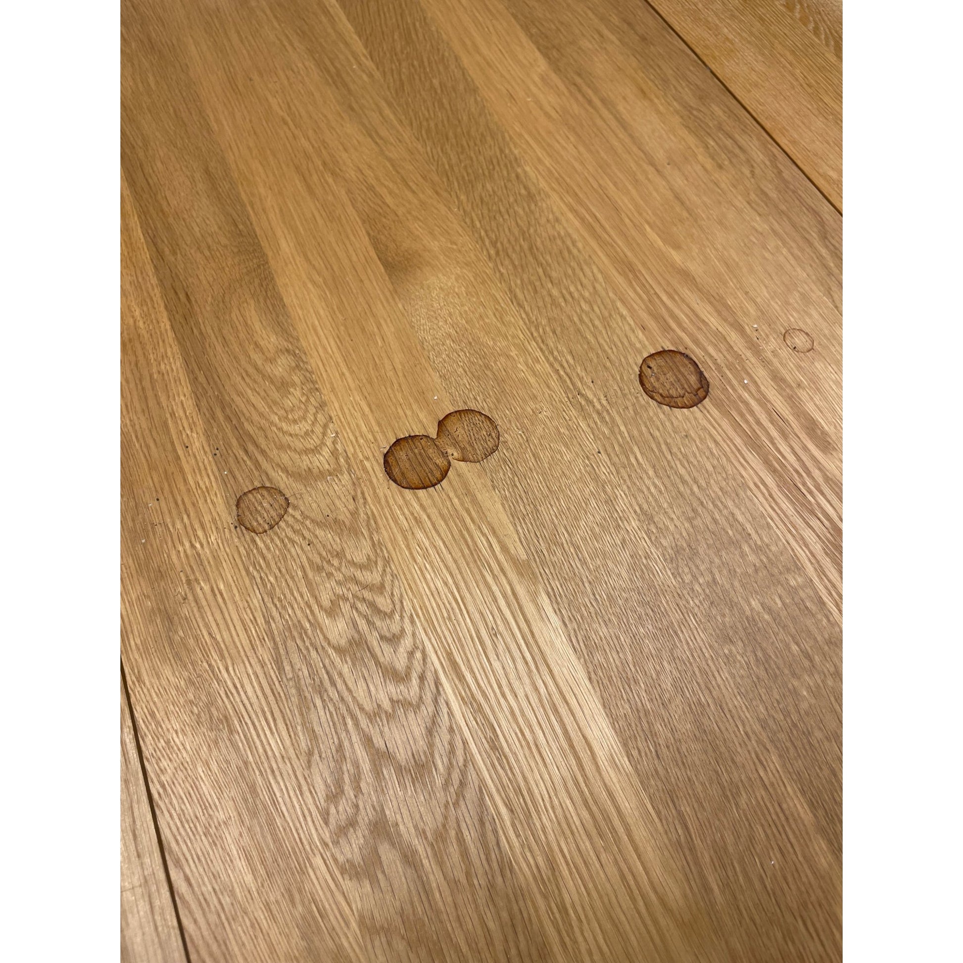 Bordet er i godt brukt stand, med noen normale bruksmerker som ikke går utover funksjonaliteten. Helhetsinntrykket er fortsatt godt, og bordet er fullt funksjonelt til møte- og kontorbruk.