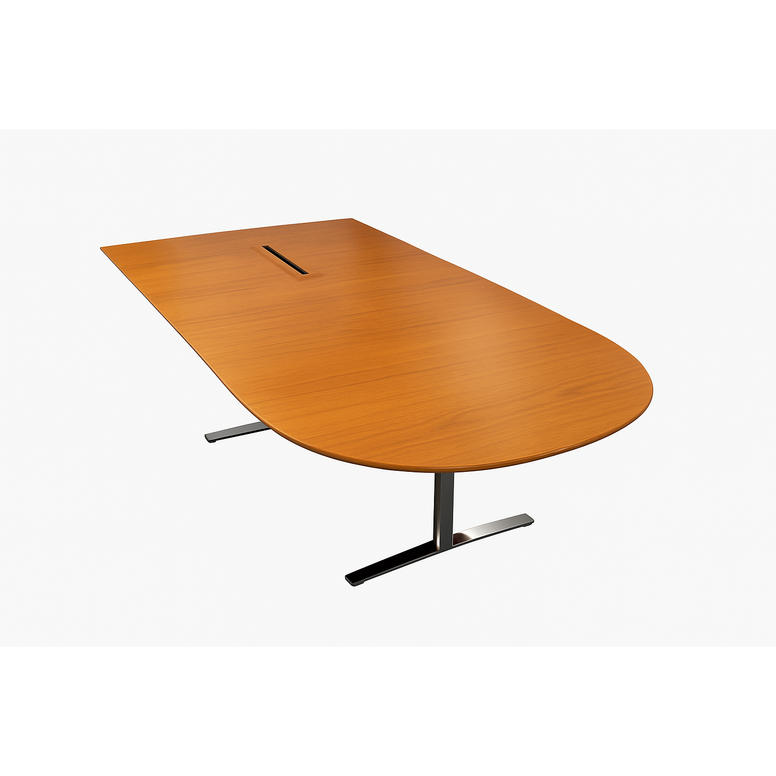 Solid veggrettet videomøtebord med en delikat bordplate i oljet eik og et stilrent understell. Den elegante, runde formen på bordplaten gir et moderne uttrykk, og kabelbrønnen sikrer enkel tilgang til strøm og data under møter. Bordet passer perfekt for møterom og kontorer, og skaper en profesjonell atmosfære.