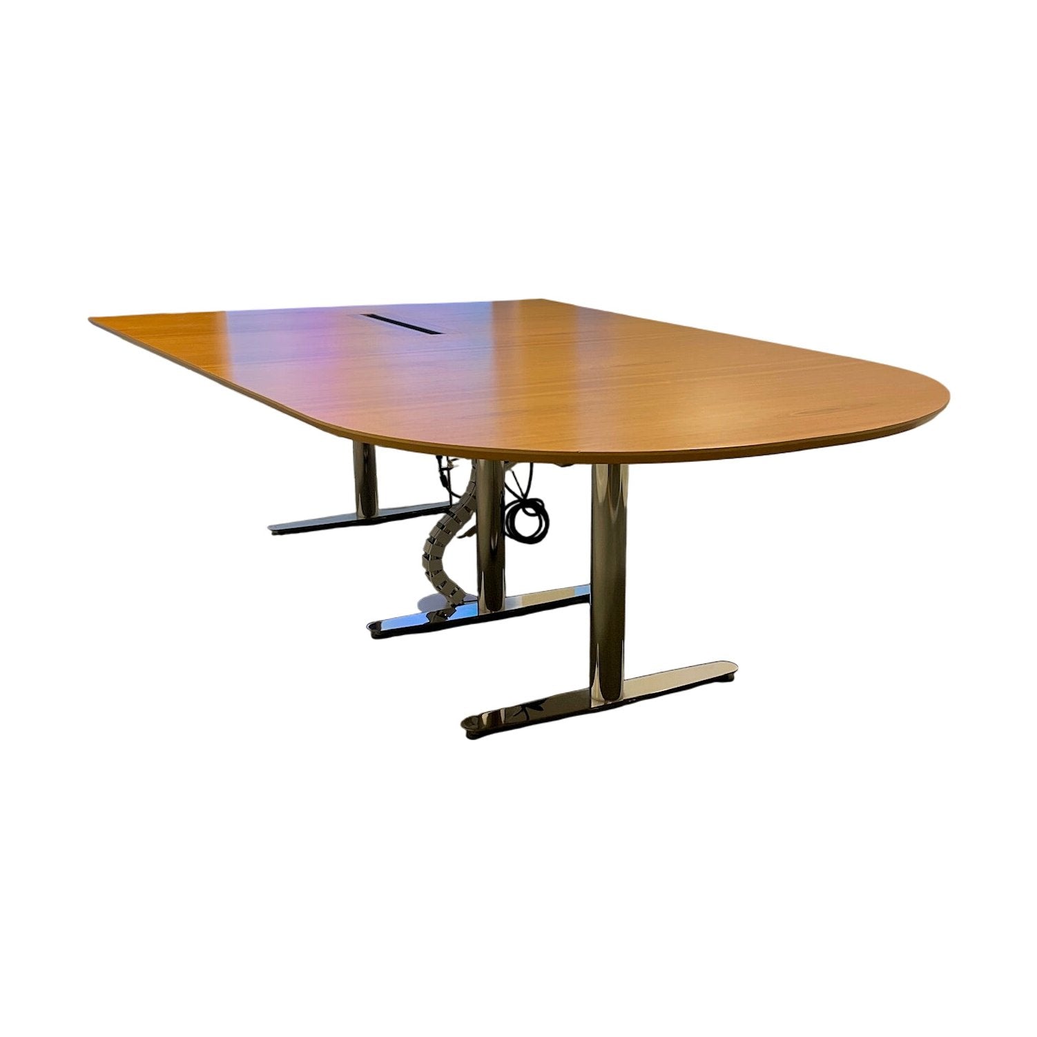 Bordet er i utmerket tilstand med minimale bruksmerker. Helhetsinntrykket er svært godt, og bordet er fullt funksjonelt til møte- og kontorbruk.