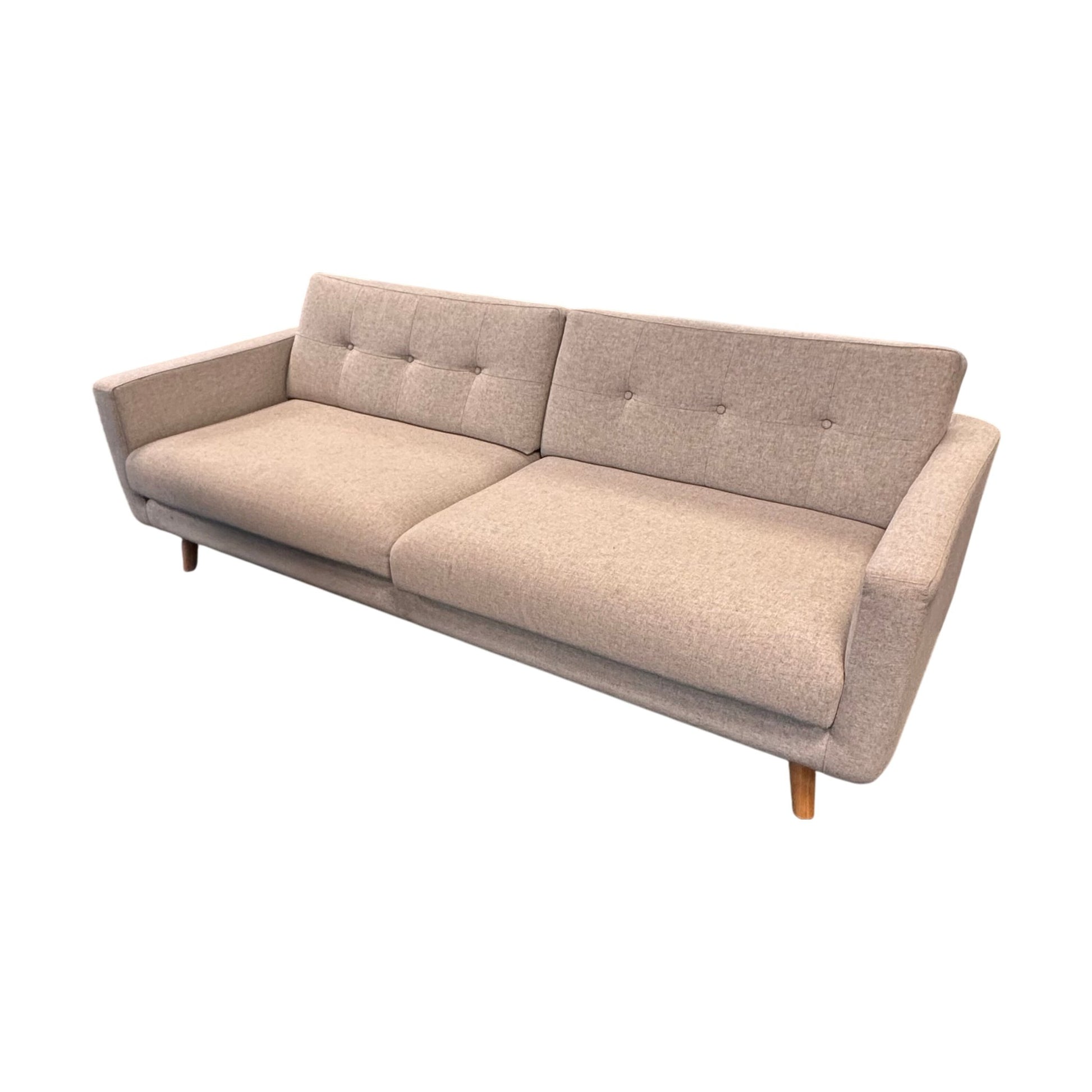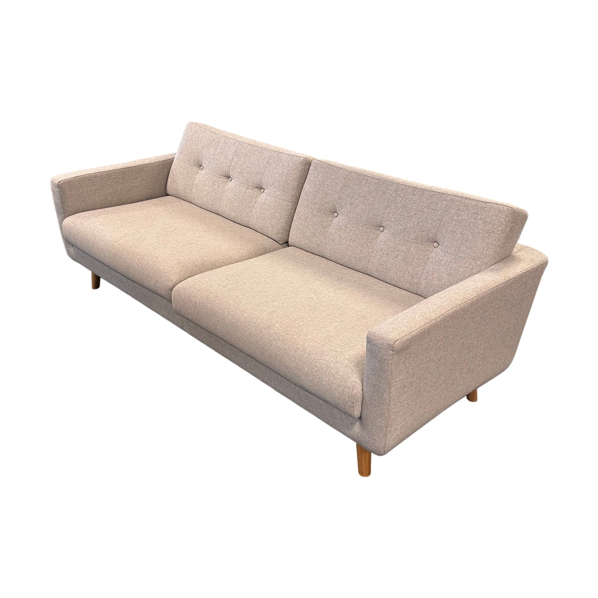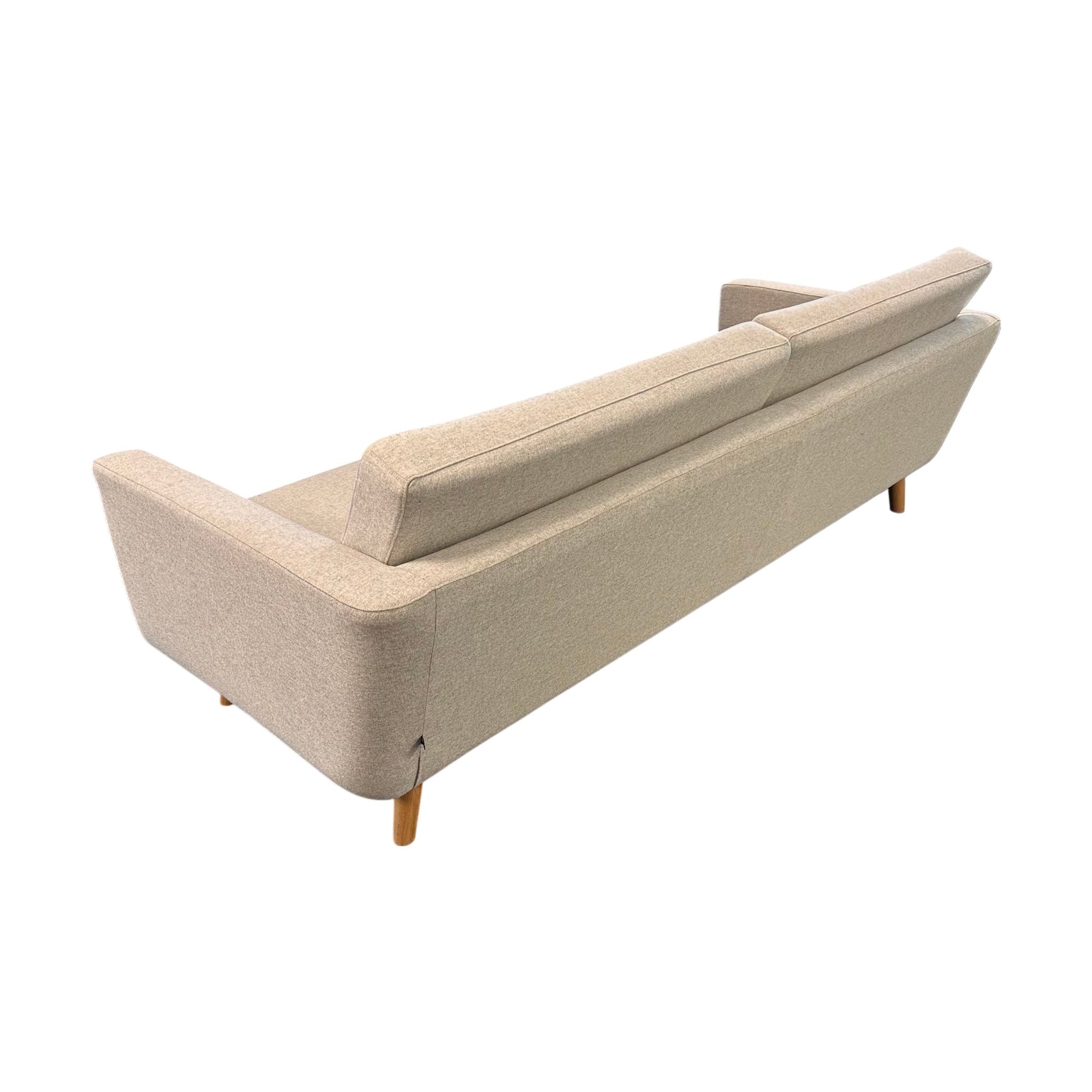 Sofaen er i god stand med minimale brukstegn. Stoffet er godt ivaretatt, og putene har bevart sin opprinnelige form. Rammen er solid, noe som sikrer langvarig komfort og bruk.