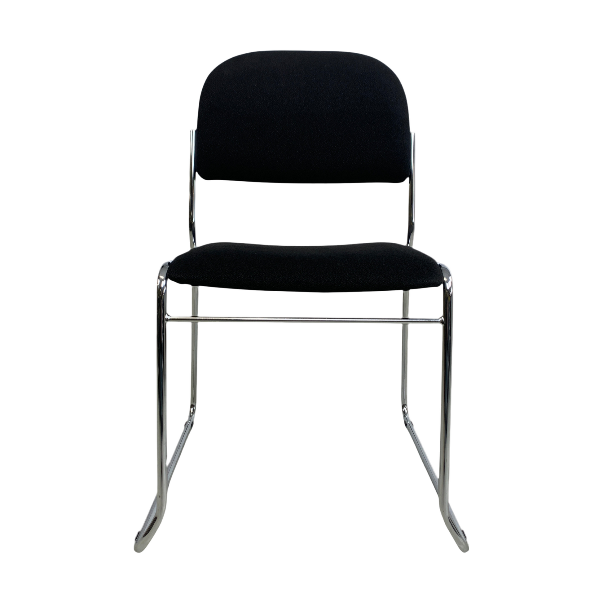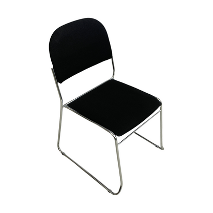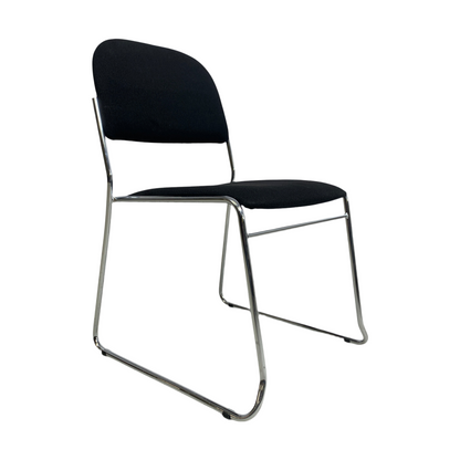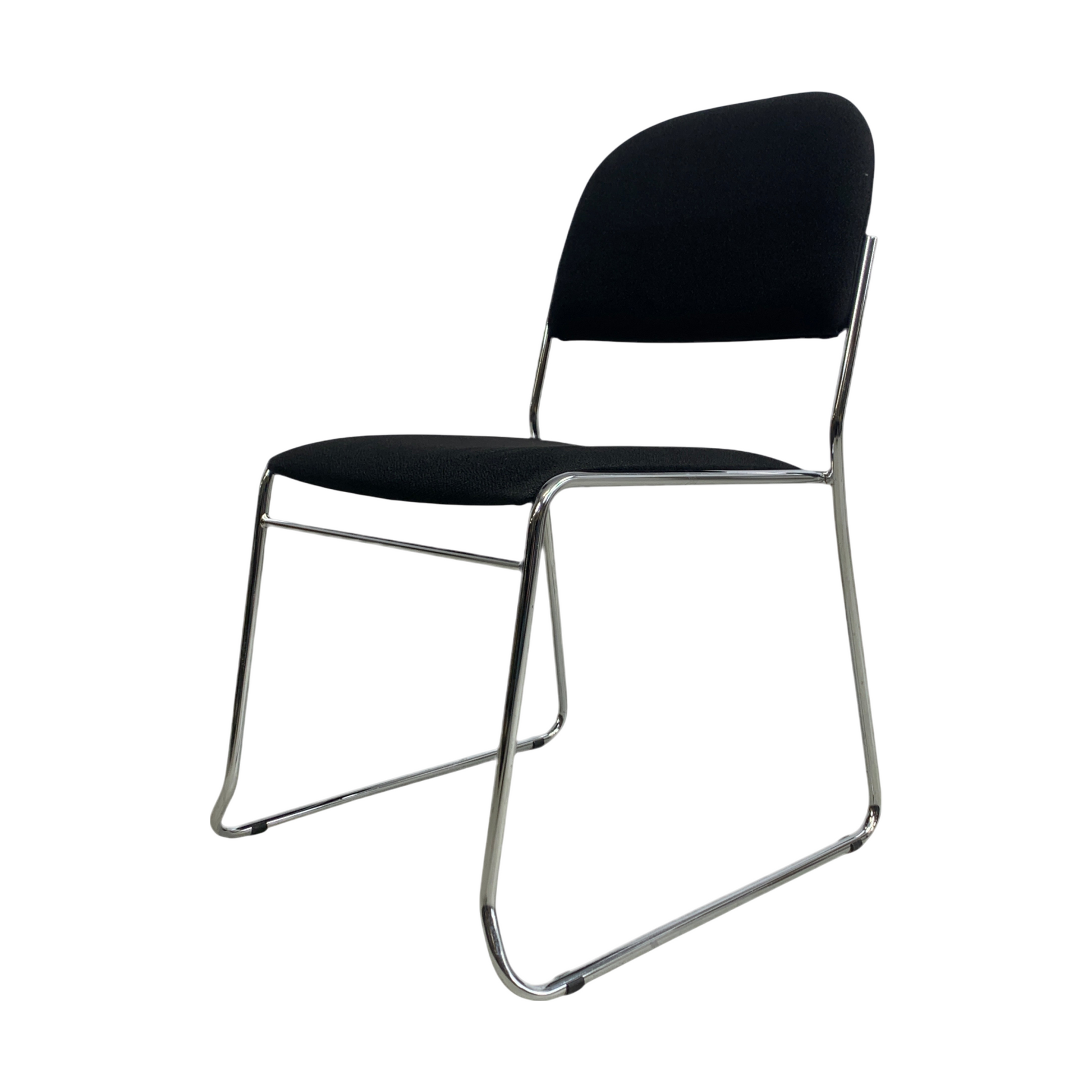 Moderne møteromsstol fra NowyStyl med et stilrent, minimalistisk design. Denne stolen har et polstret sete og rygg trukket i slitesterkt svart stoff, som gir god komfort, selv under lange møter. Den er laget med en solid ramme i krom, noe som gir et elegant og moderne utseende. Stolen er stablebar, noe som gjør den enkel å oppbevare og praktisk for fleksible møterom.