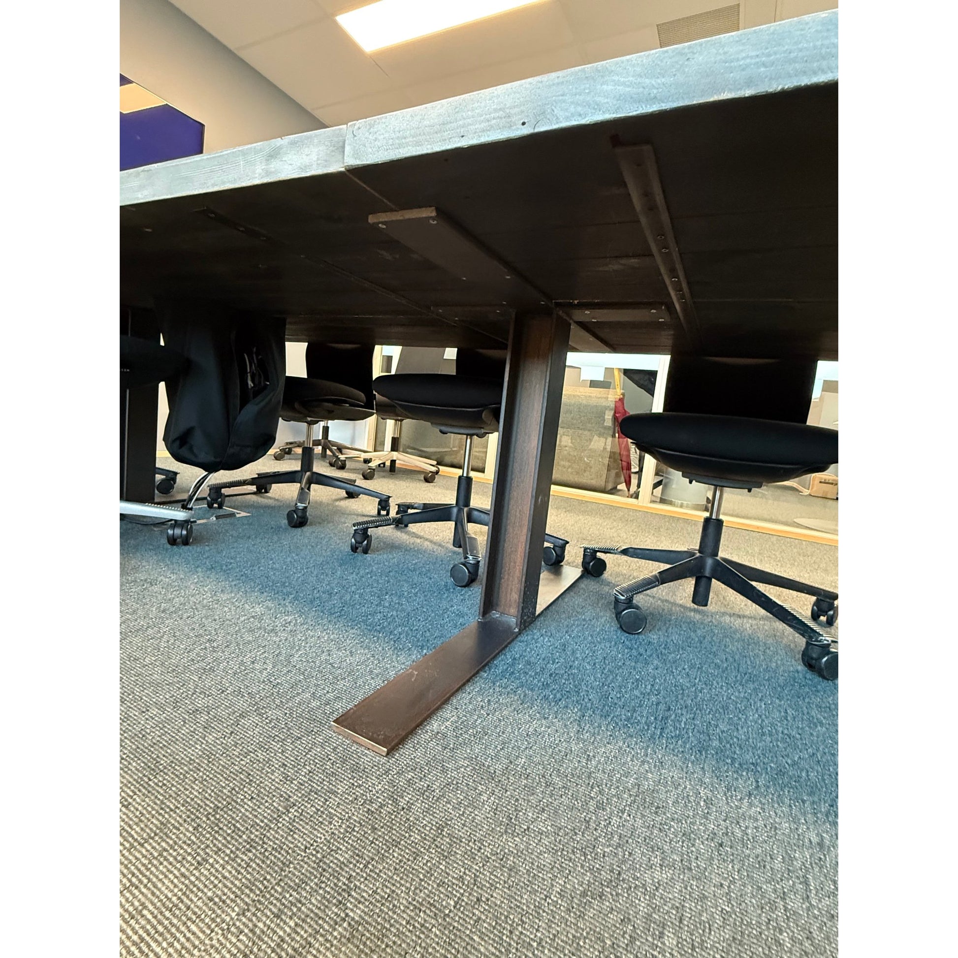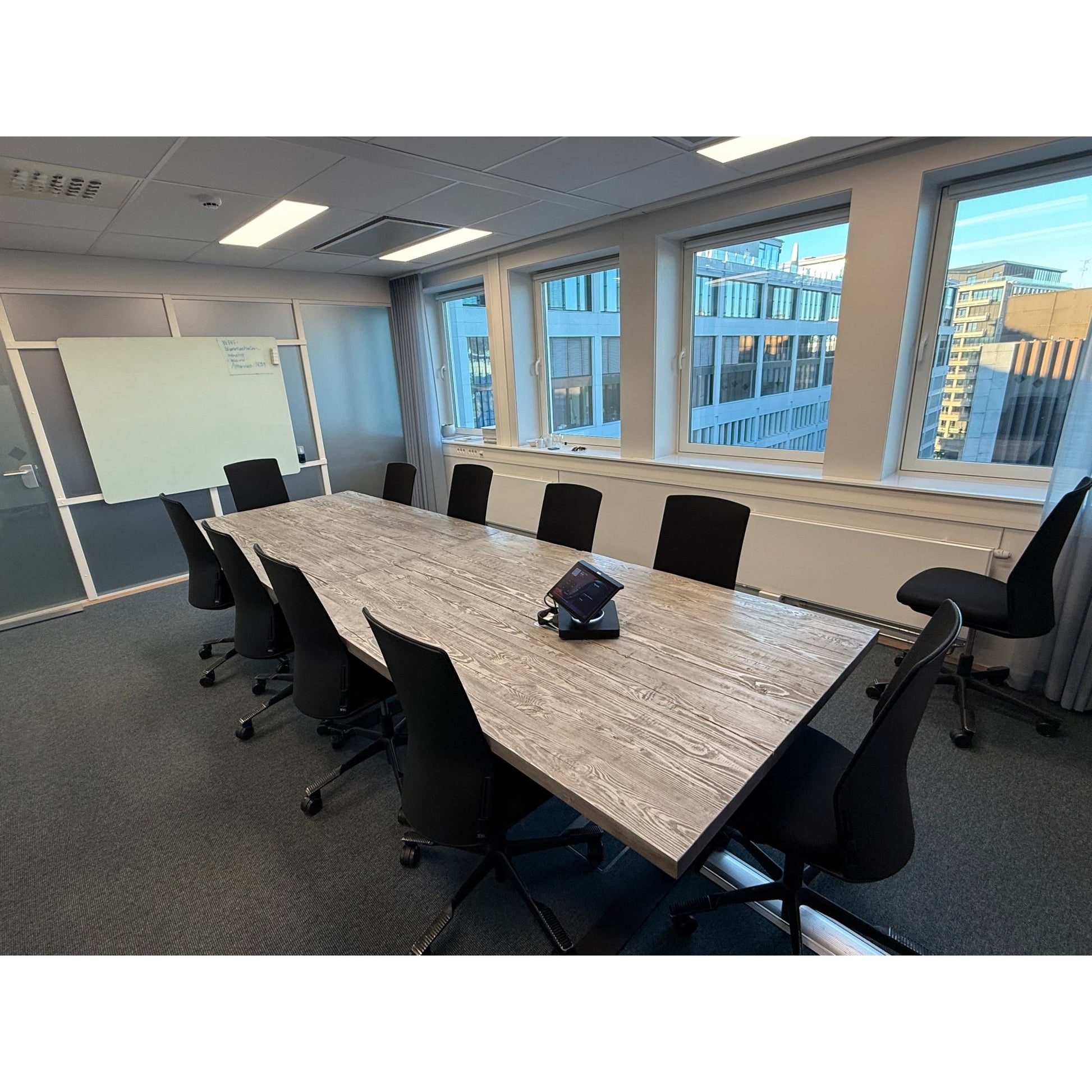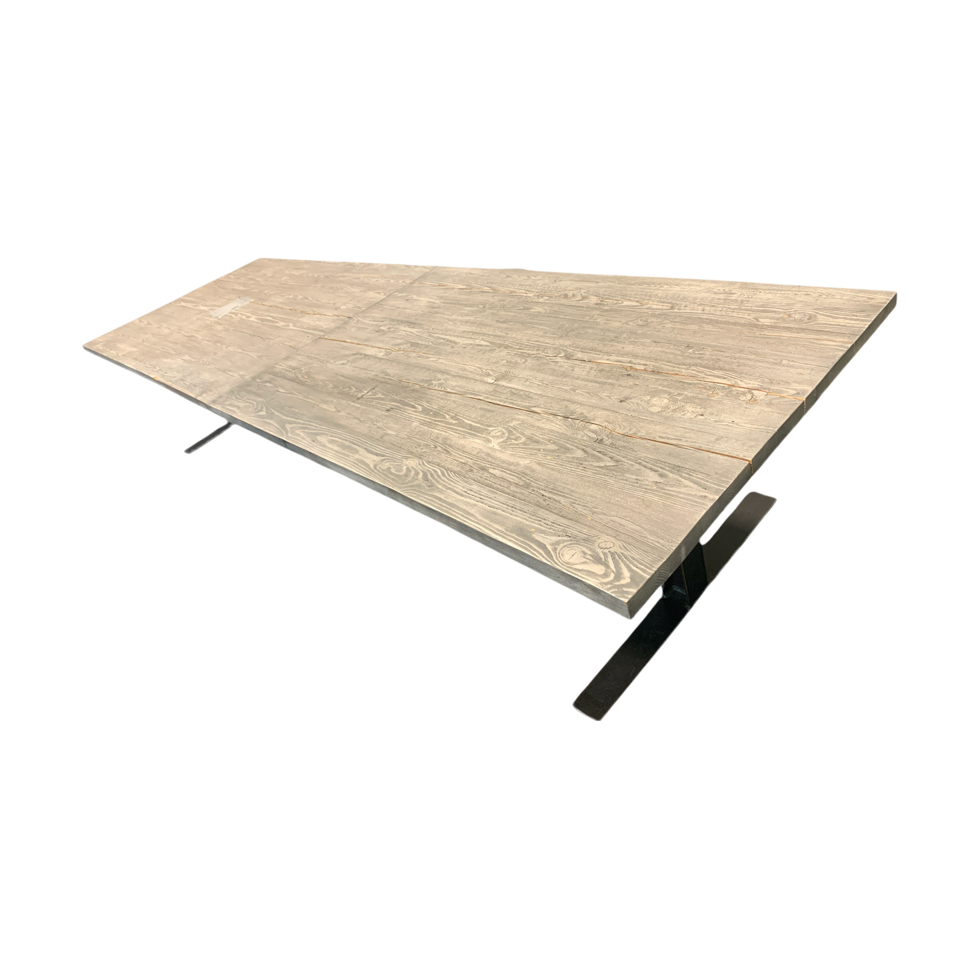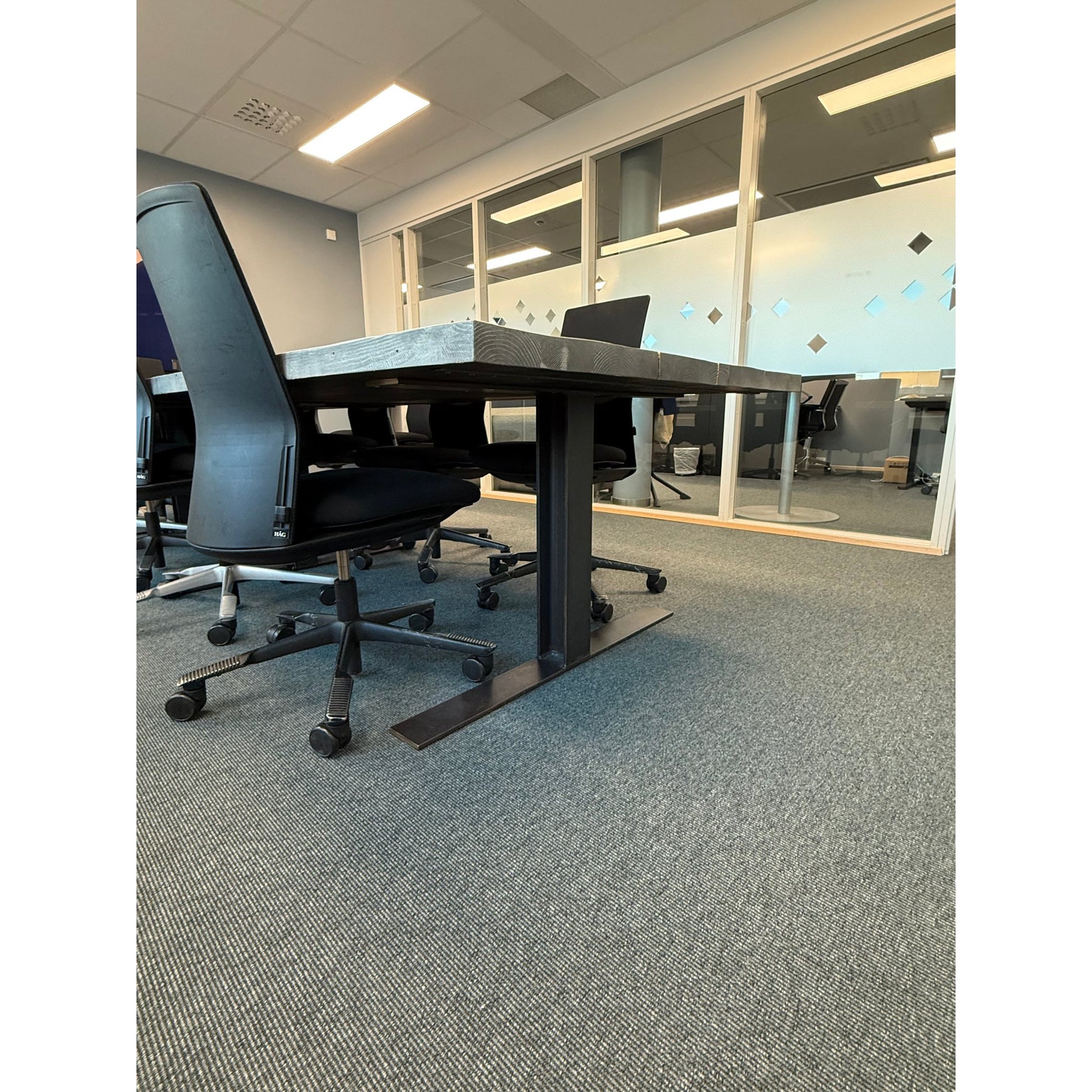 Stort vintage møtebord, ideelt for kontormiljøer eller kreative arbeidsplasser. Med sine generøse mål på 370x119cm, gir bordet rikelig med plass til møter, samarbeid eller arbeid med prosjekter. Bordet har en unik karakter med naturlige sprekker og småmerker som tilfører sjarm og historikk. Følger med er et praktisk kabelrom og en kurv for oppbevaring, som bidrar til en ryddig arbeidsplass. Stolene selges separert.