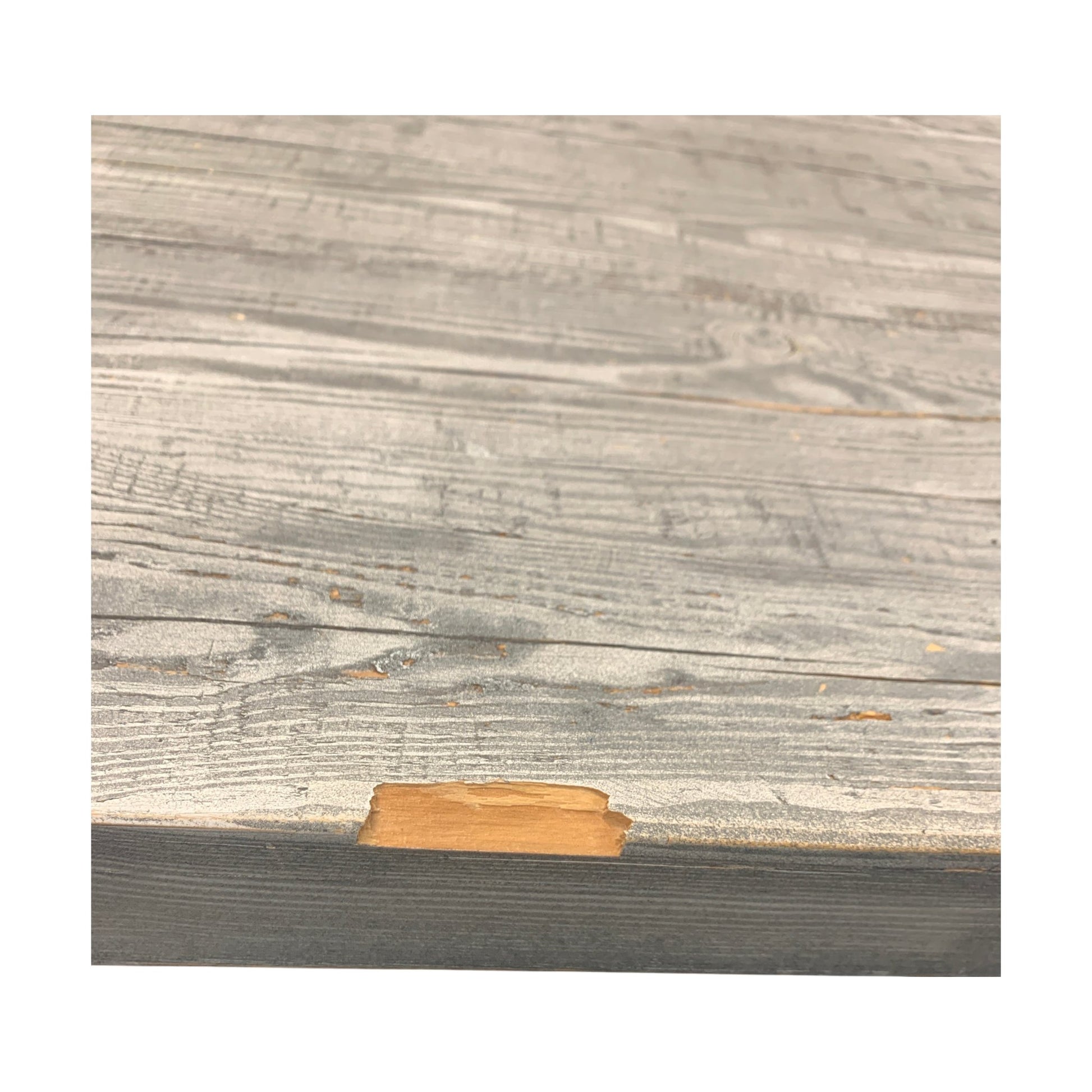 Bordet er i god stand, men har noen bruksmerker som er en del av dets vintage utseende. De naturlige sprekkene bidrar til den unike stilen, og det er kun ett lite uintensjonelt merke som ikke påvirker bordets funksjonalitet.
