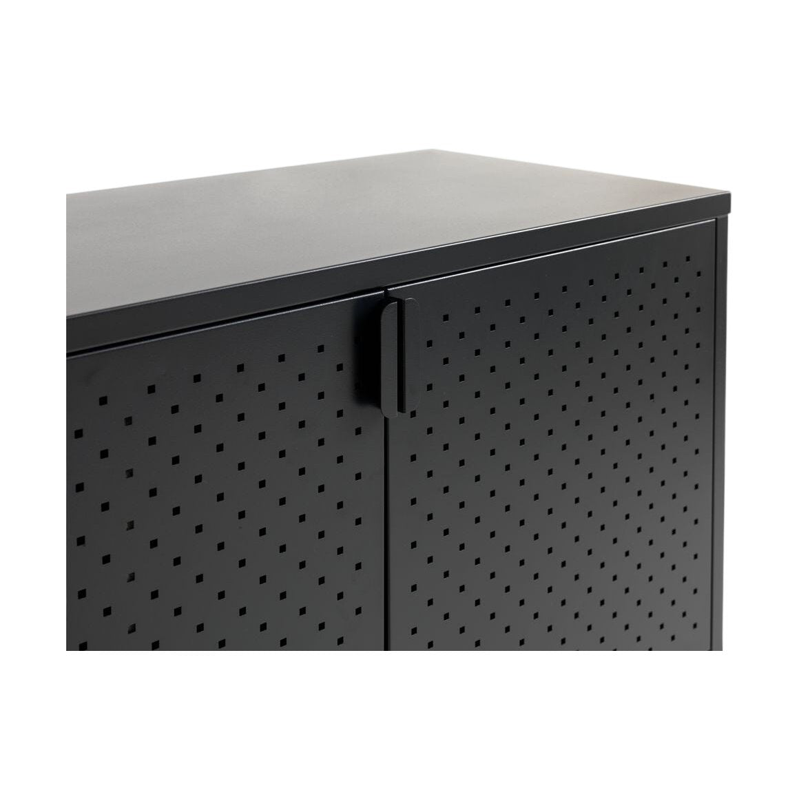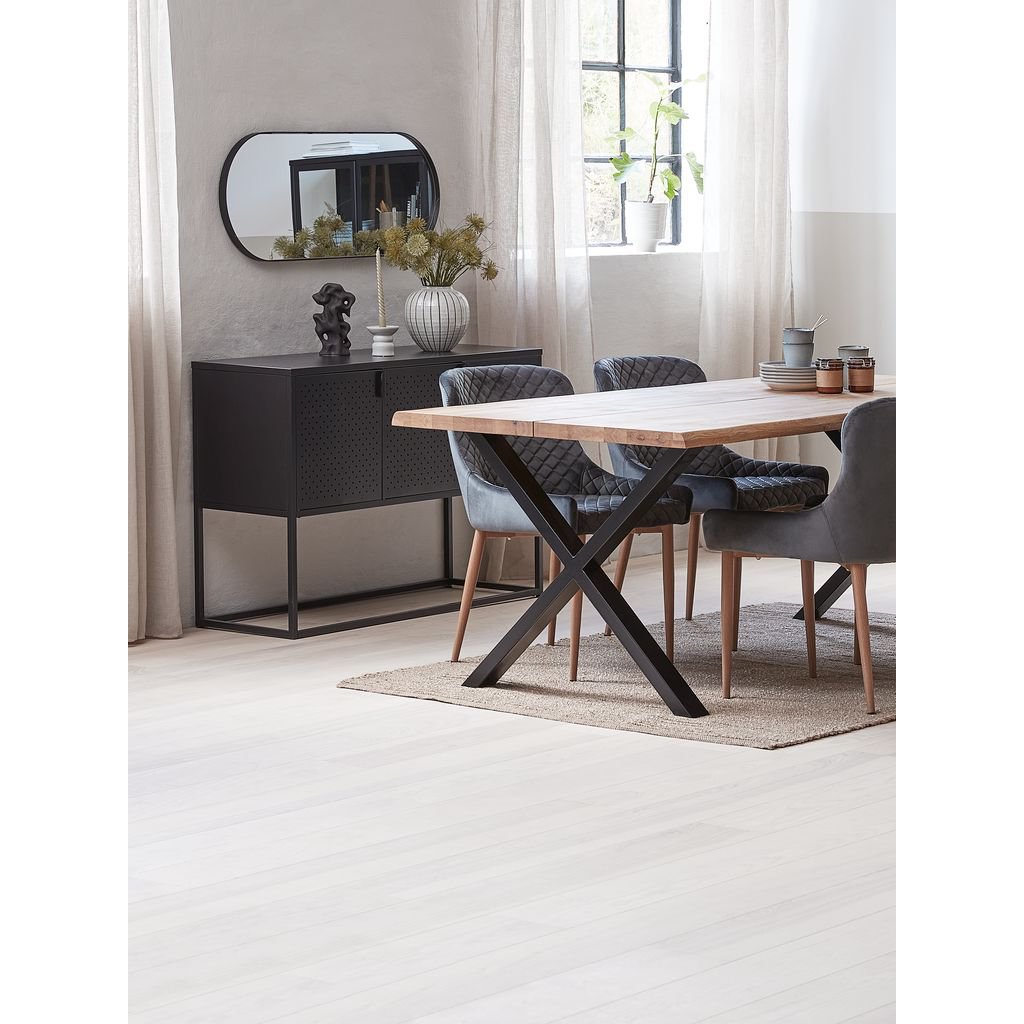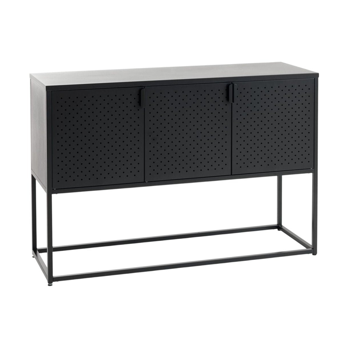 Moderne VIRUM skjenk fra JYSK med 3 dører i en stilren svart utførelse. Med en perforert front gir skjenken både et unikt uttrykk og praktisk oppbevaring for ulike gjenstander.