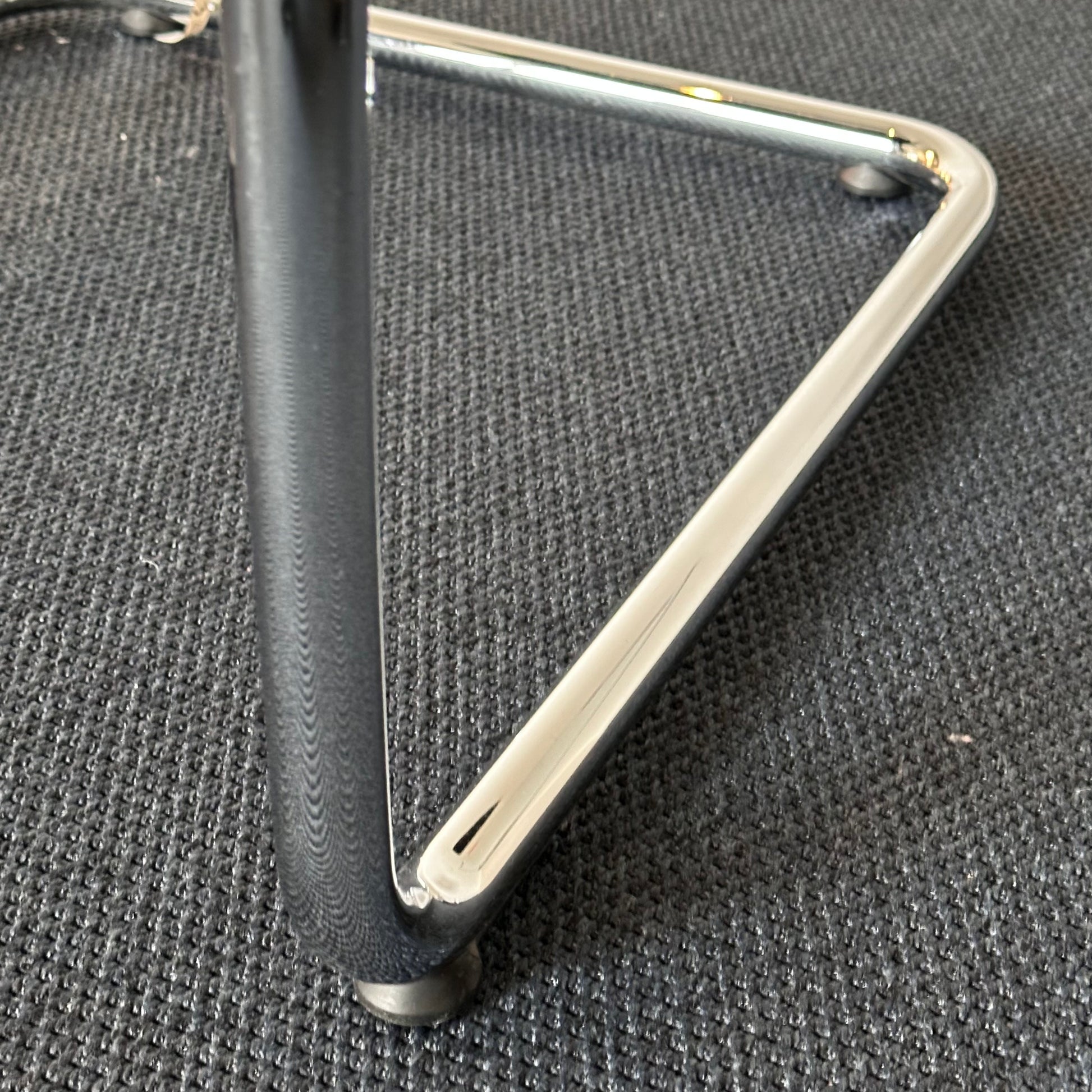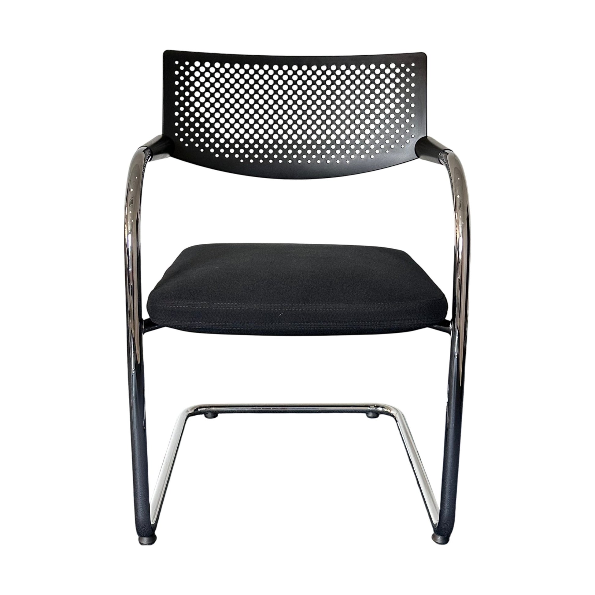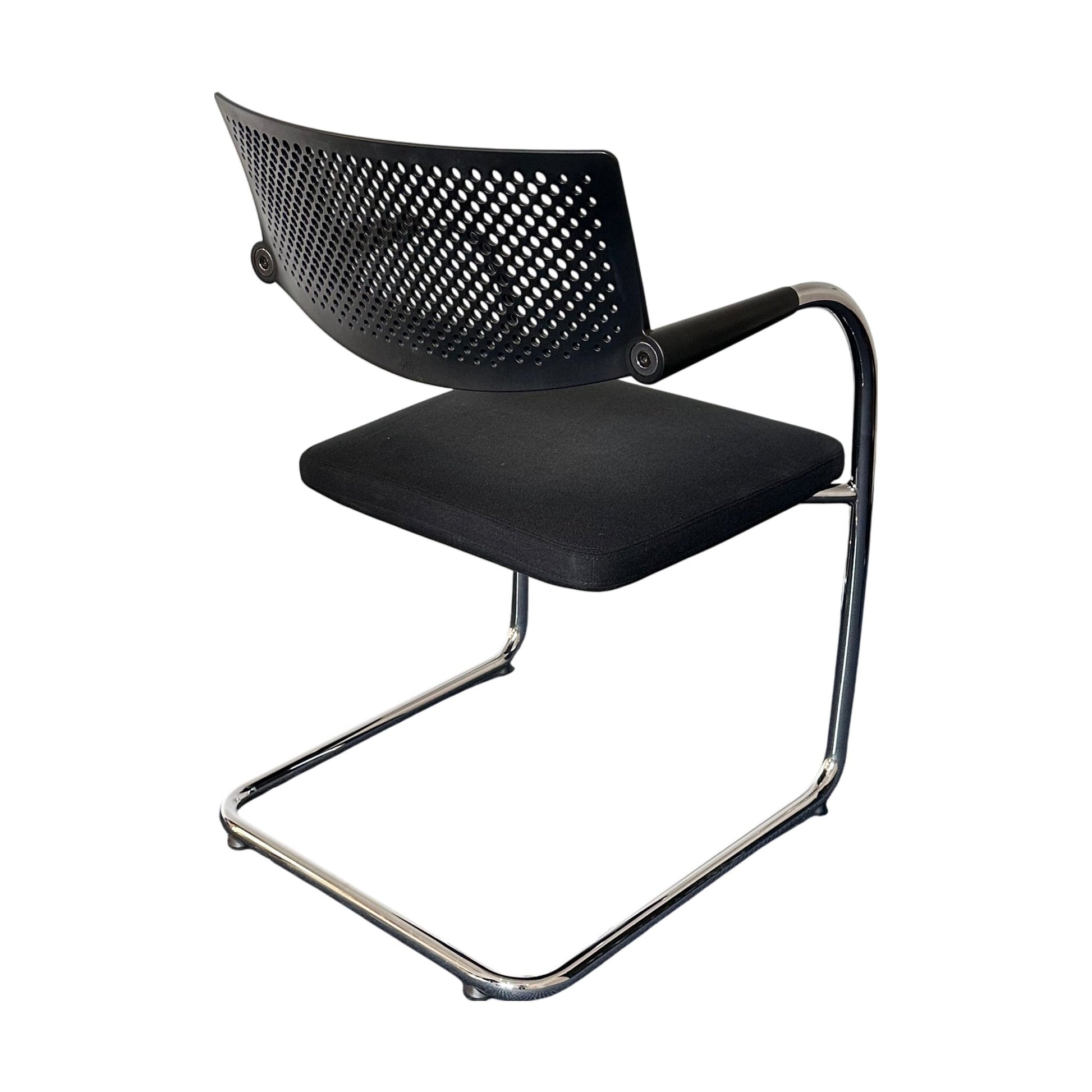 Elegant møteromsstol fra Vitra med et stilrent og tidløst design. Stolen har en sterk og slitesterk konstruksjon, noe som sikrer langvarig bruk. Den er trukket i svart stoff som gir et moderne preg, og den gir god støtte og komfort under møter. Med sin funksjonalitet og estetik er Visavis-stolen perfekt for både kontorer og møterom.